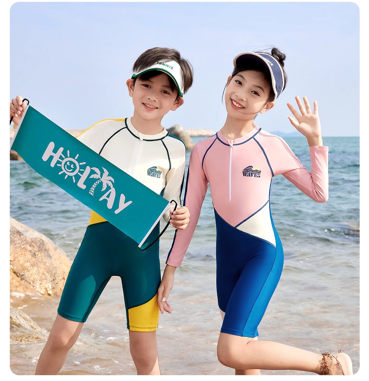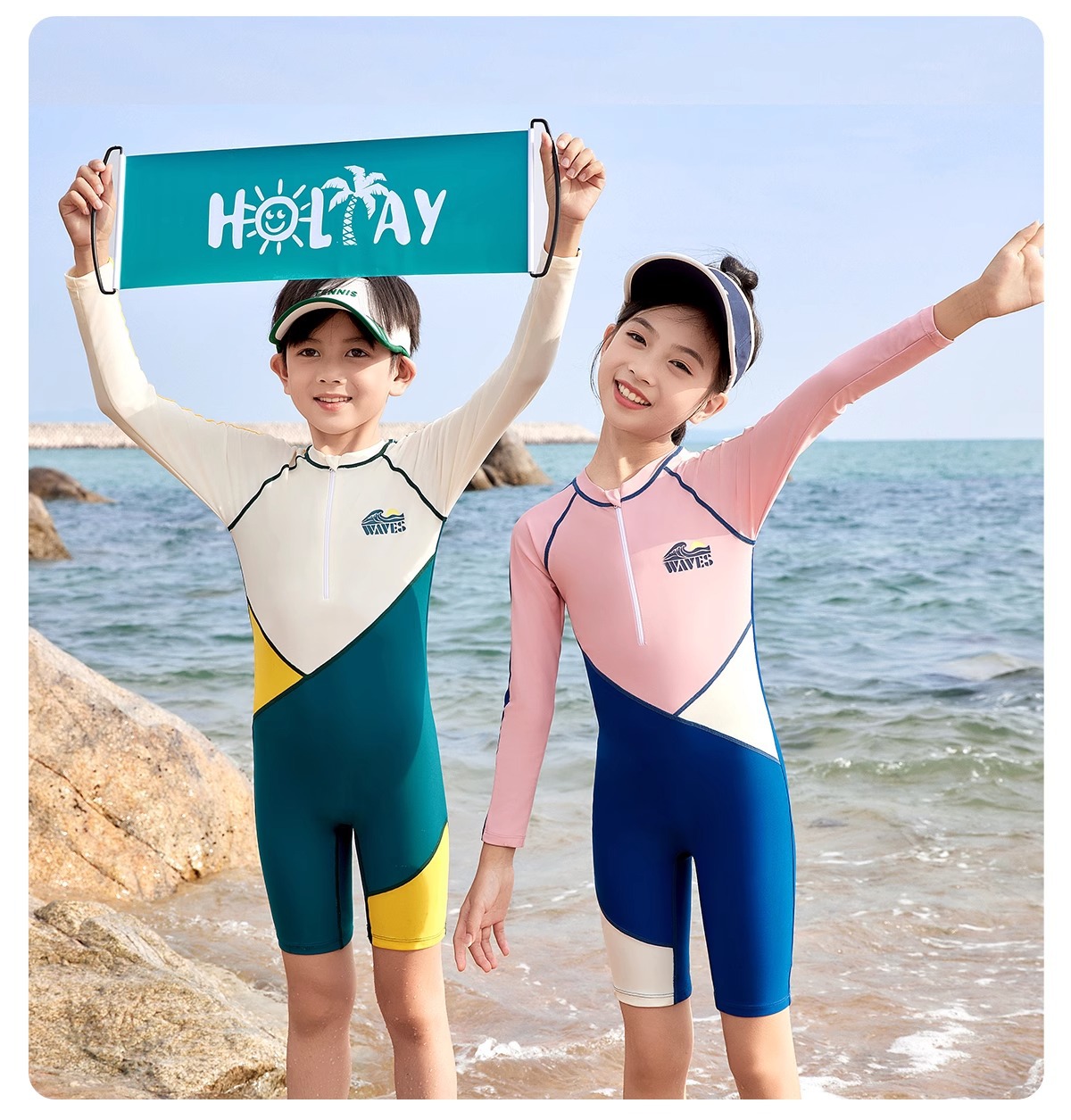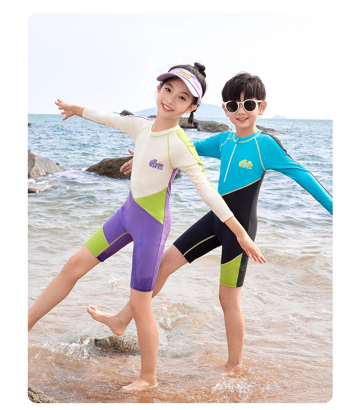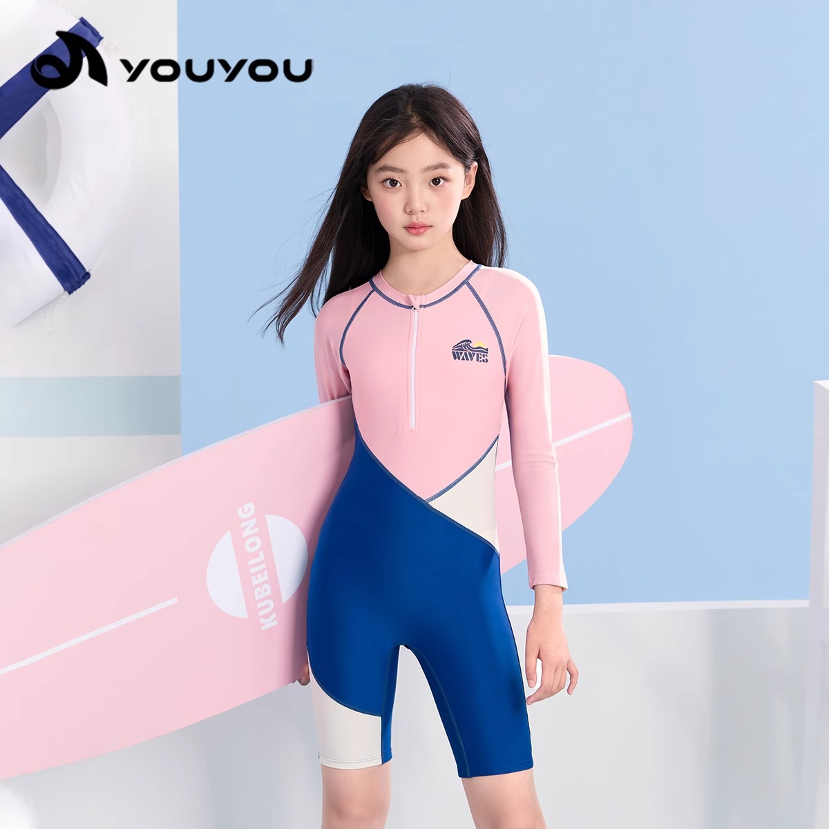 여성용 아동 수영복 2025 새로운 원피스 긴팔 반바지 중대형 어린이 전문 수영 훈련 자외선 차단제 속건성 수영복스토어 가기