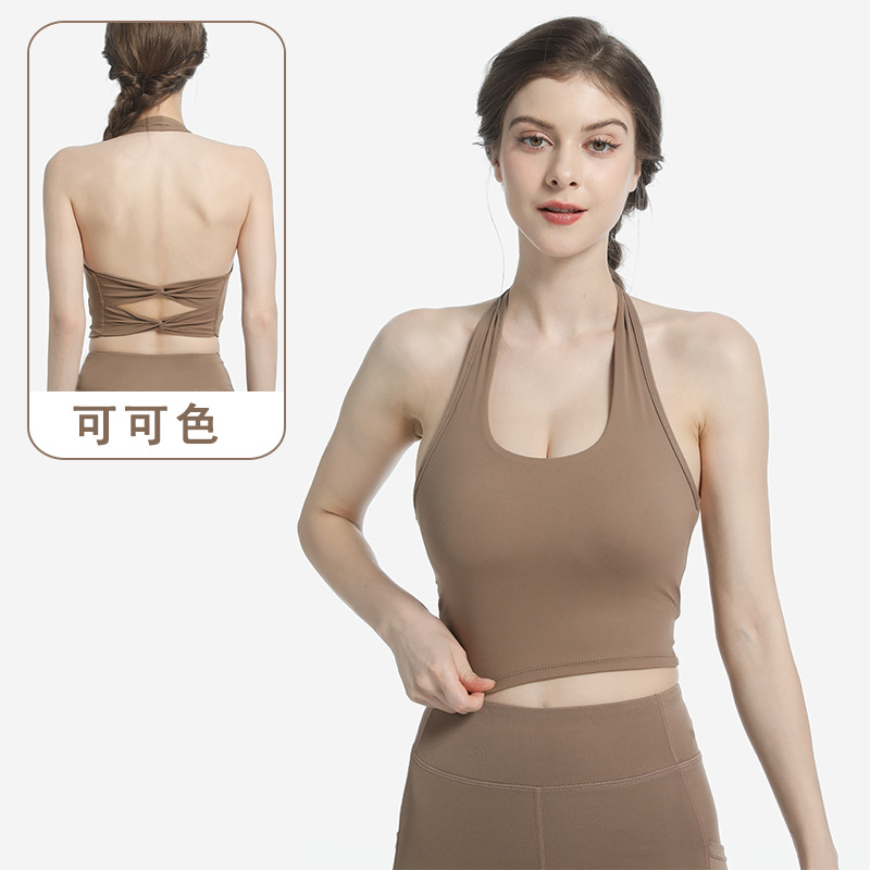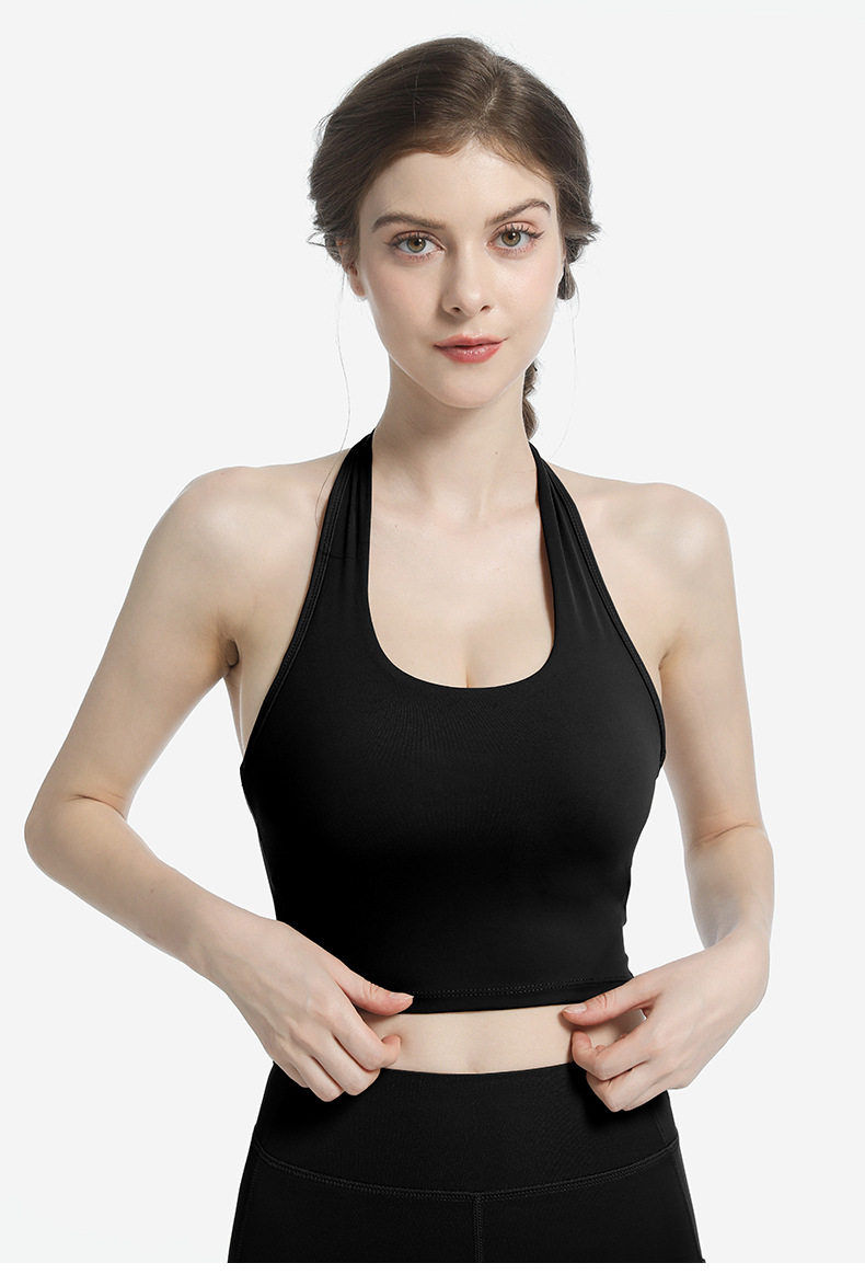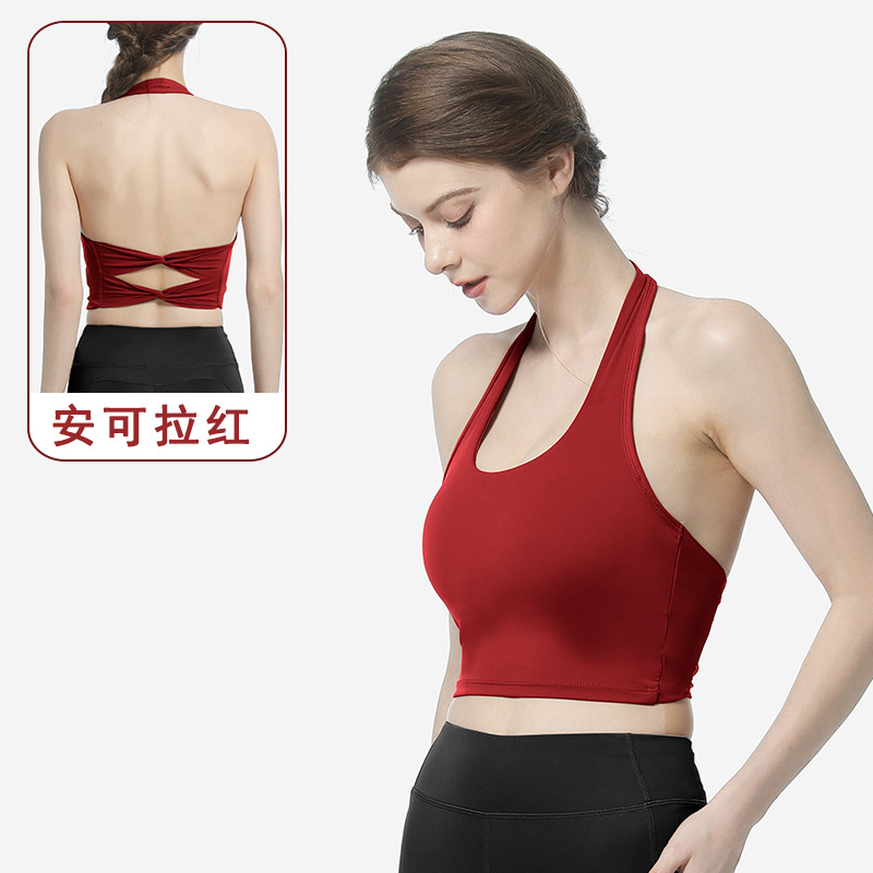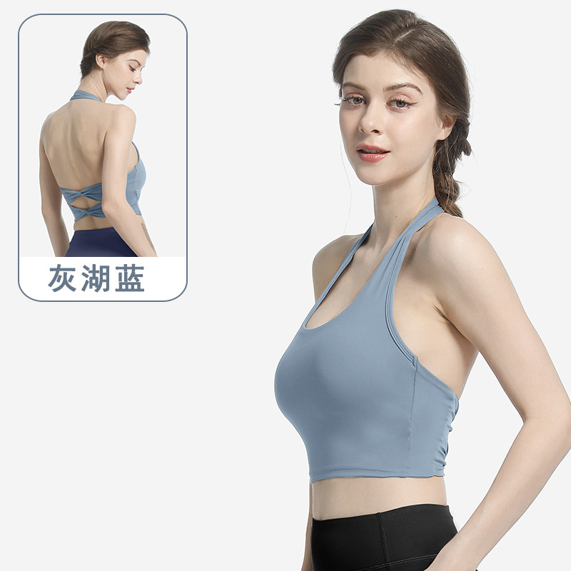 여성용 스포츠 브라, 피트니스 홀터넥, 더블 크로스 백 서포트 조끼 스타일 타이트 요가복 브라 탑스토어 가기