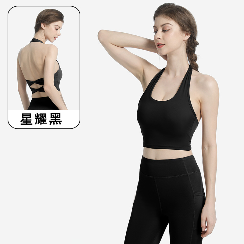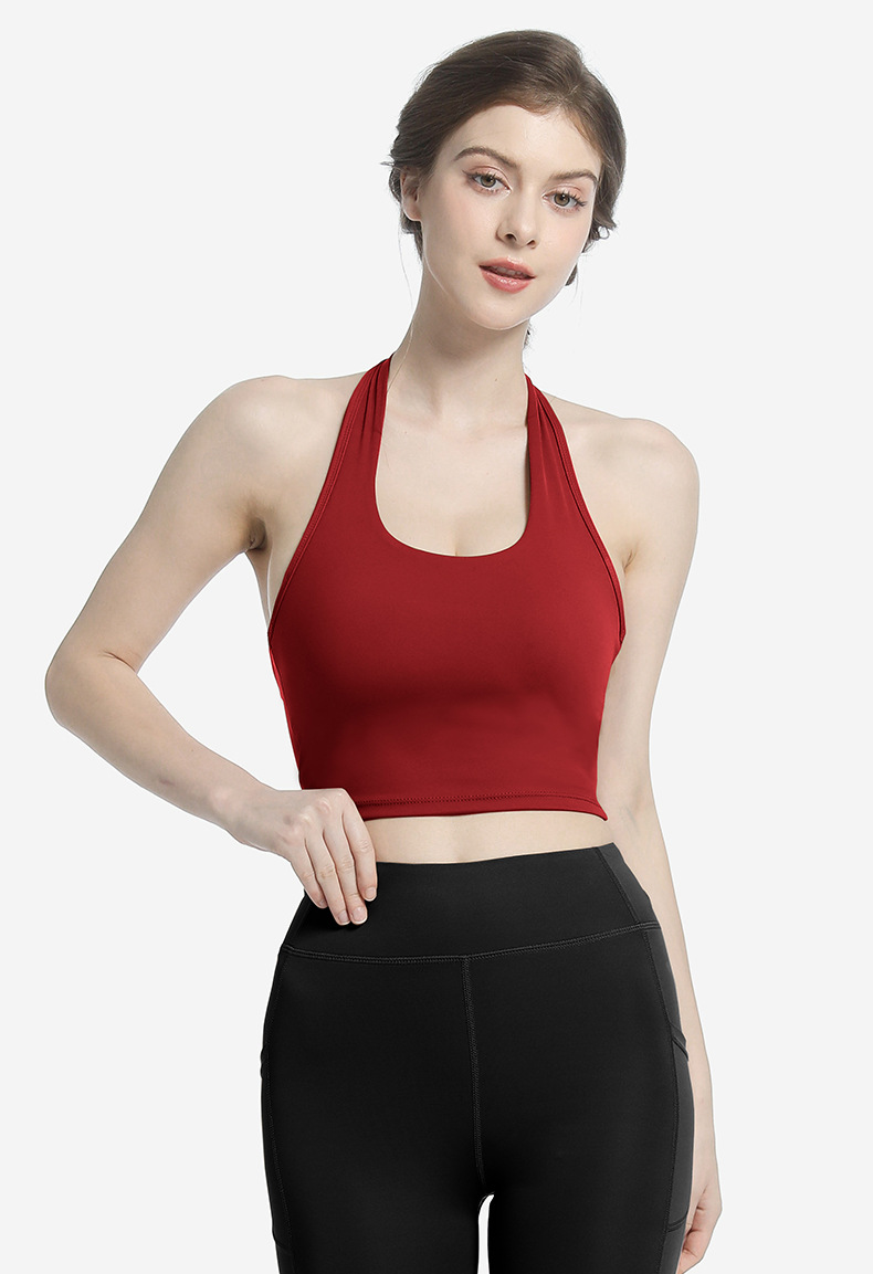 여성용 스포츠 브라, 피트니스 홀터넥, 더블 크로스 백 서포트 조끼 스타일 타이트 요가복 브라 탑