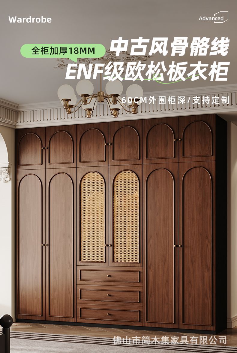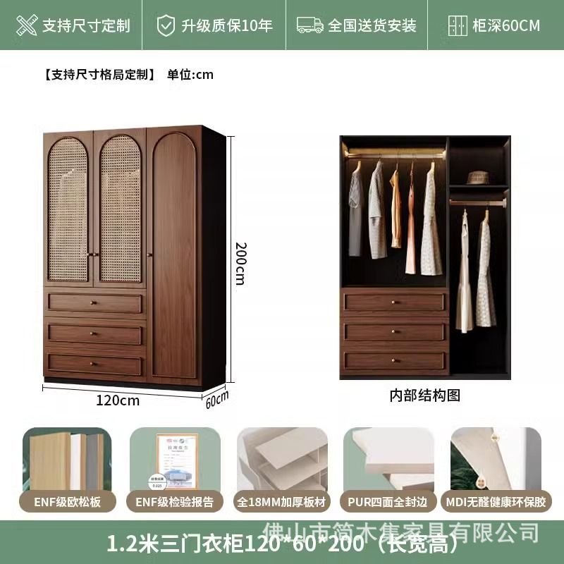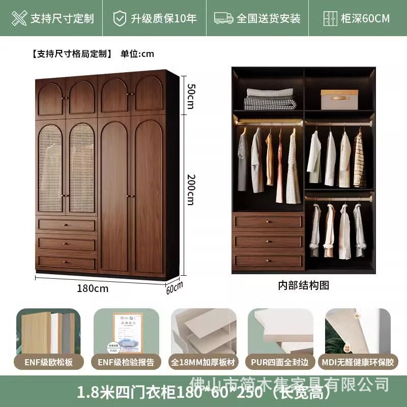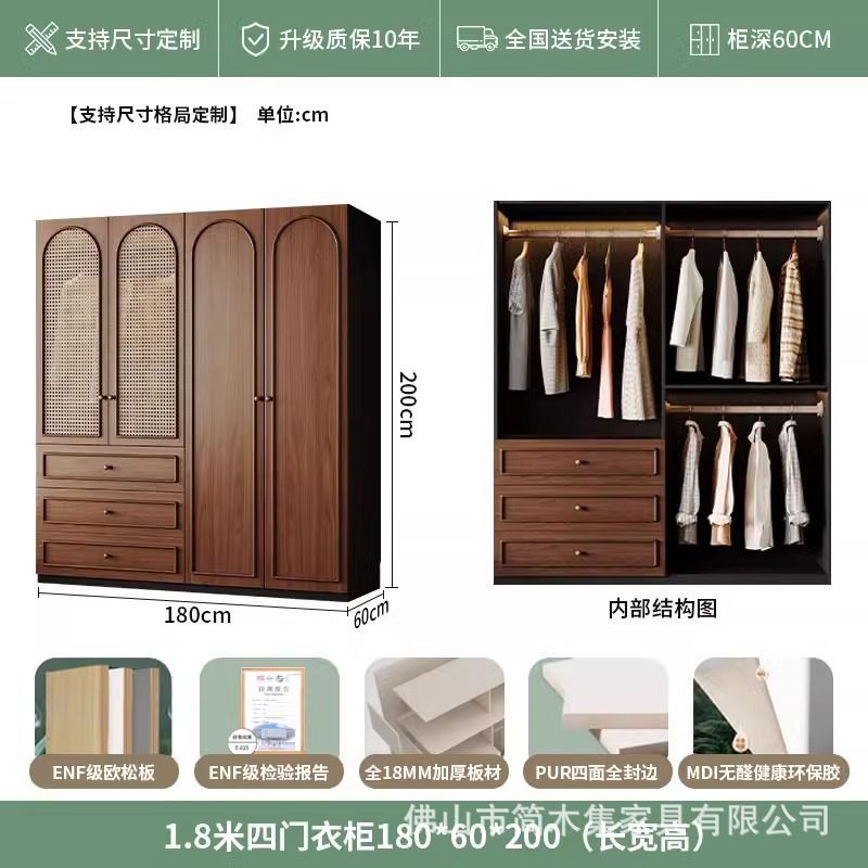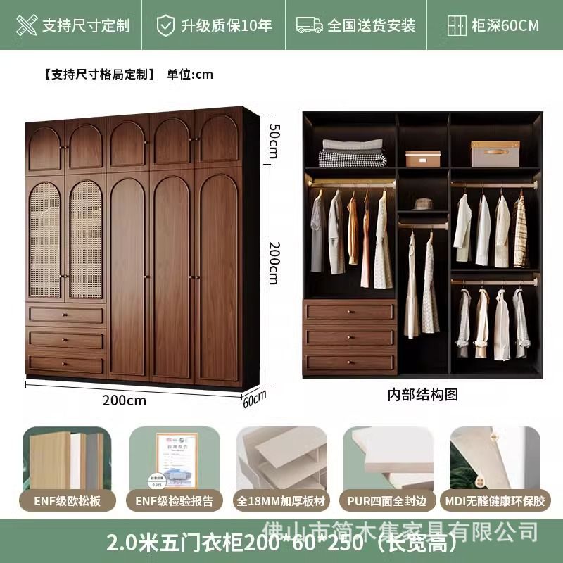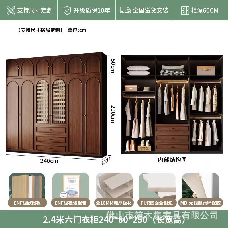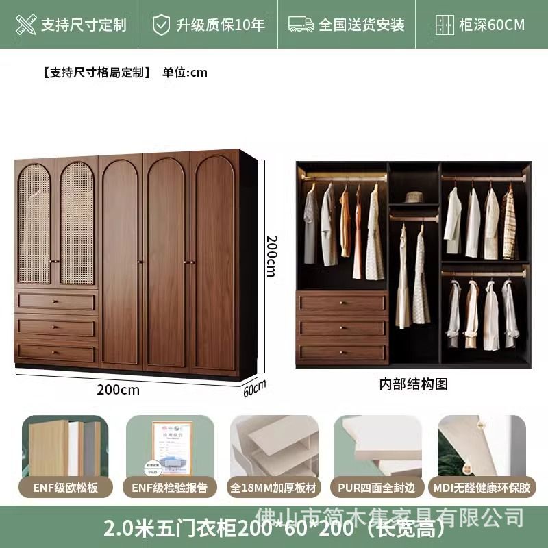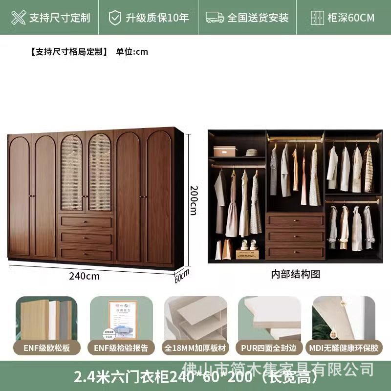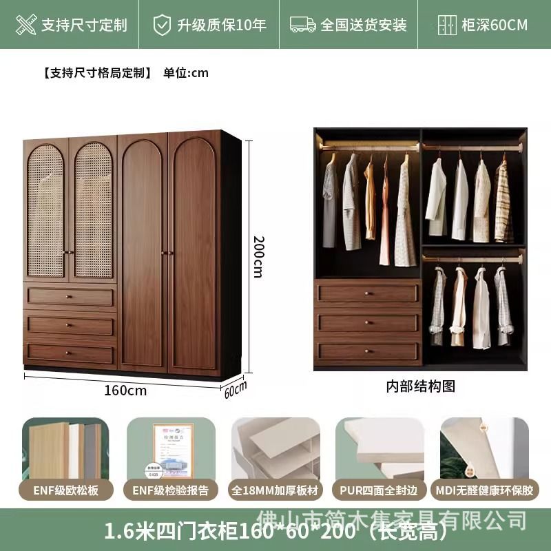 북미 검은 호두 색상 옷장 복고풍 색상 단단한 나무 조합 옷장 침실 홈 체리 나무 보관 옷장스토어 가기