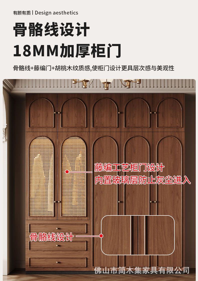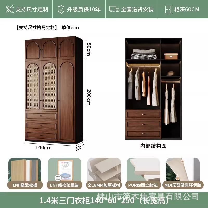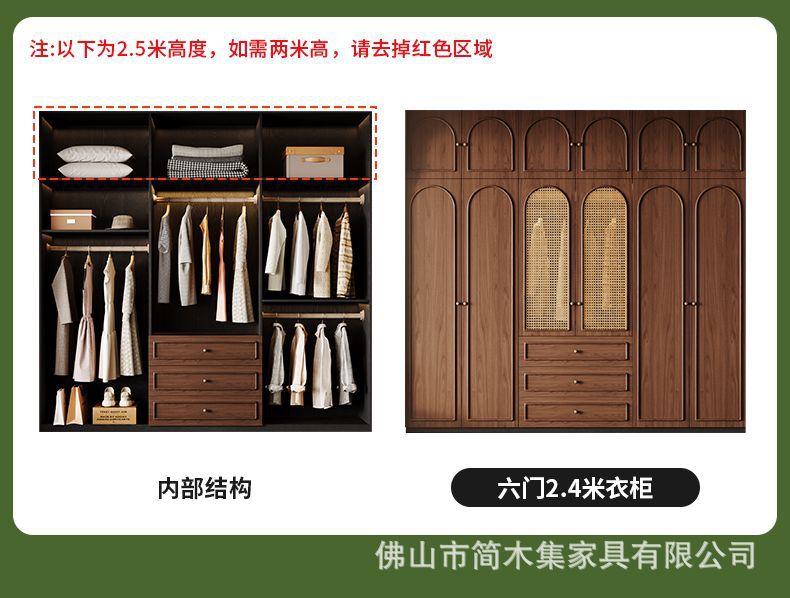 북미 검은 호두 색상 옷장 복고풍 색상 단단한 나무 조합 옷장 침실 홈 체리 나무 보관 옷장