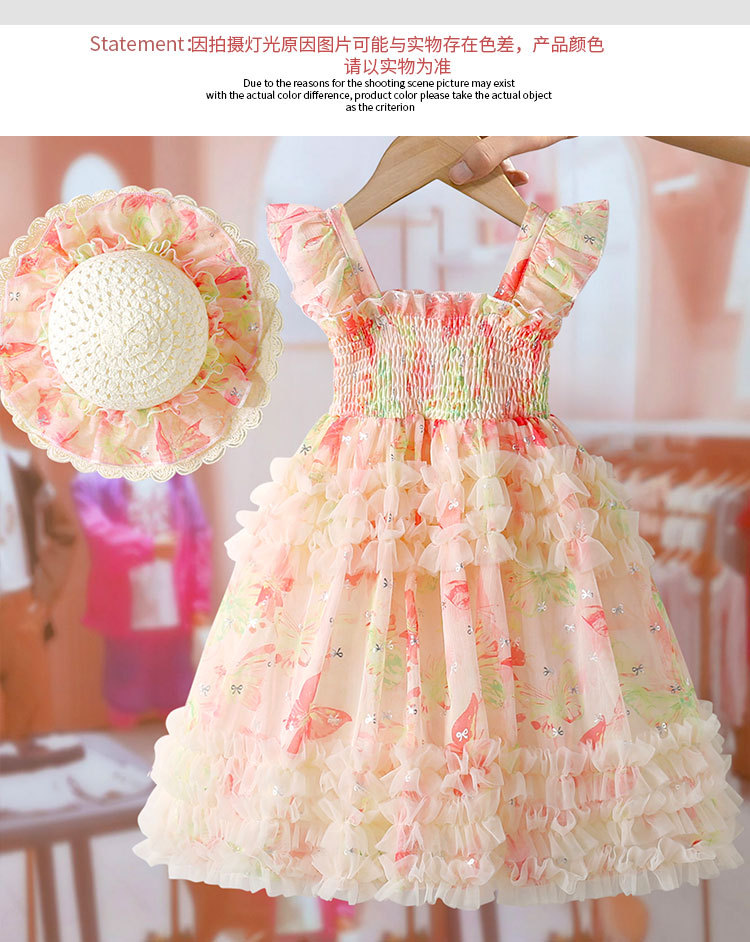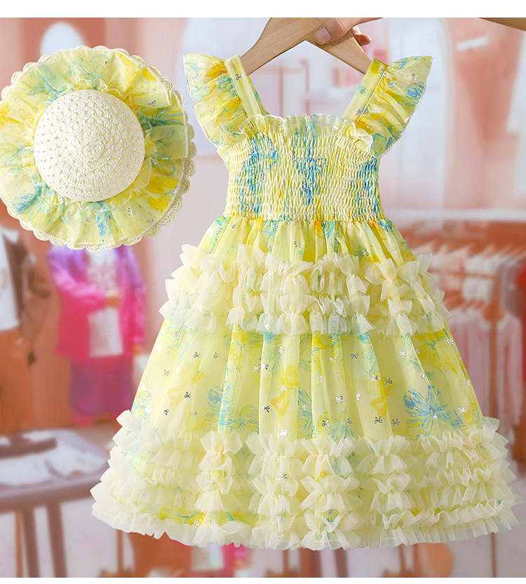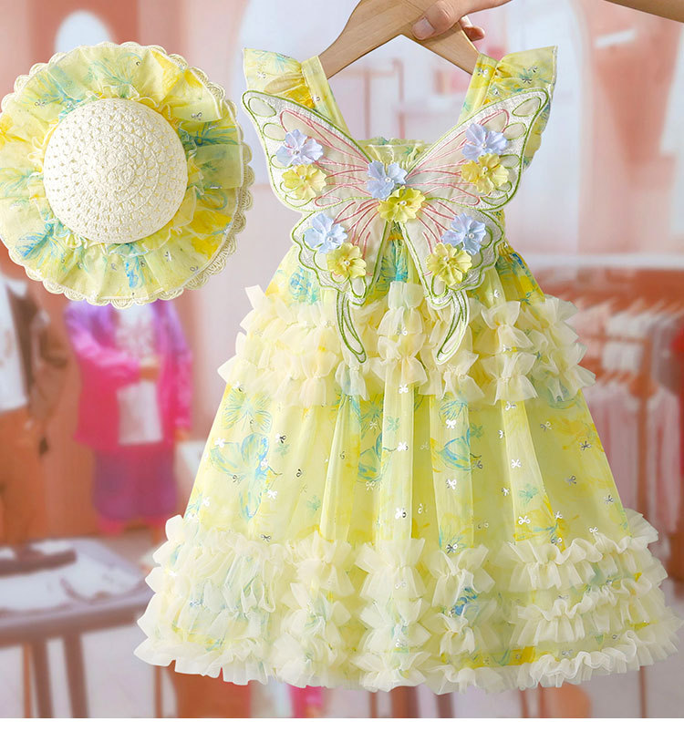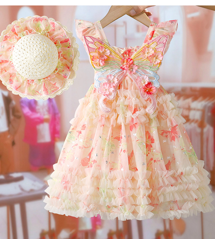 여아용 메쉬 조끼 드레스 2026년 신상 여름 스타일리쉬한 소녀 나비꽃 민소매 퍼프 공주 드레스스토어 가기