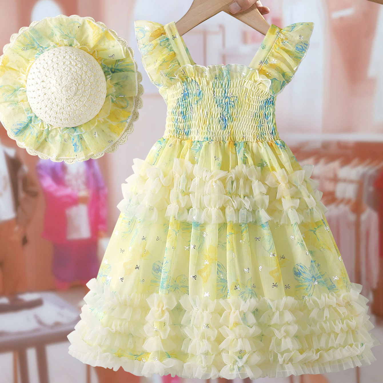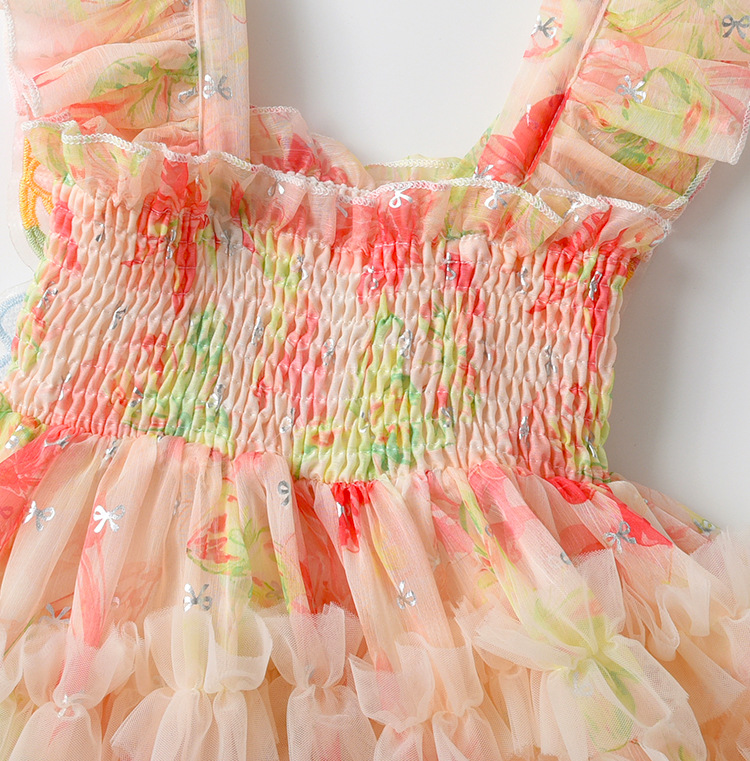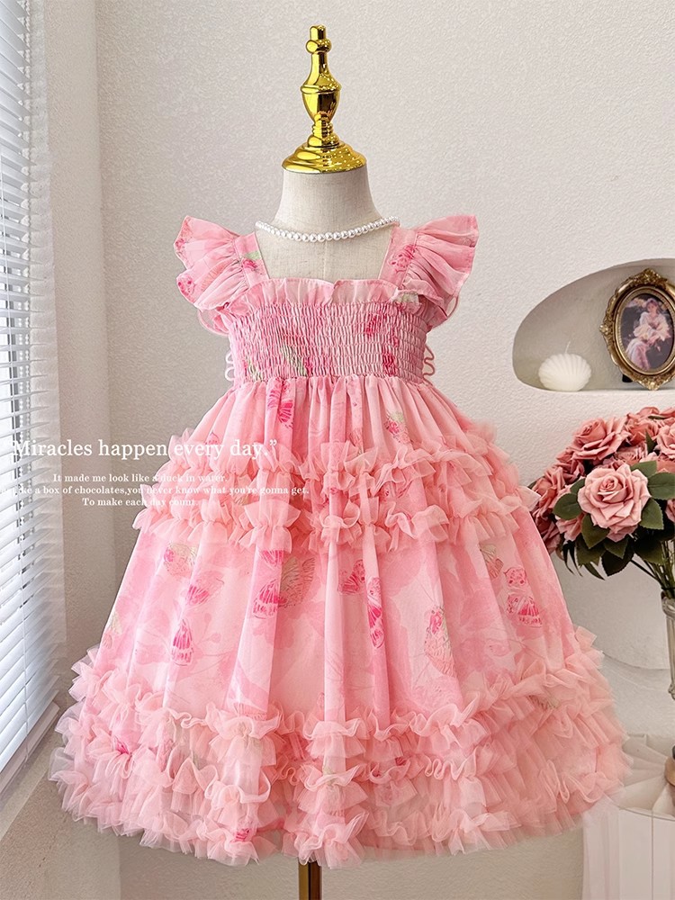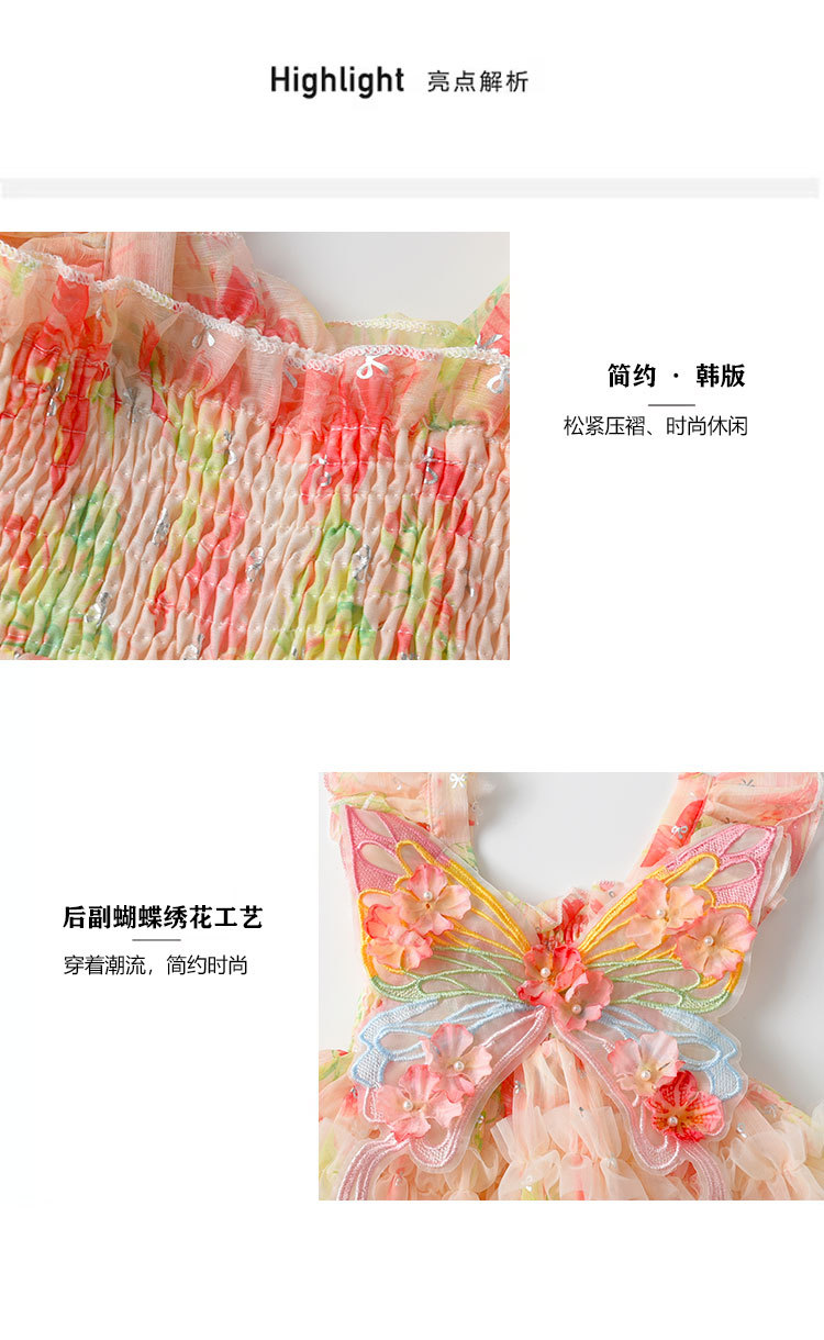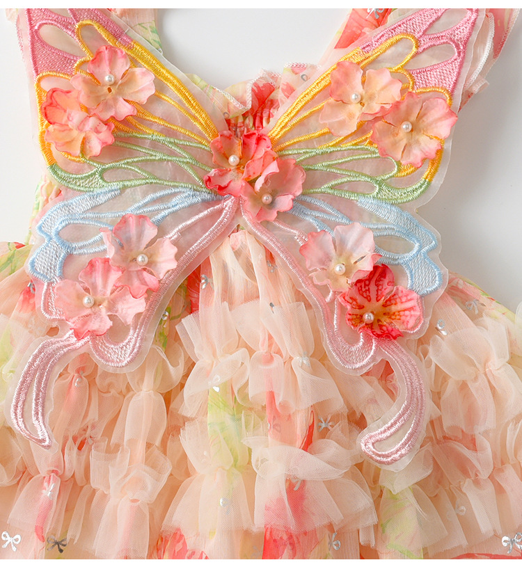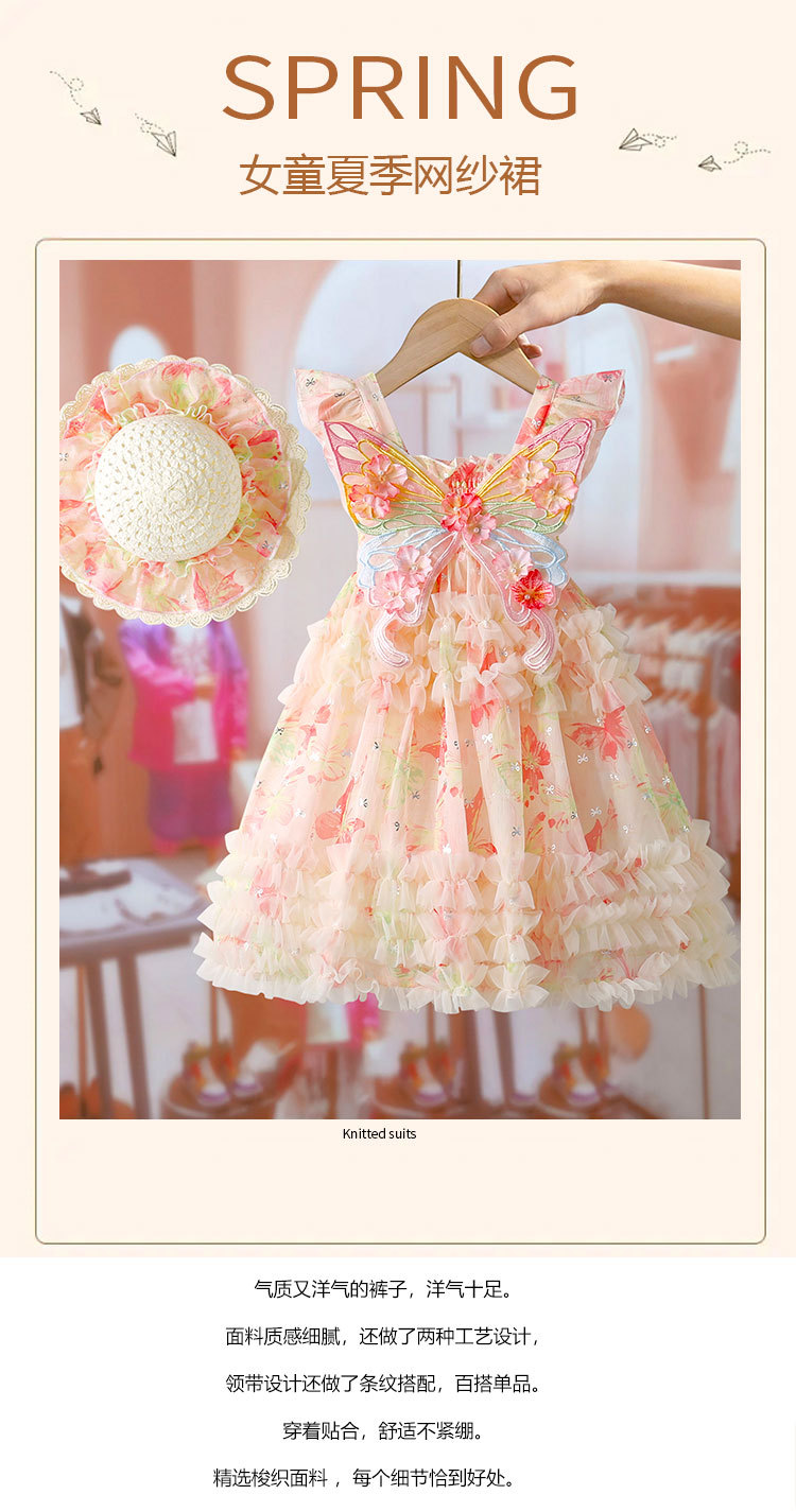 여아용 메쉬 조끼 드레스 2026년 신상 여름 스타일리쉬한 소녀 나비꽃 민소매 퍼프 공주 드레스