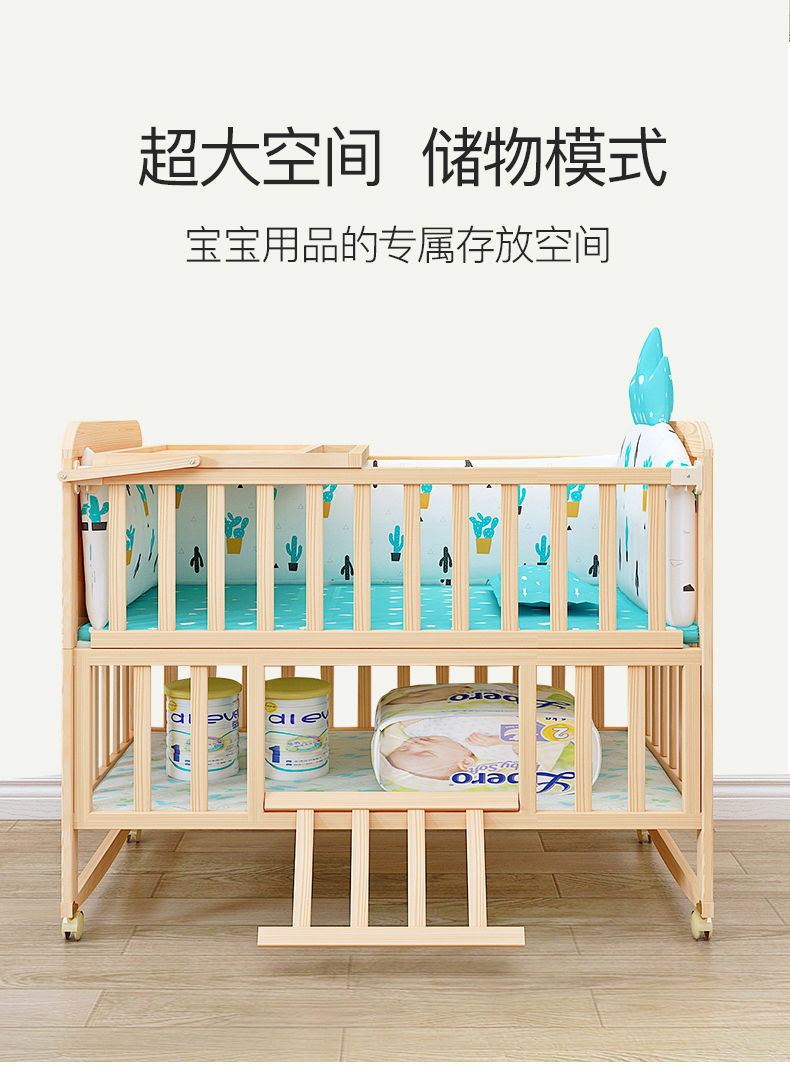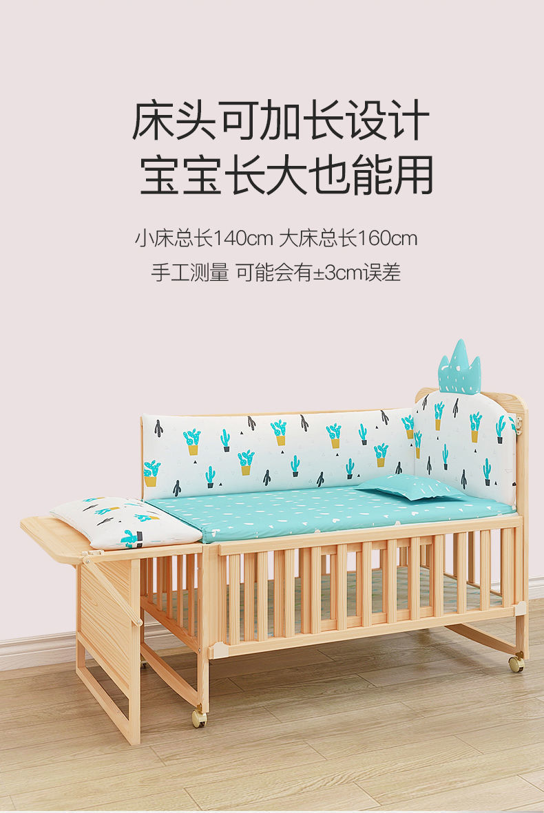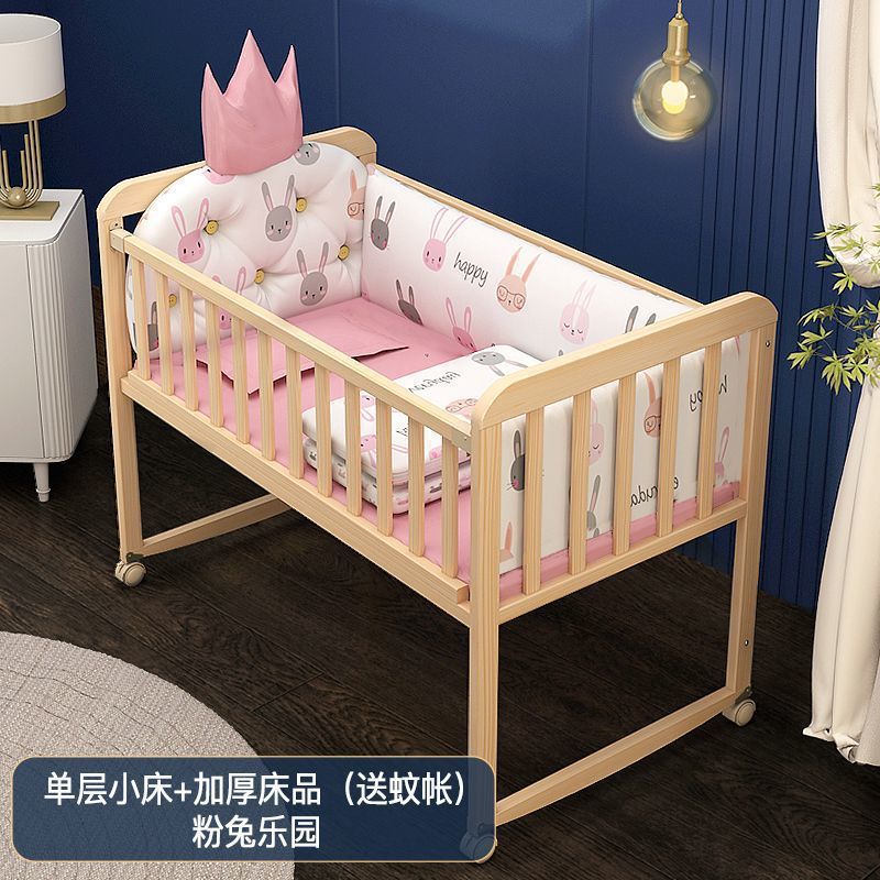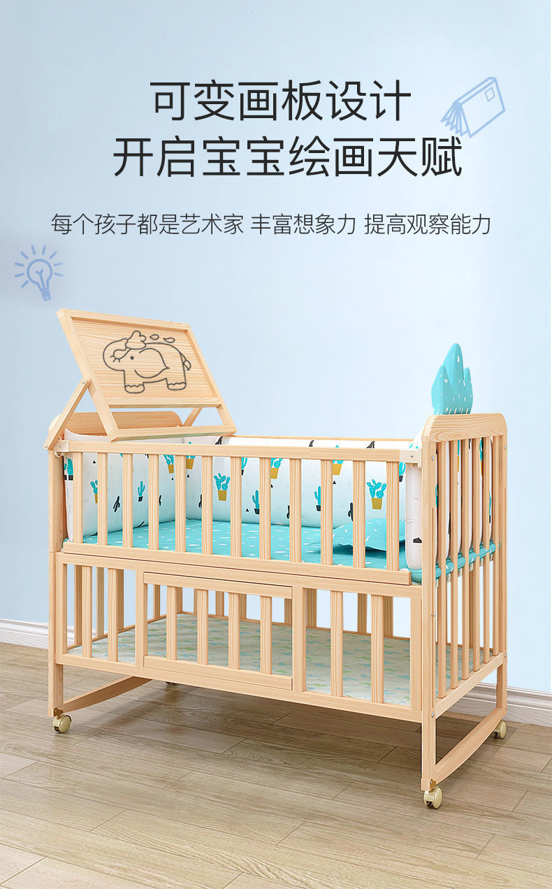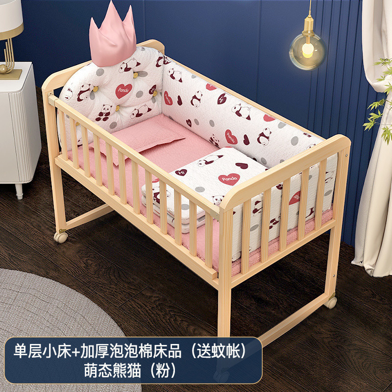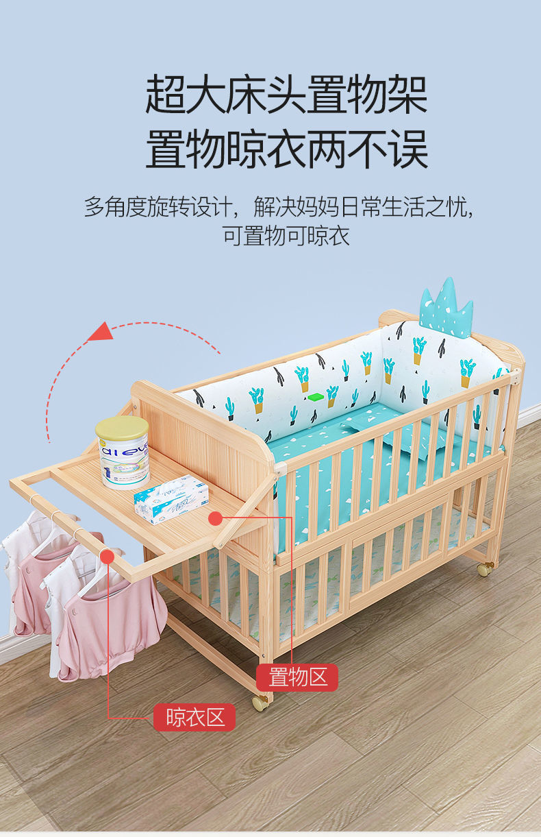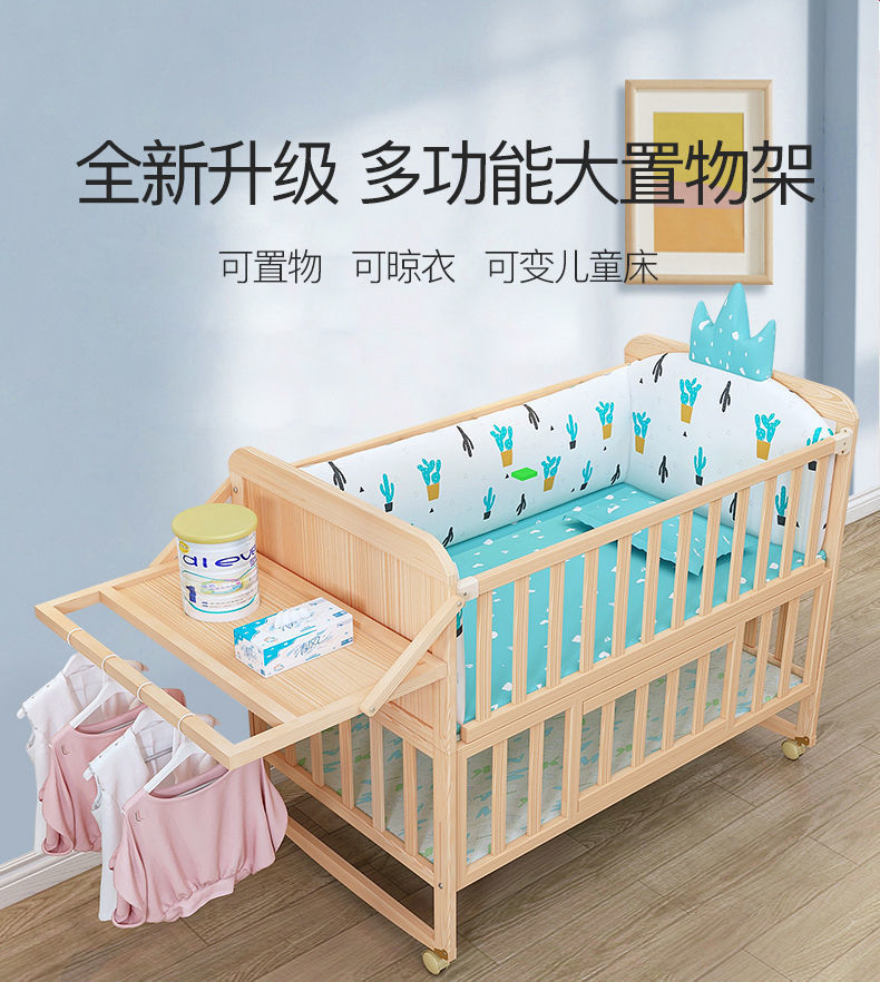 유아용 침대 단단한 나무 접합 대형 침대 이동식 아기 요람 침대 신생아 다기능 어린이