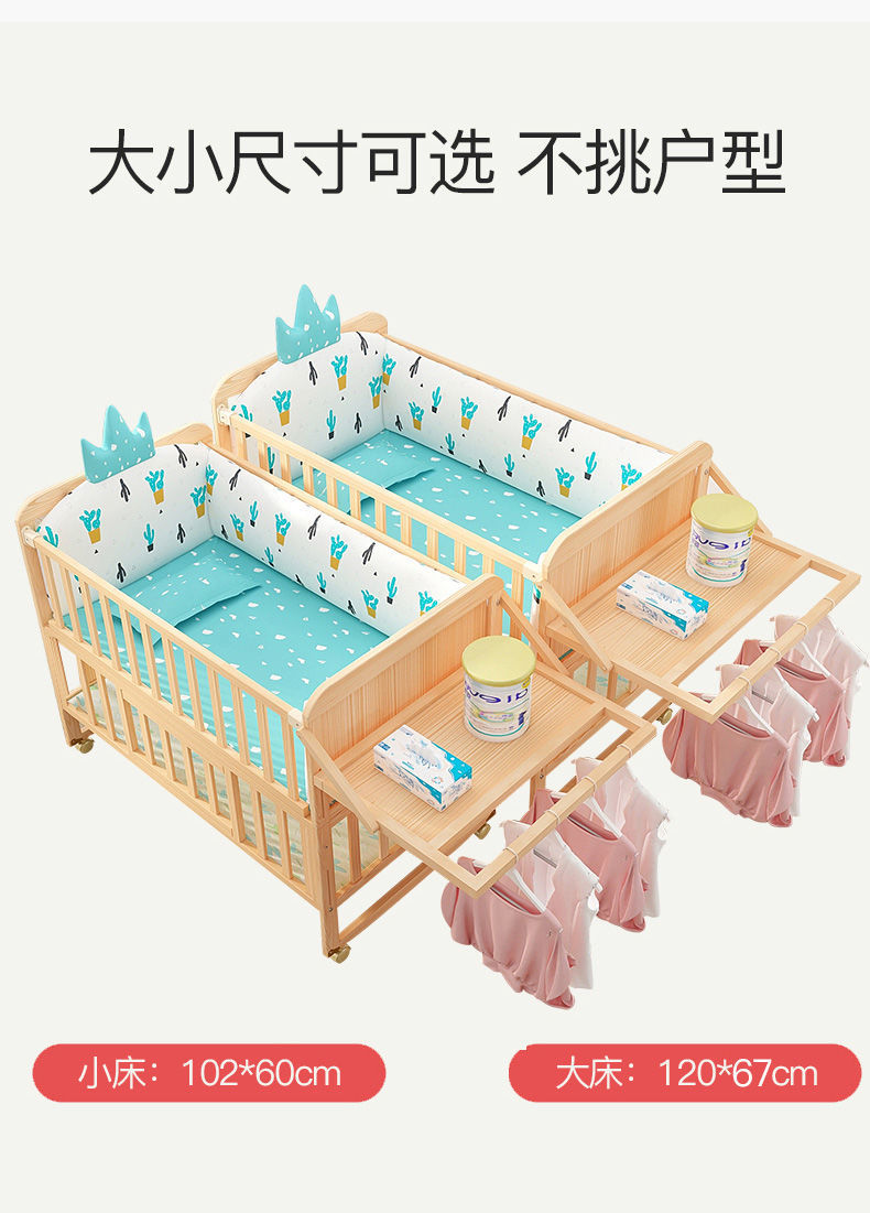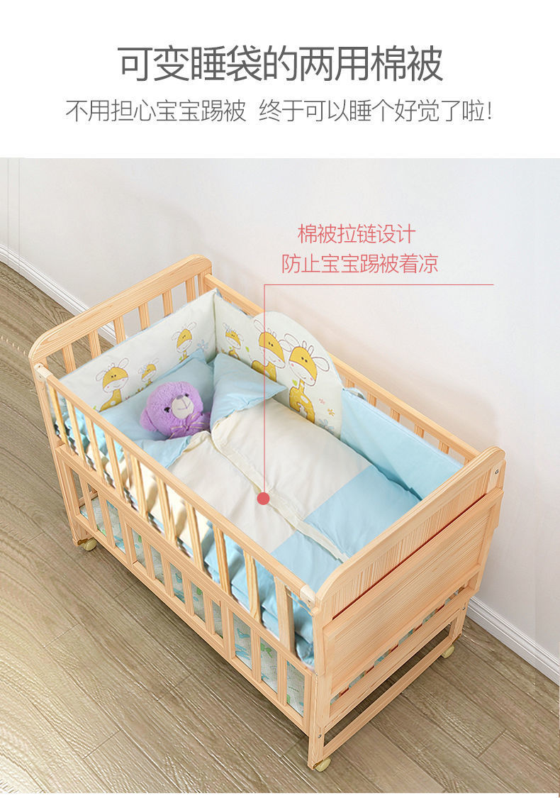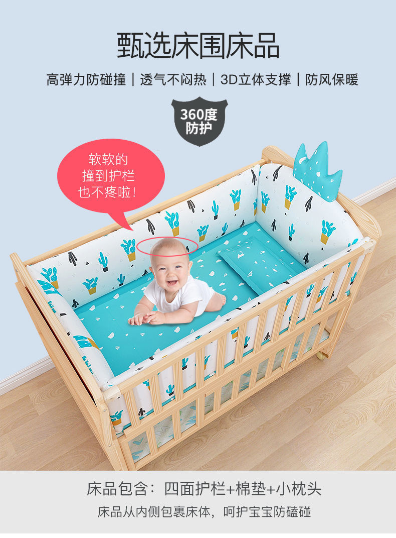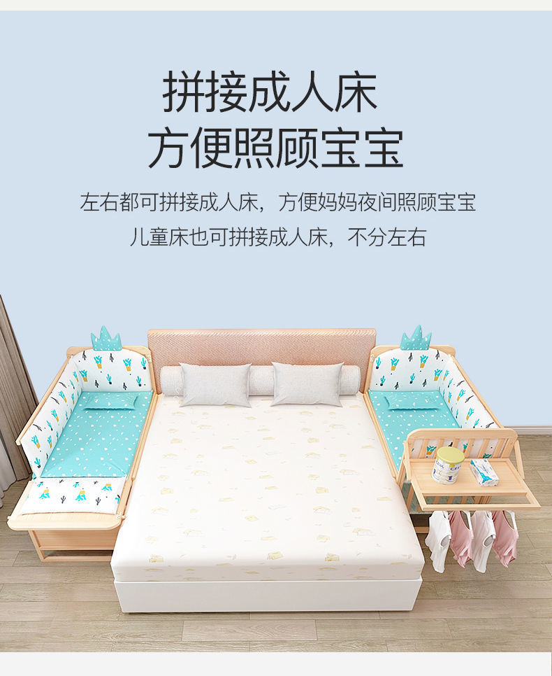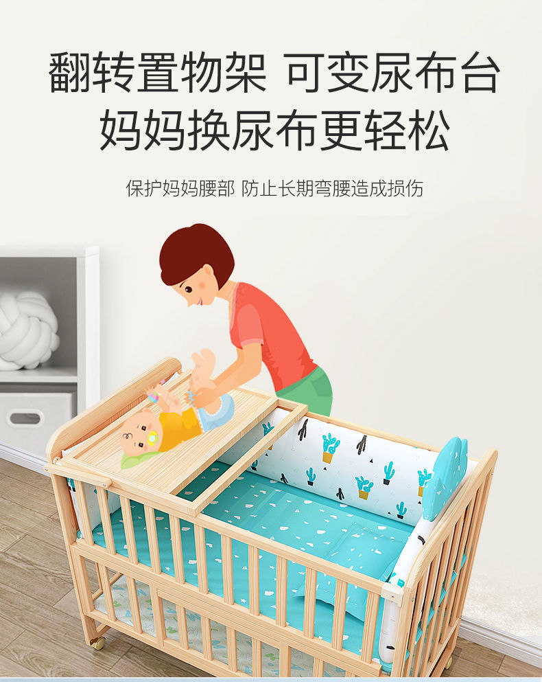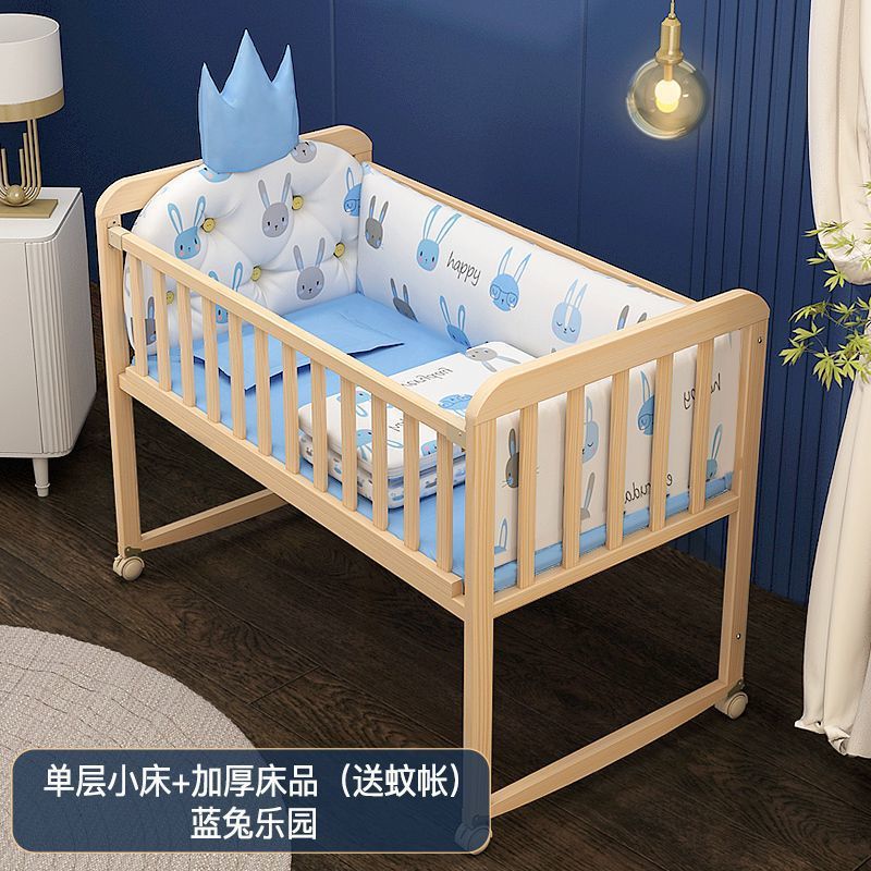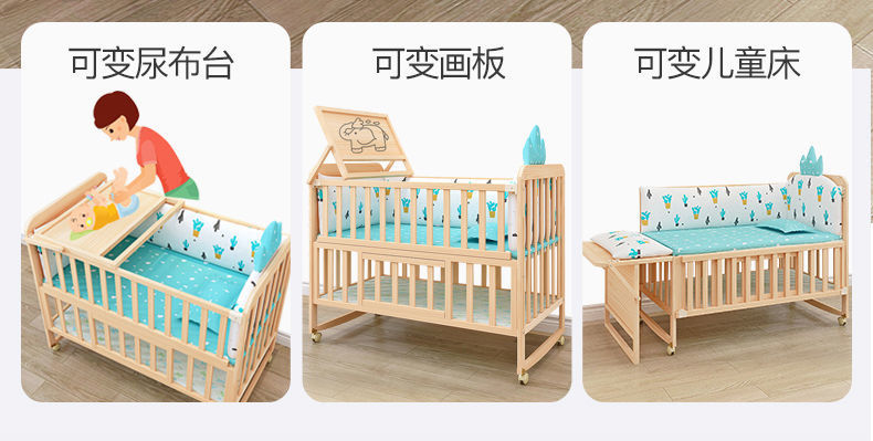 유아용 침대 단단한 나무 접합 대형 침대 이동식 아기 요람 침대 신생아 다기능 어린이