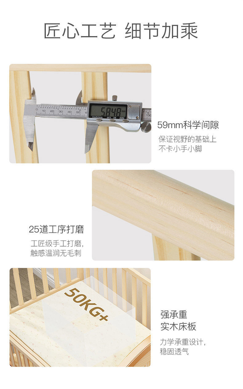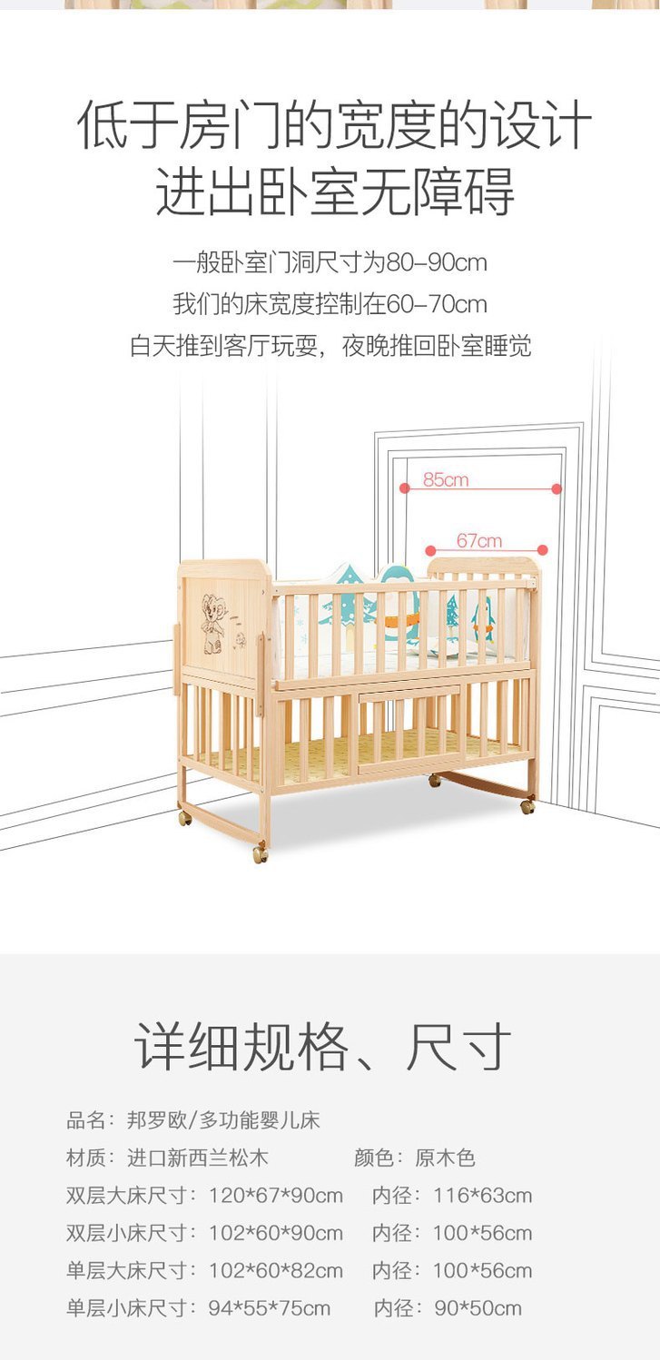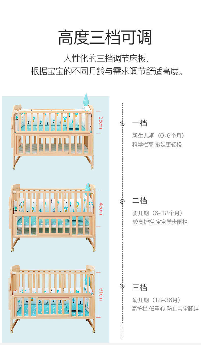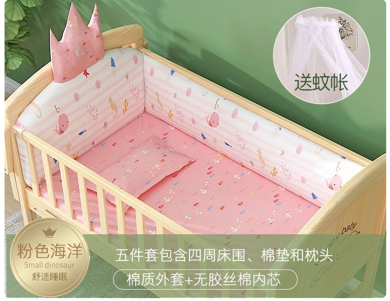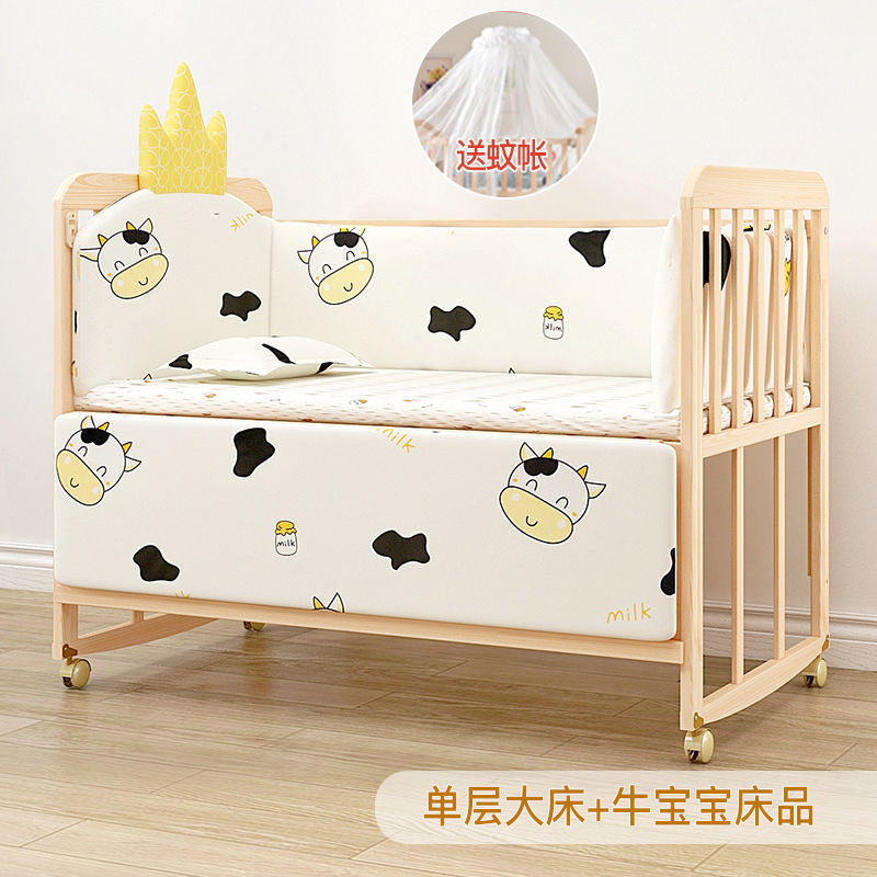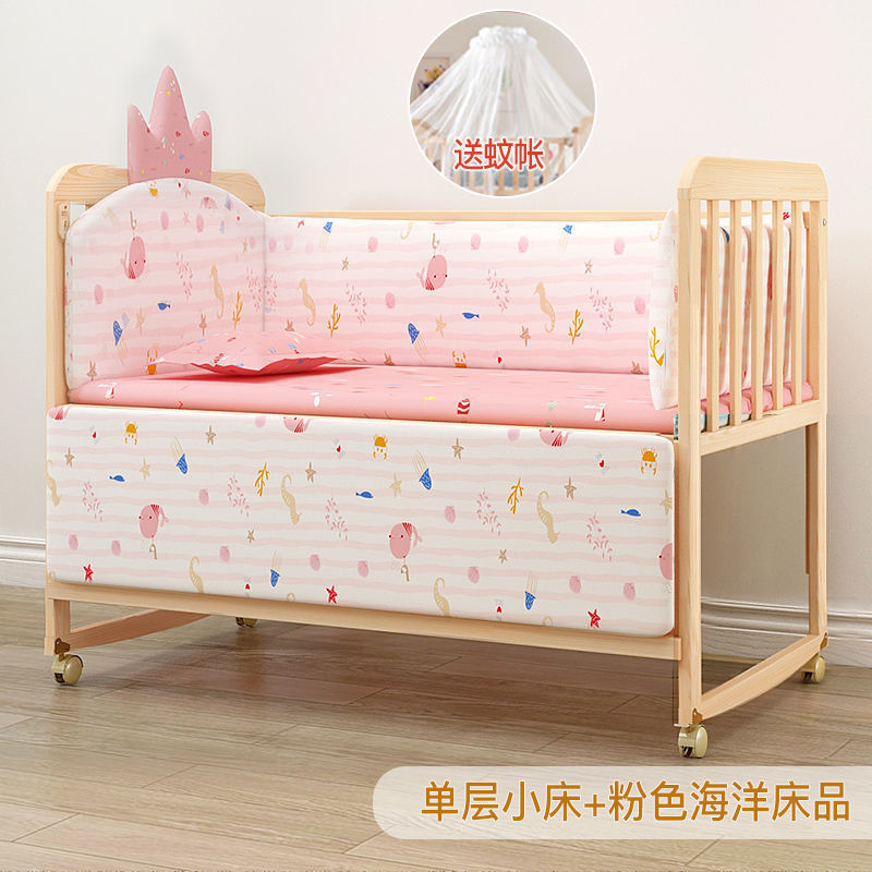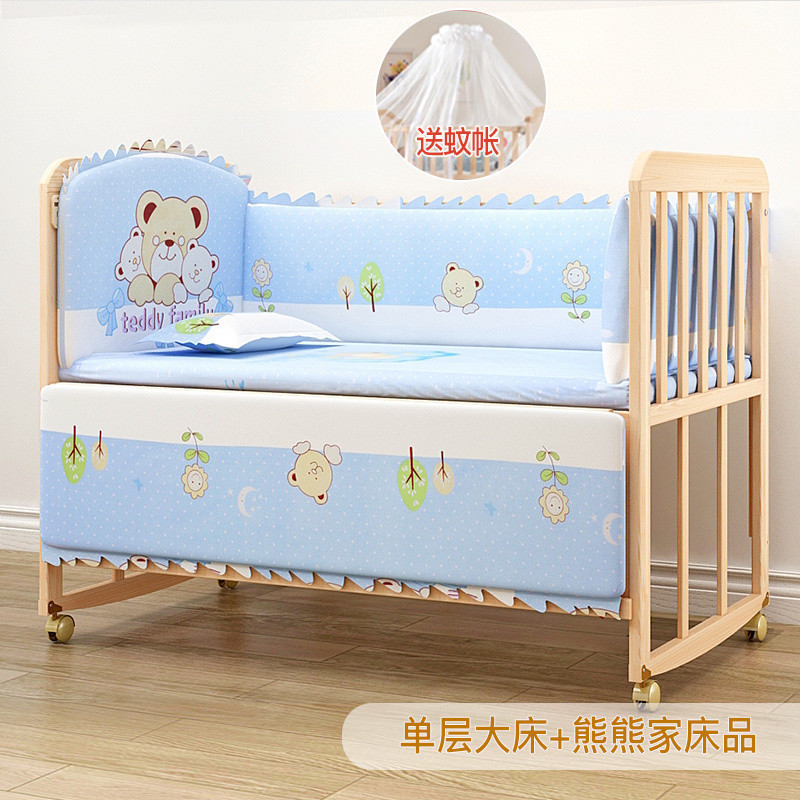유아용 침대 단단한 나무 접합 대형 침대 이동식 아기 요람 침대 신생아 다기능 어린이