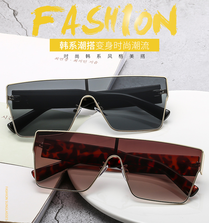 새로운 유럽과 미국의 패션 사각형 대형 프레임 일체형 선글라스 ins 스타일 스트리트 스타일 크로스 보더 선글라스 여성 트렌디하고 고급스러운