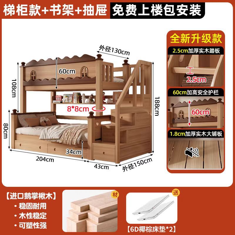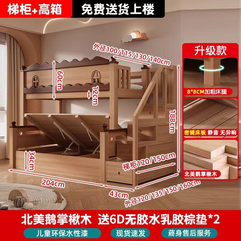 • 사다리형 수납장 모델에는 상하 매트리스가 포함되어 있습니다. [두께 8*8cm 침대 다리]