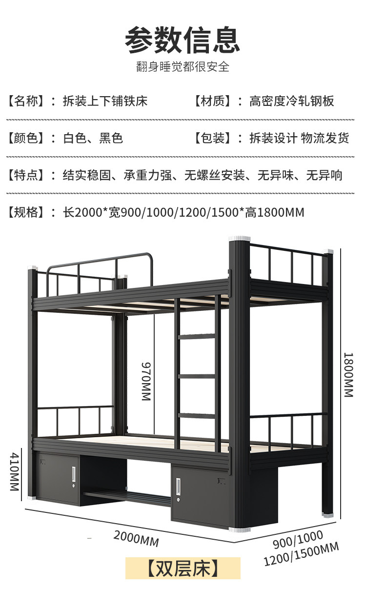 두꺼운 이층 철제 프레임 침대, 이층 철제 침대, 학생 기숙사 이층 침대, 직원 기숙사 이층 침대
