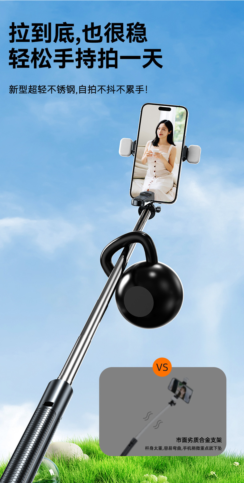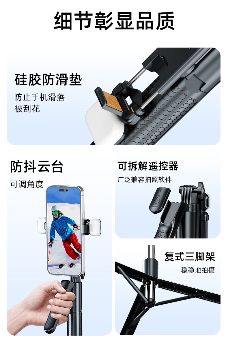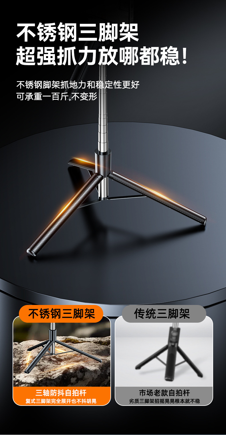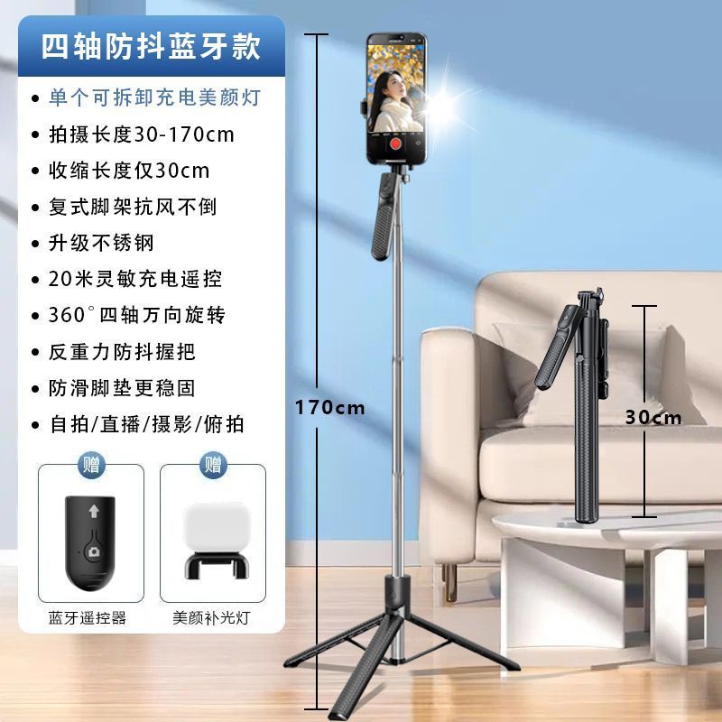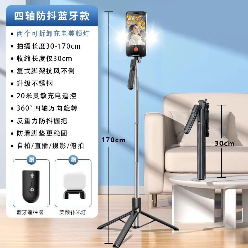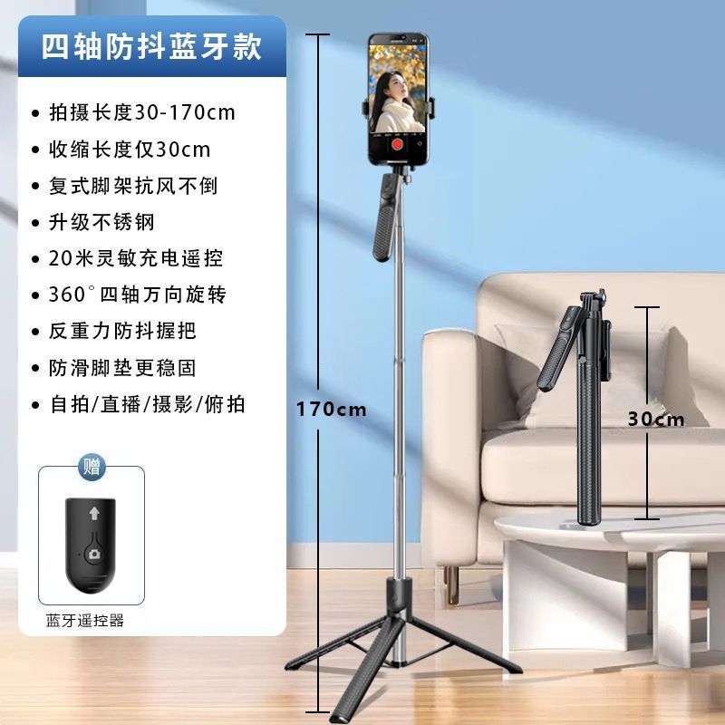 1.7m Z2 블루투스 셀카봉, 손떨림 방지 손잡이, 접이식 휴대용 스탠드, 휴대용 셀카봉 일체형스토어 가기