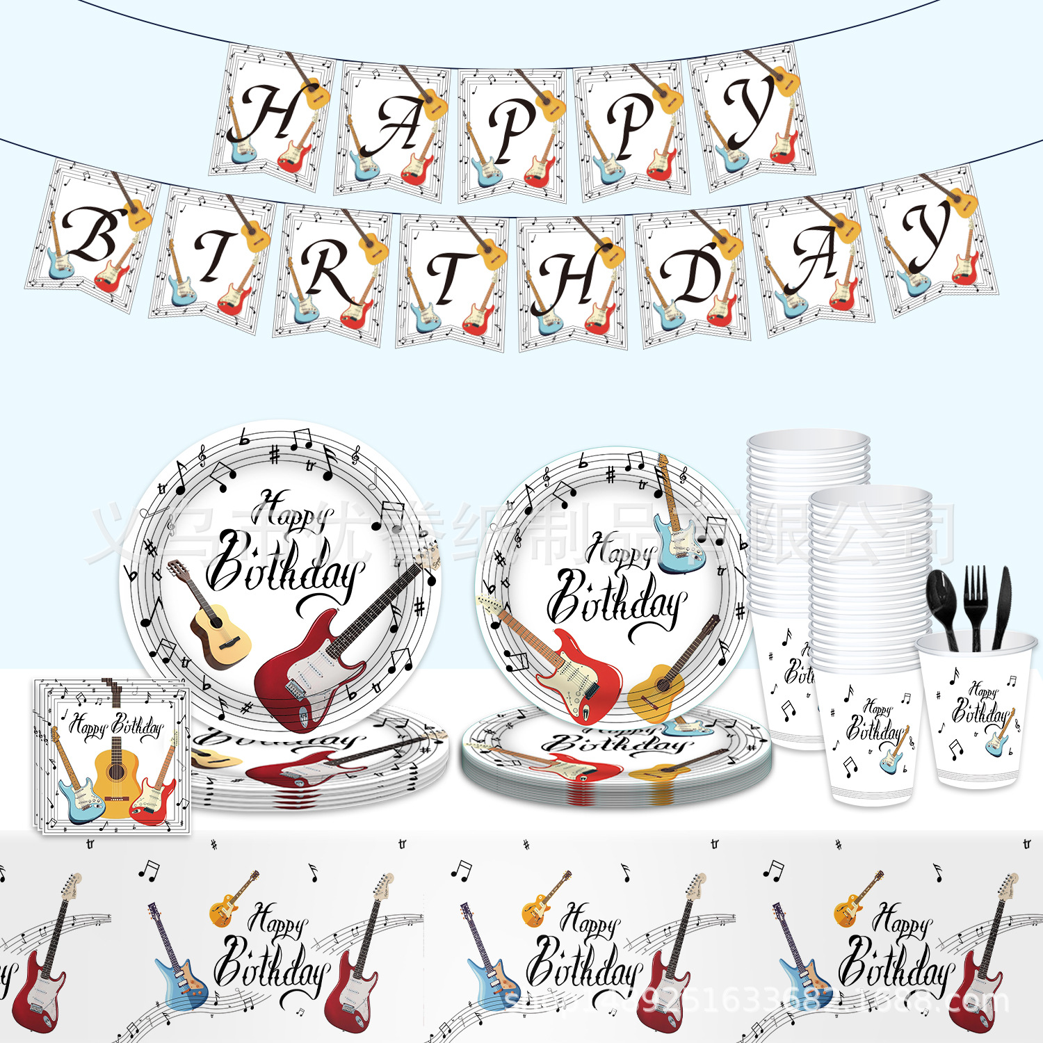 뜨거운 판매 기타 파티 식기 음악 테마 종이 접시 일회용 국경 간 식기 디너 플레이트 파티 세트 장식