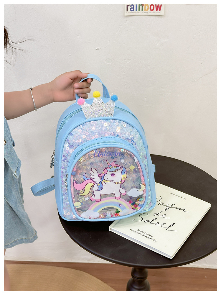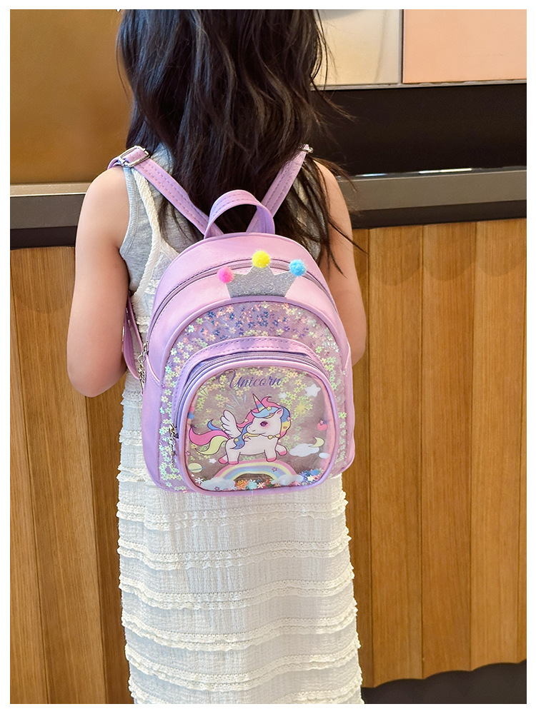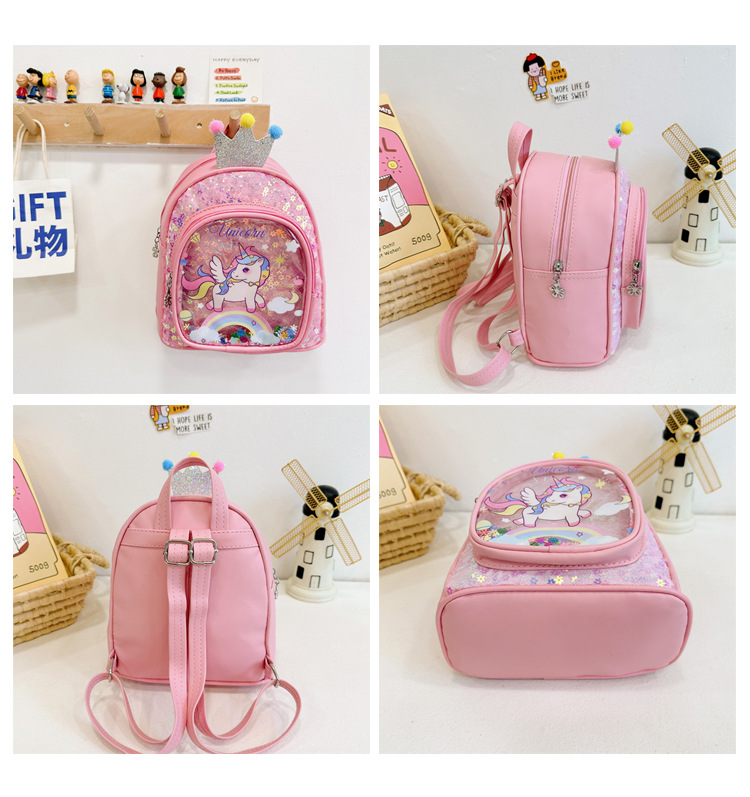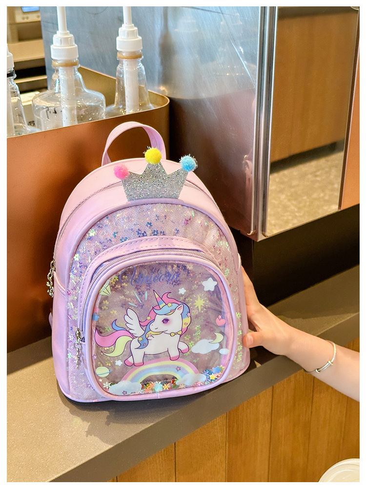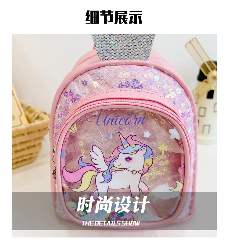 어린이 스팽글 가방 만화 유니콘 PU 액세서리 가방 유치원 어린이 스낵 가방 서양식 공주 여행 가방