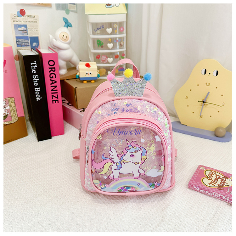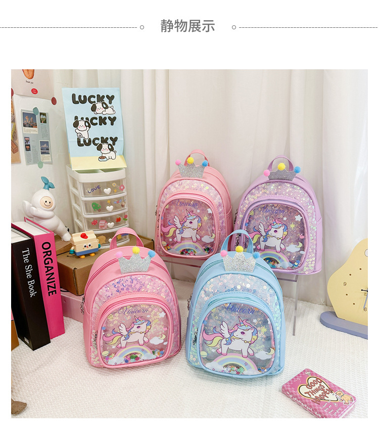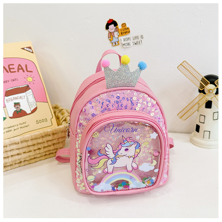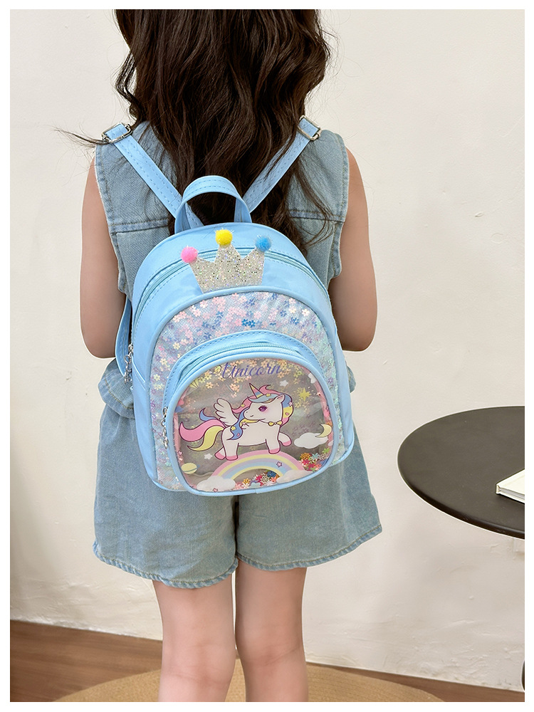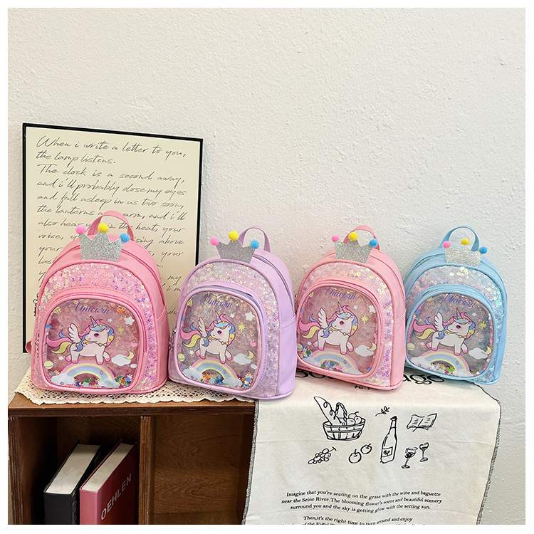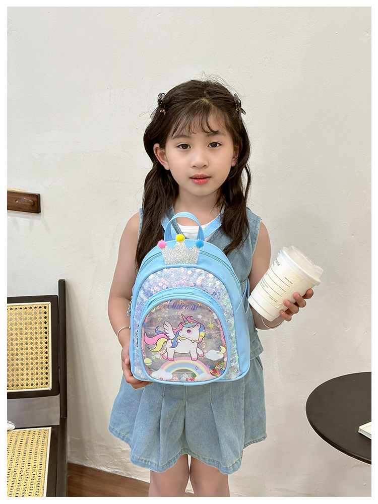 어린이 스팽글 가방 만화 유니콘 PU 액세서리 가방 유치원 어린이 스낵 가방 서양식 공주 여행 가방