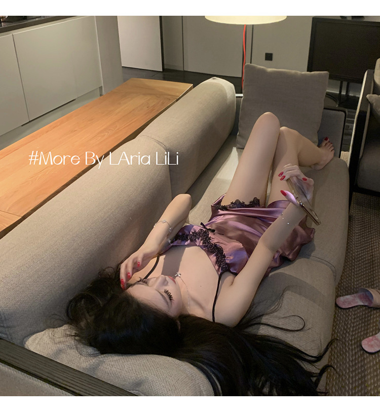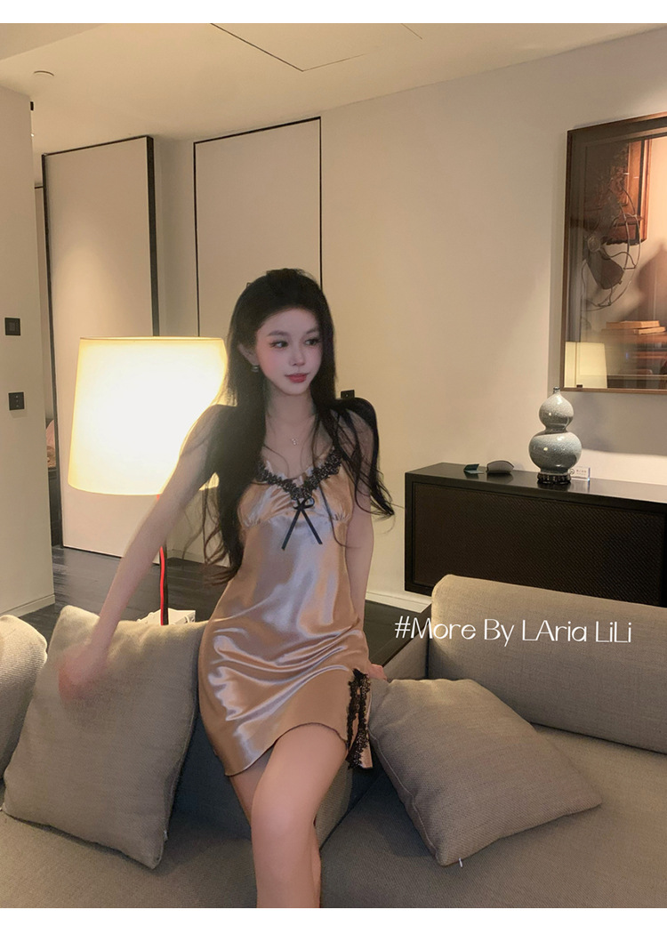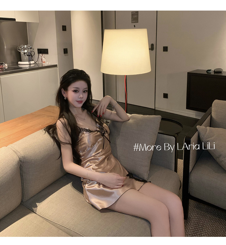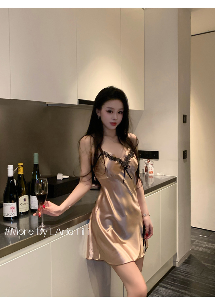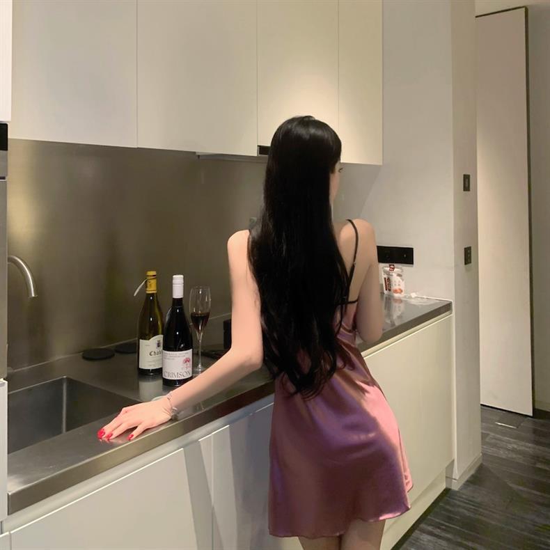 여름 여성을 위한 서양식 섹시 잠옷, 가슴 패드가 있는 아이스 실크 서스펜더 잠옷, 순수한 욕망 스타일 2025 새로운 스타일스토어 가기