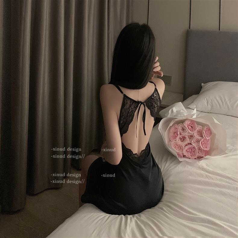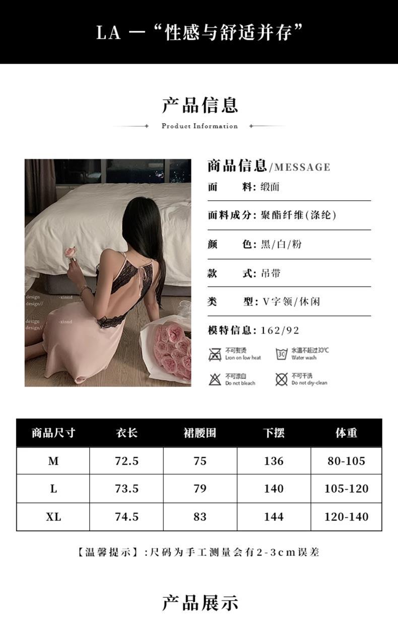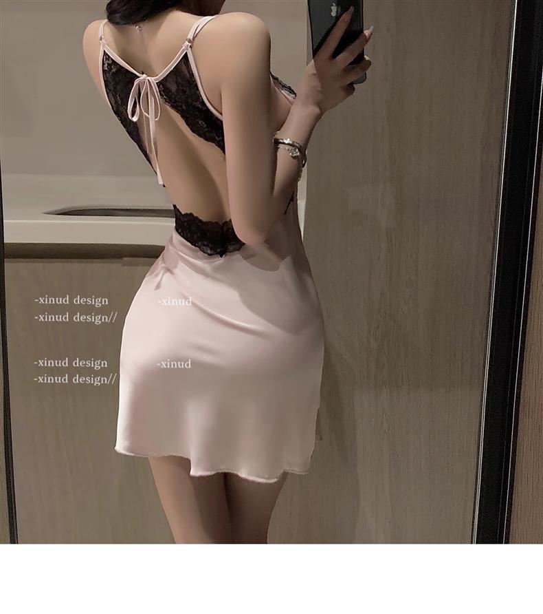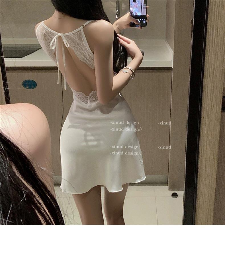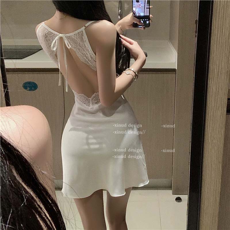"시시" 핑크와 화이트 하트* 얇은 레이스 백리스 젠틀 여성스러운 잠옷 순수한 욕망 섹시한 잠옷 여름
