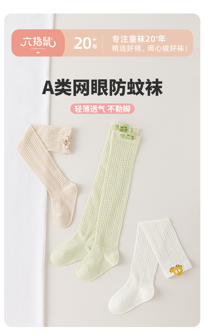 Six-fingered Mouse 뼈없는 어린이 양말 아기 무릎 위 모기 방지 양말 여름 얇은 소년 아기 통기성 메쉬 하이 튜브