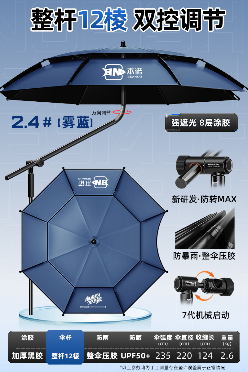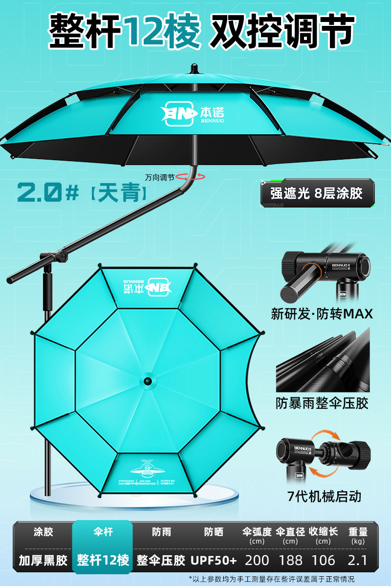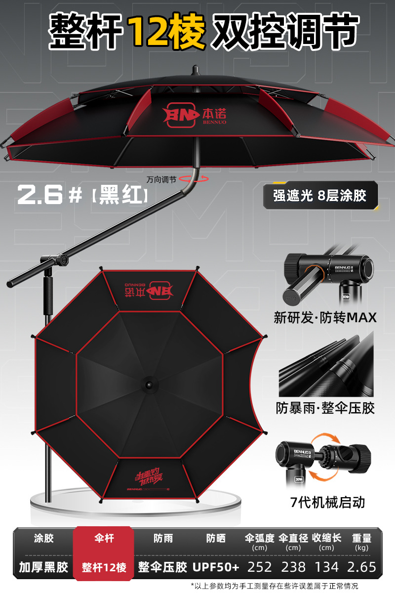 벤노 2026년형 낚시우산, 만능 야외용 차양 및 방수 대형 낚시우산, 강풍에도 견디는 낚시용 특수 지팡이 우산스토어 가기
