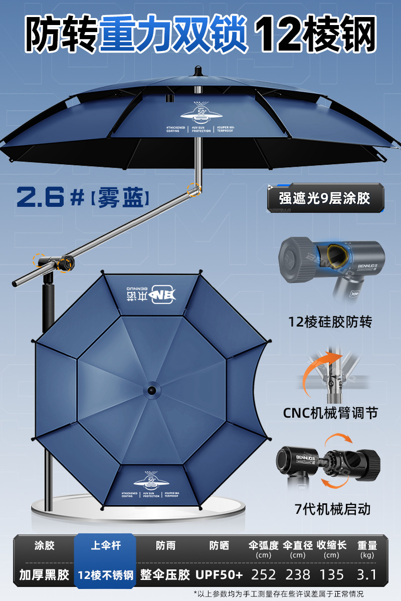 벤노 2026년형 낚시우산, 만능 야외용 차양 및 방수 대형 낚시우산, 강풍에도 견디는 낚시용 특수 지팡이 우산