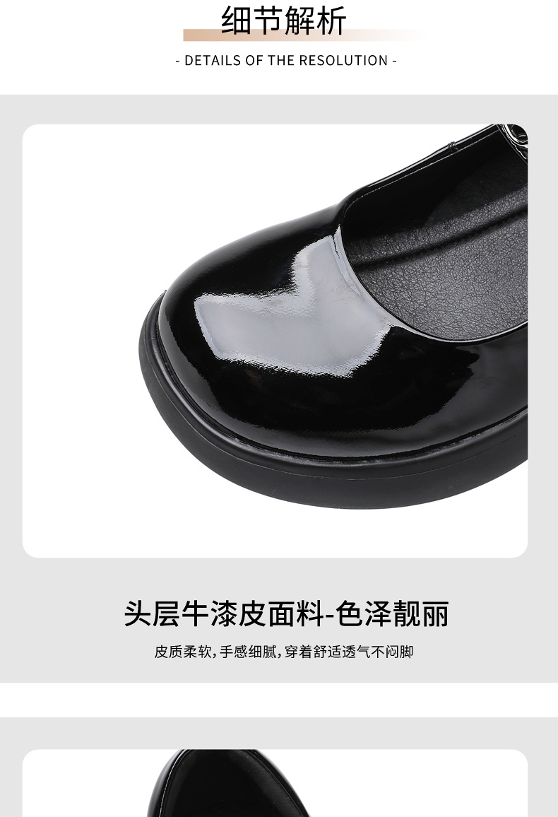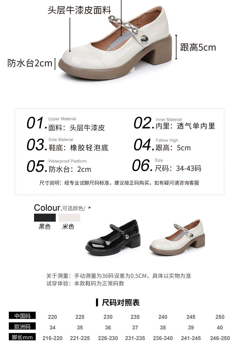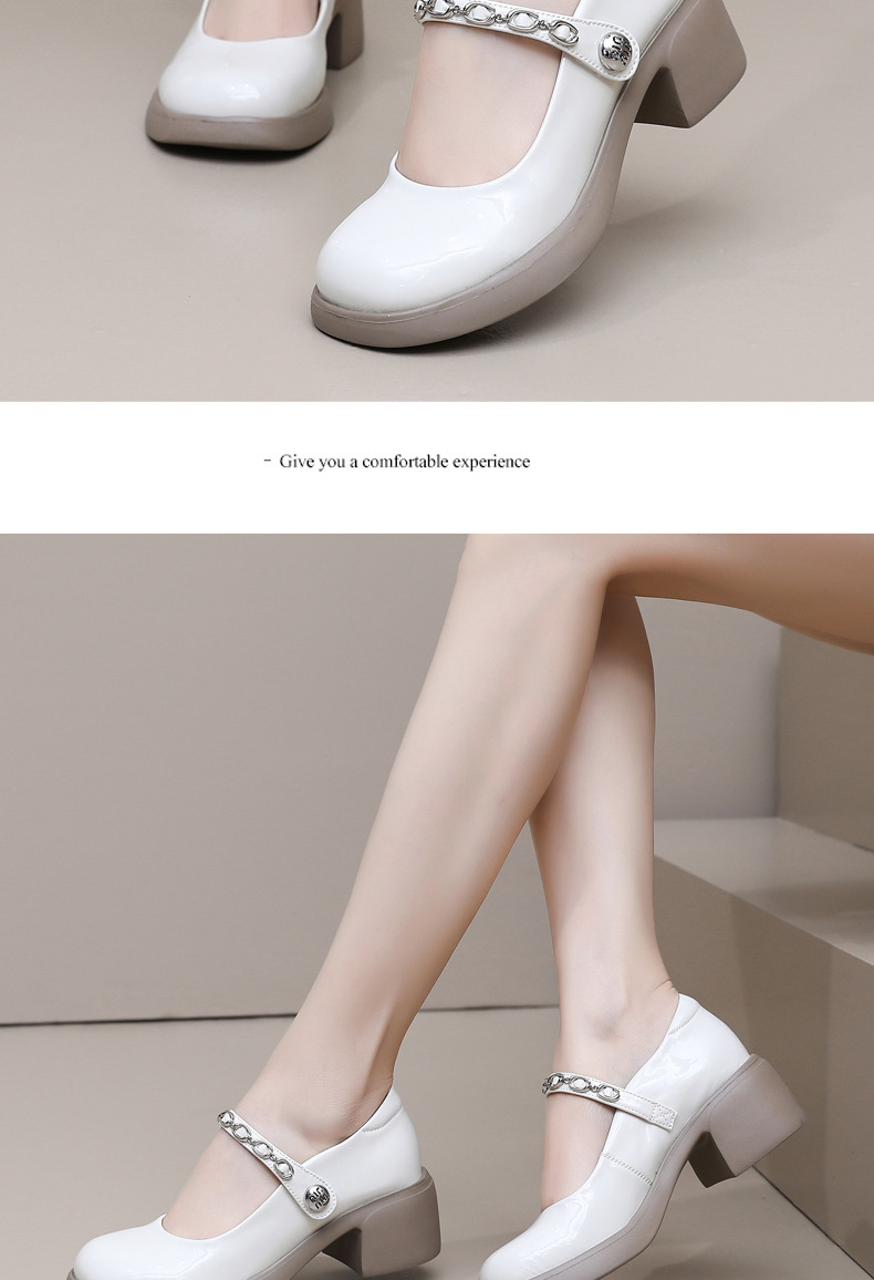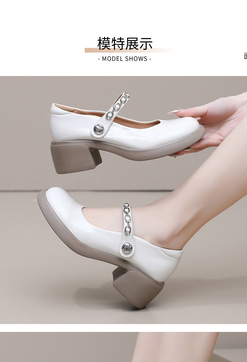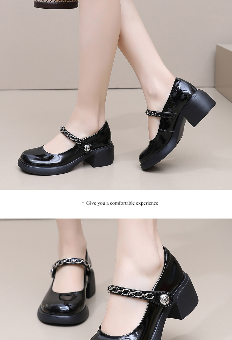 정품 페이턴트 가죽 두꺼운 굽 메리 제인 여성 신발 봄 여름 두꺼운 밑창 둥근 발가락 얕은 구두 대형 중간 굽 어머니 신발 가죽 신발스토어 가기