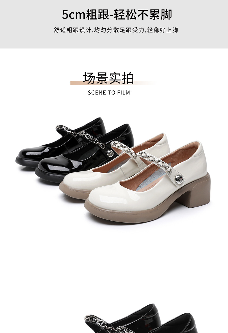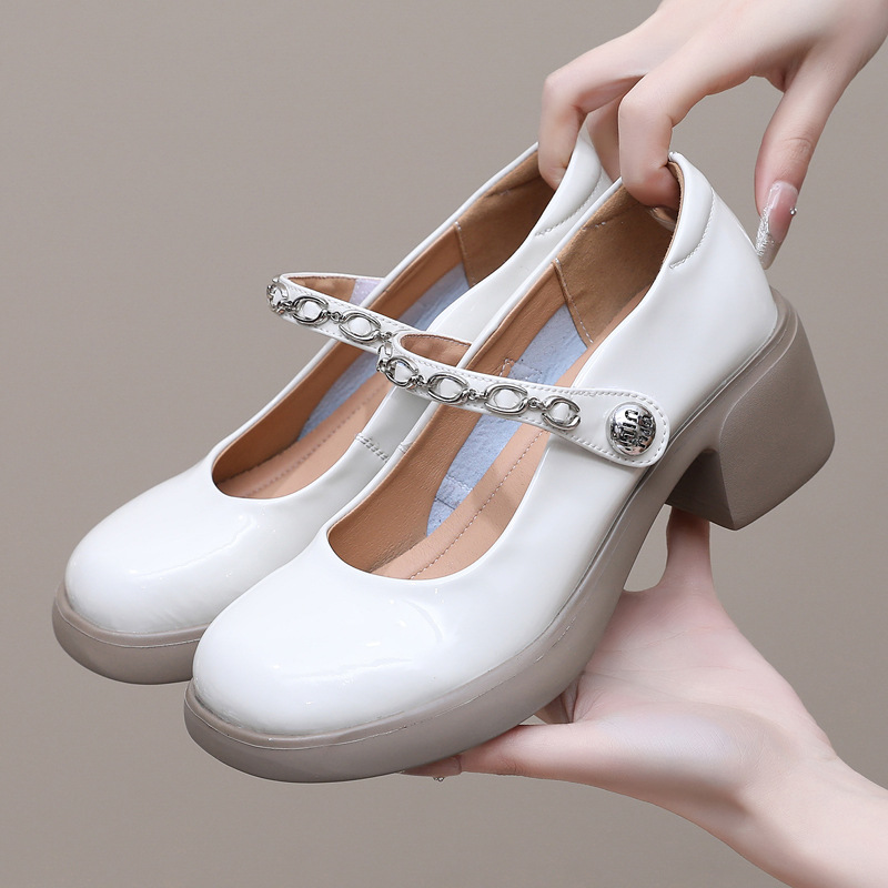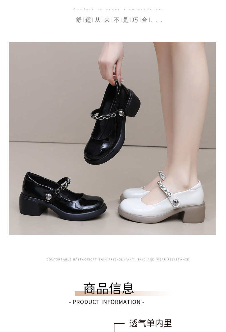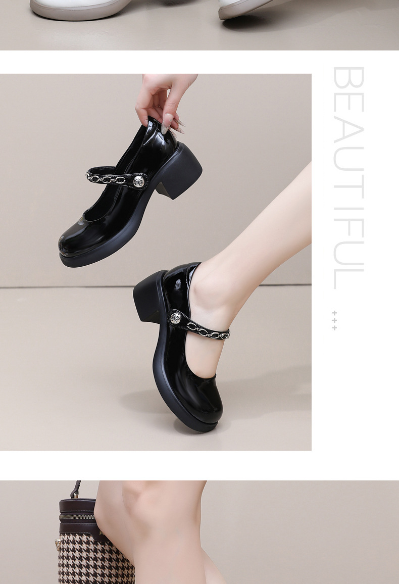 정품 페이턴트 가죽 두꺼운 굽 메리 제인 여성 신발 봄 여름 두꺼운 밑창 둥근 발가락 얕은 구두 대형 중간 굽 어머니 신발 가죽 신발스토어 가기