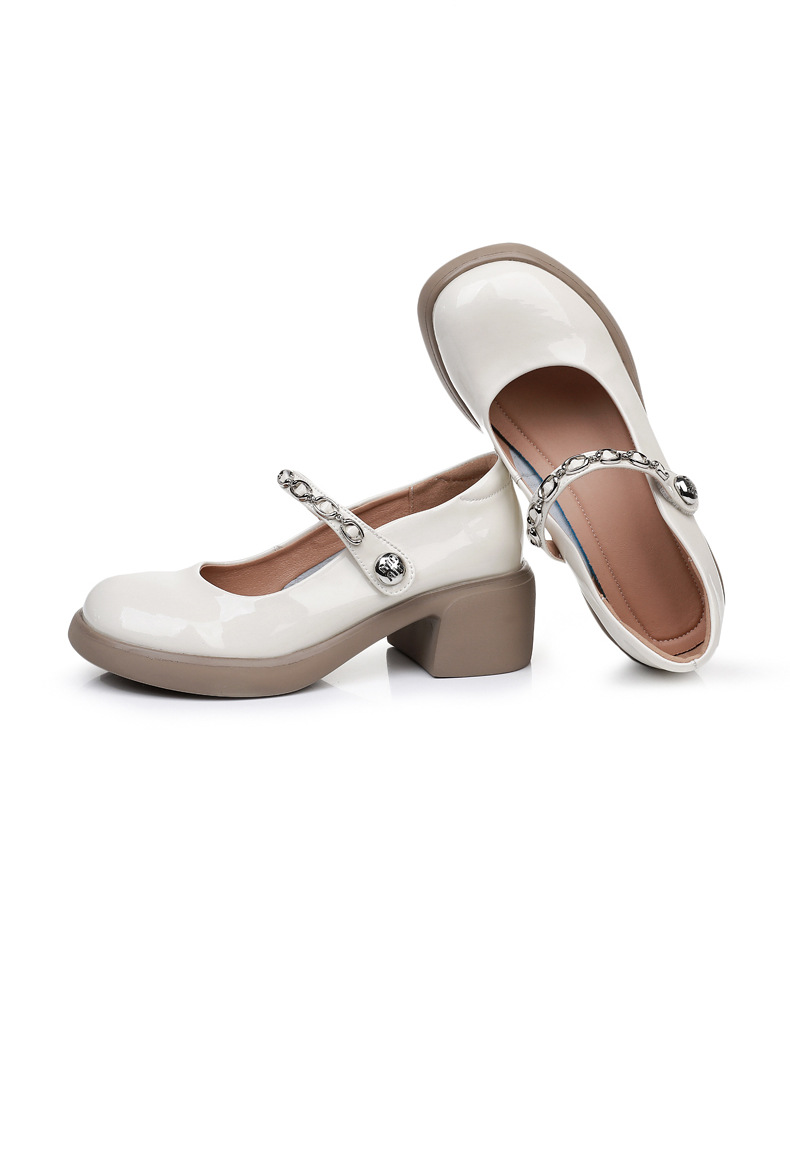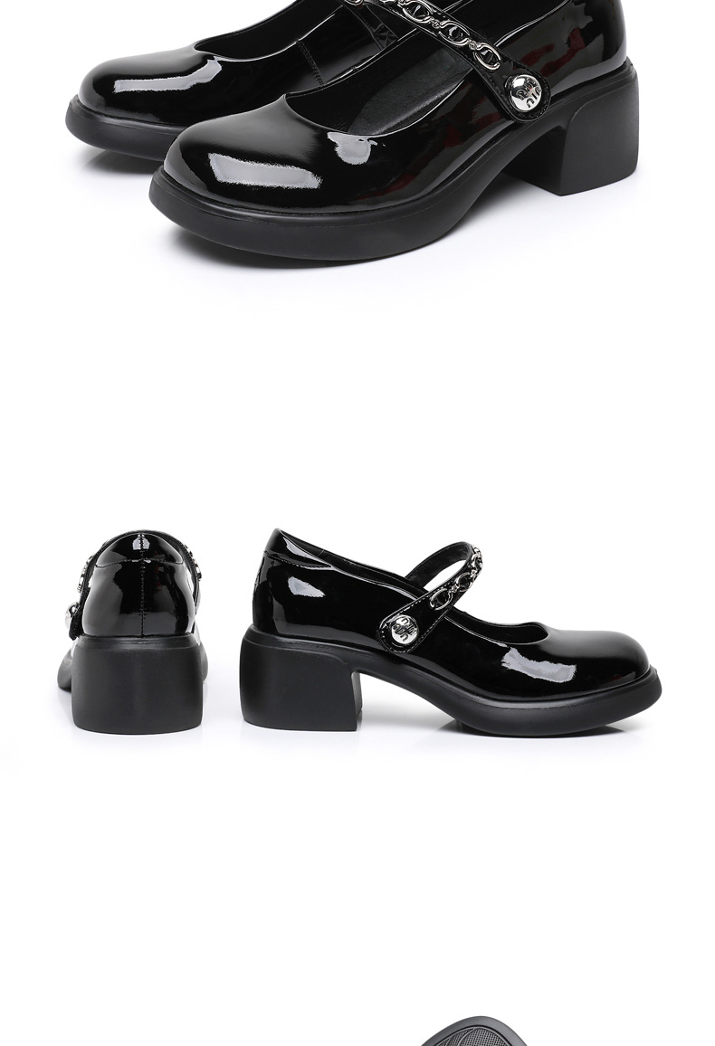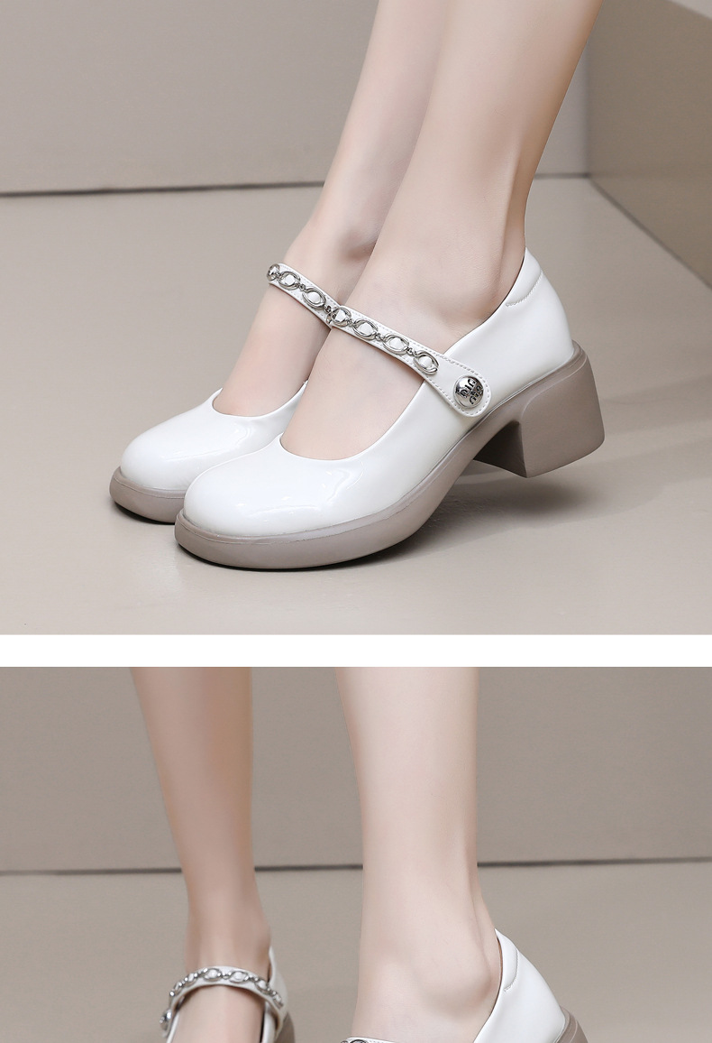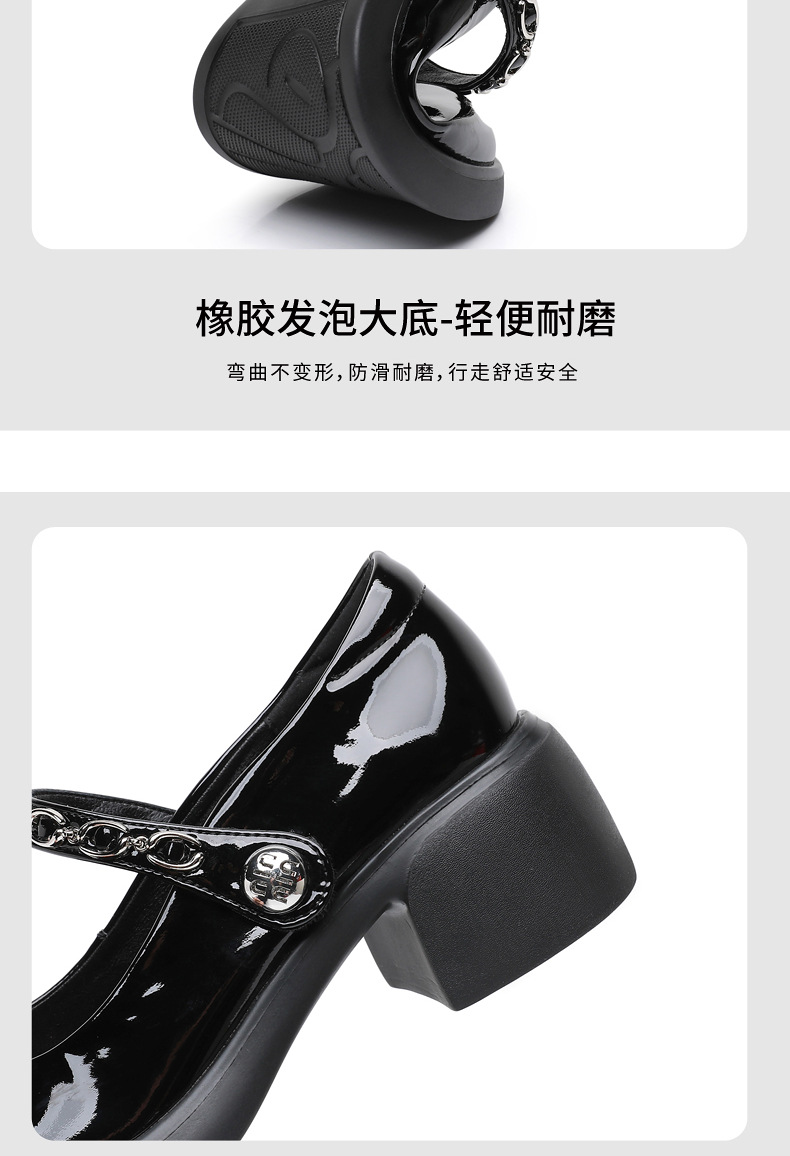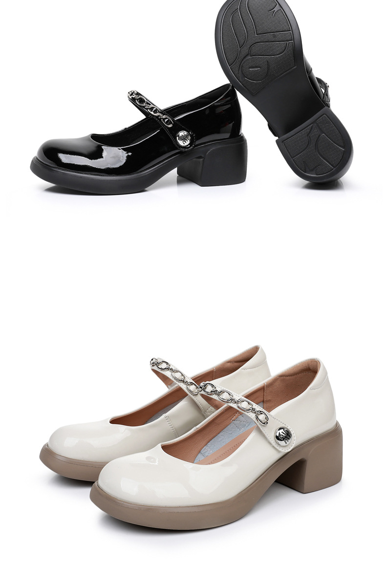 정품 페이턴트 가죽 두꺼운 굽 메리 제인 여성 신발 봄 여름 두꺼운 밑창 둥근 발가락 얕은 구두 대형 중간 굽 어머니 신발 가죽 신발스토어 가기