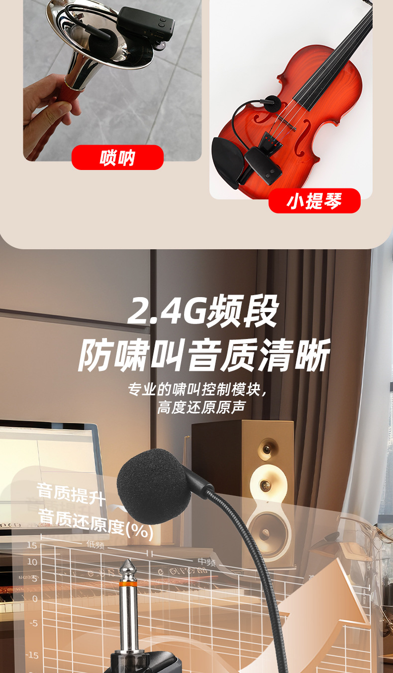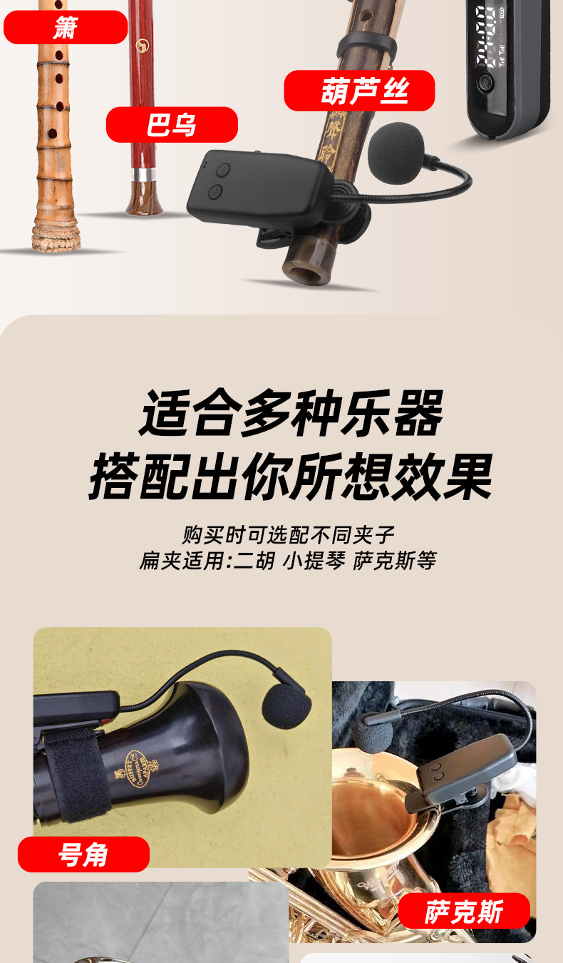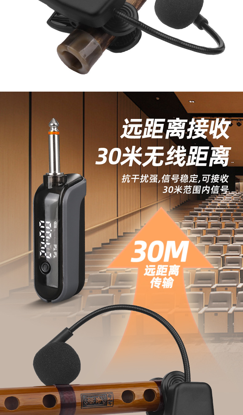 국경 간 악기 특수 무선 마이크 픽업 Erhu Flute Pipa Saxophone Violin Microphone