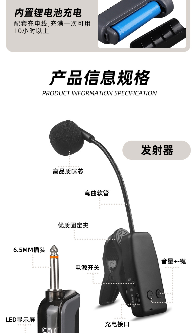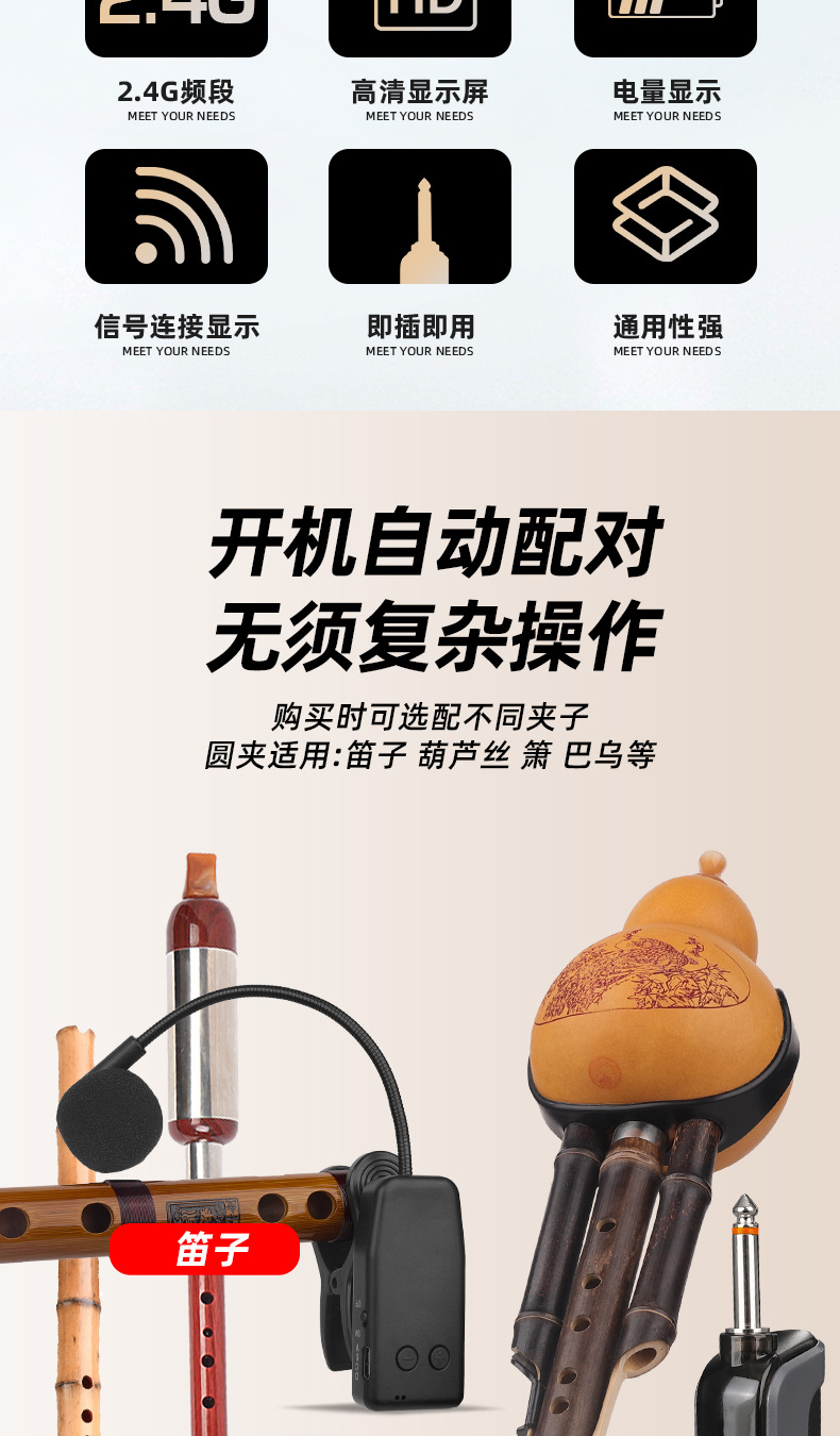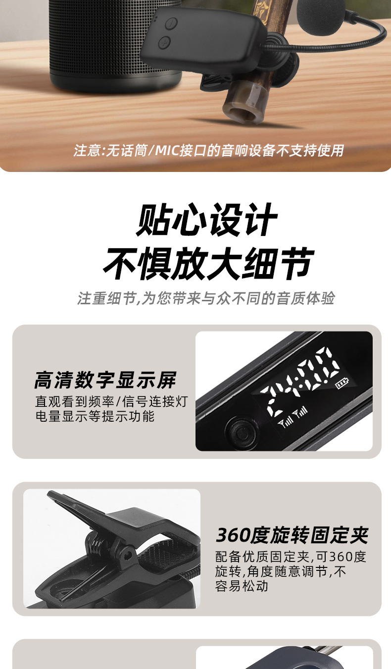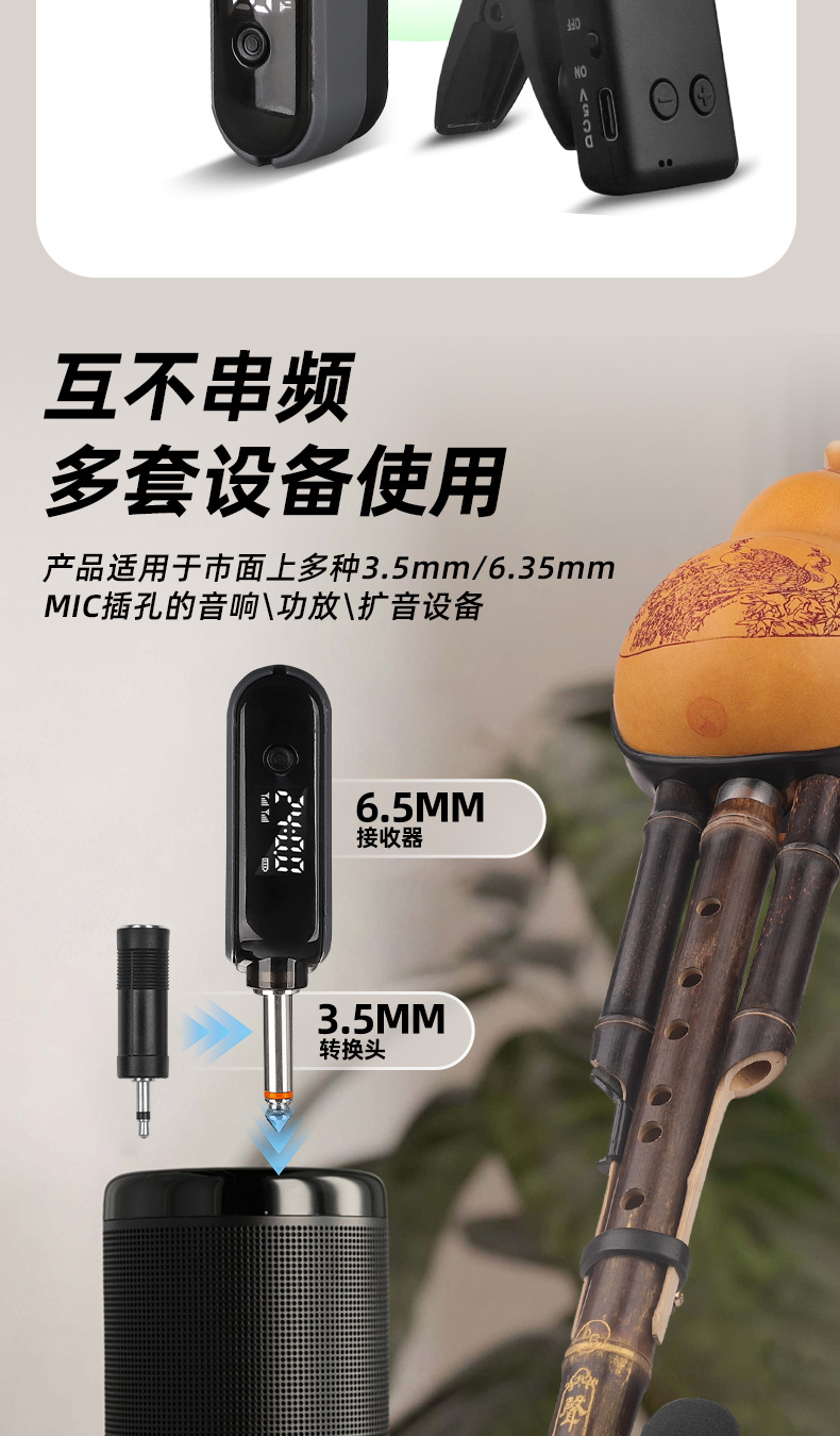 국경 간 악기 특수 무선 마이크 픽업 Erhu Flute Pipa Saxophone Violin Microphone