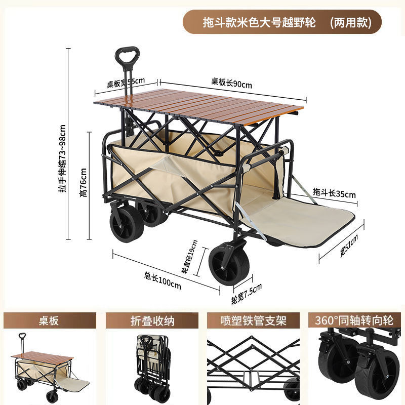 • 캠프카 + 접이식 스톨 테이블 - 대형 트레일러 탱크 휠(베이지색)