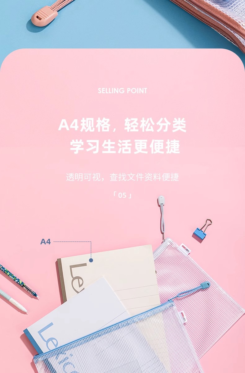 델리 a4 파일 가방 지퍼 파일 보관 가방 투명 초등학생 과목 분류 가방 대용량 보관 가방