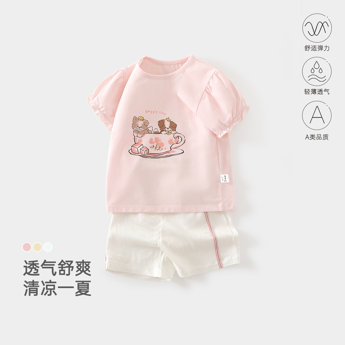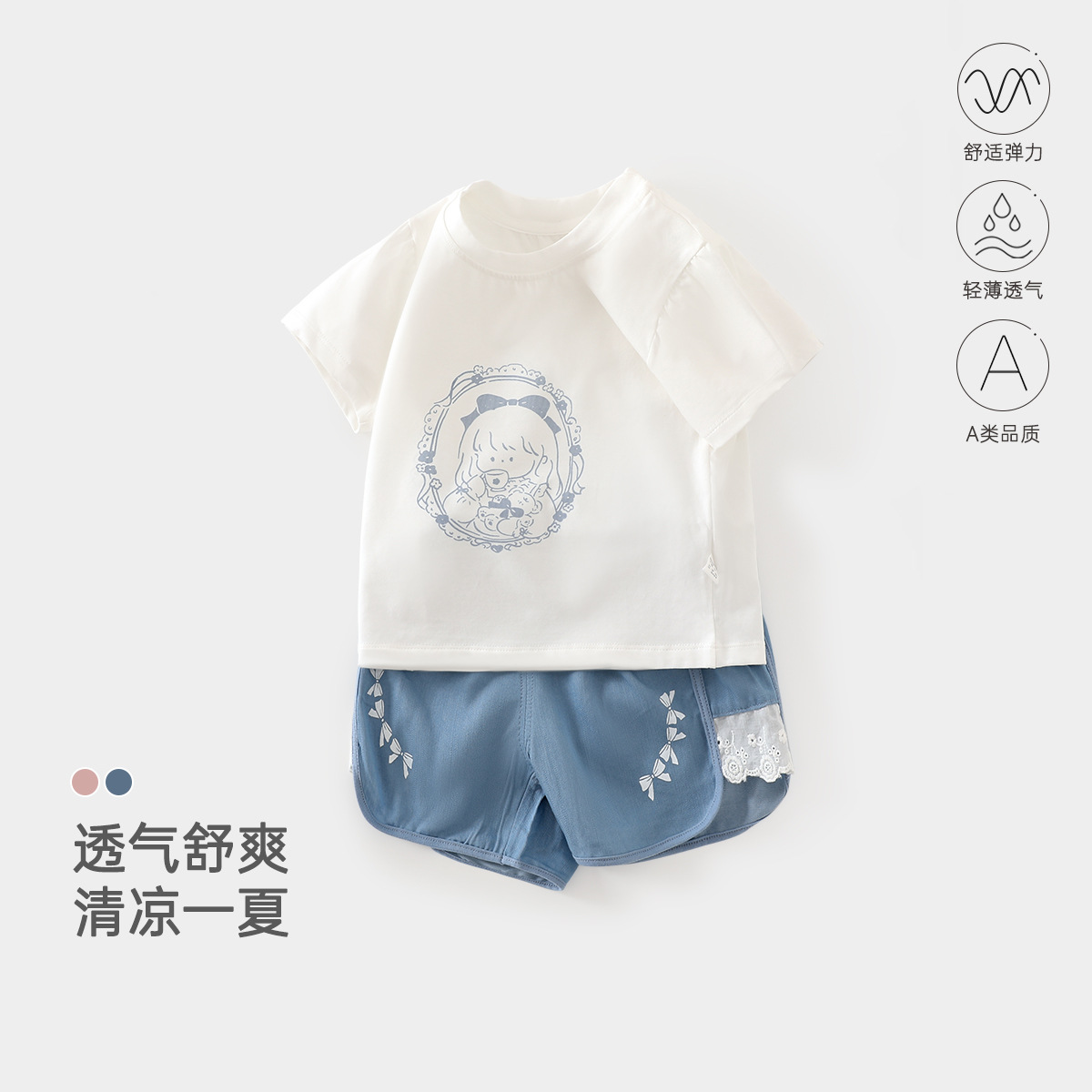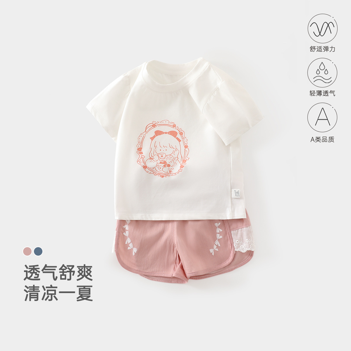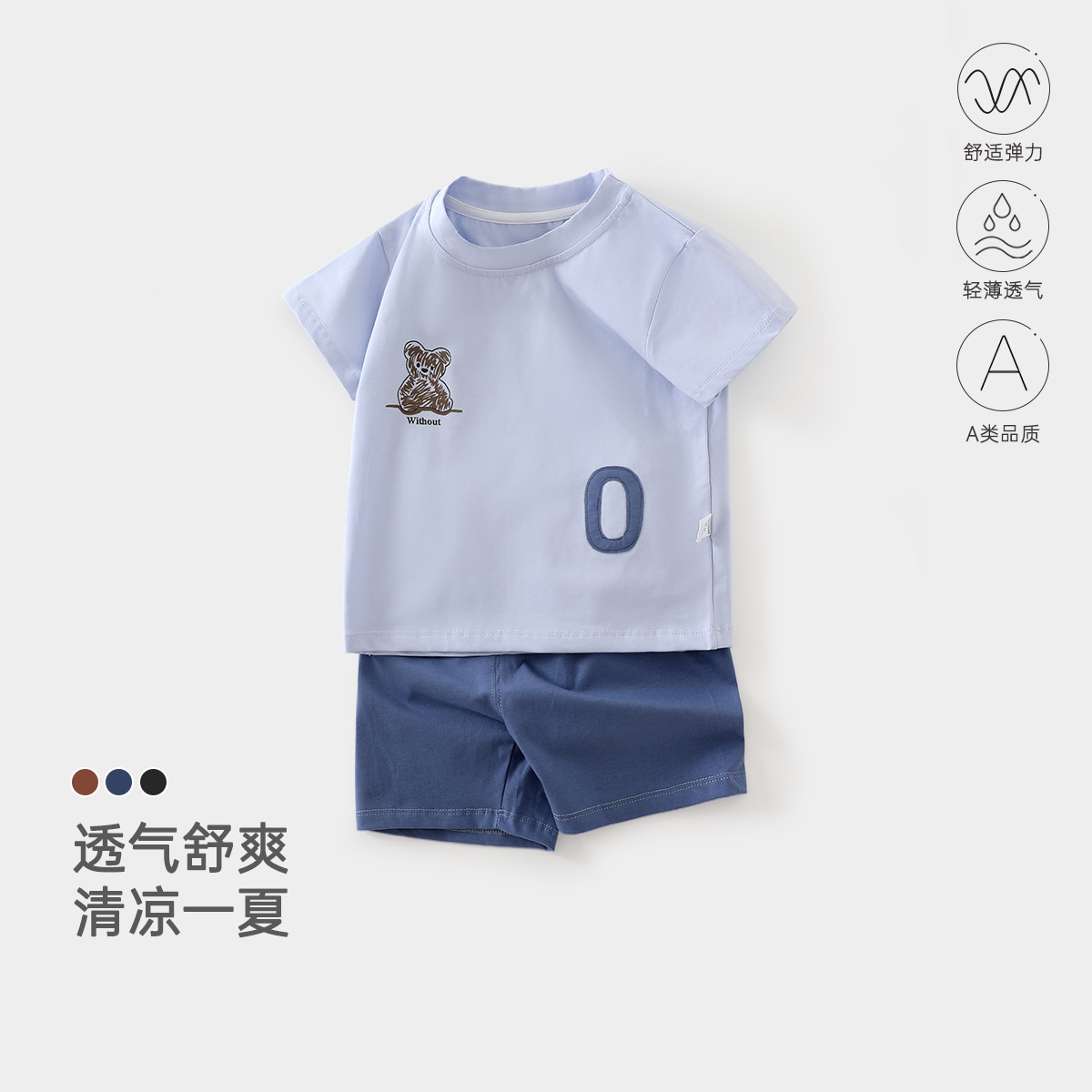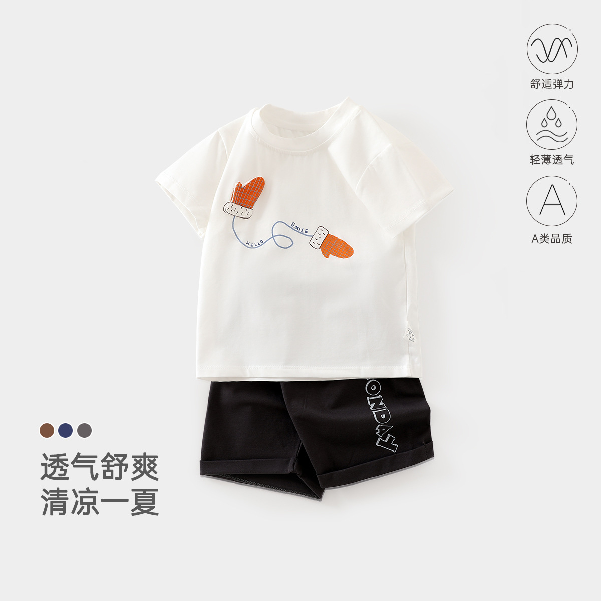여름 아기 반팔 반바지 정장 유아 및 어린이 얇은 스플릿 여름 옷 소년과 소녀 여름 투피스 세트