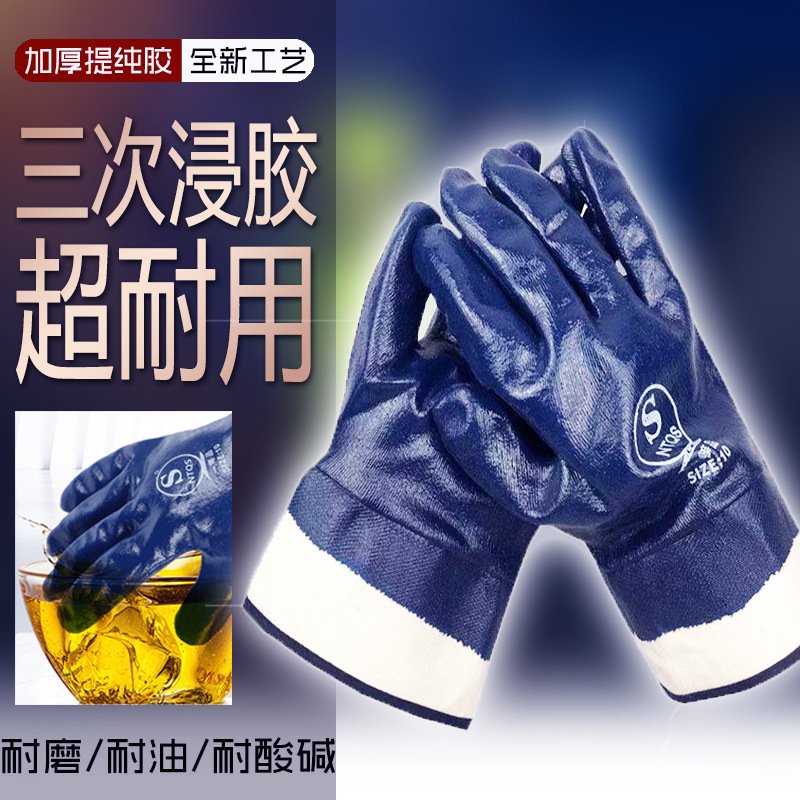 자동차 수리 기계 작업 장갑 내유성 대형 입과 넓은 입이 있는 캔버스 블루 니트릴 방수 및 내유성 노동 보호 장갑스토어 가기