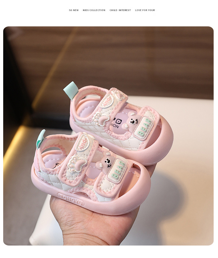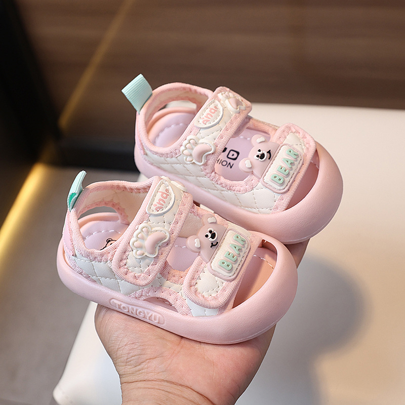 유아 및 유아 신발, 샌들, 여름 새 스타일 여아 발가락 샌들, 부드러운 밑창, 미끄럼 방지, 남아용 귀여운 안티 킥 비치 샌들