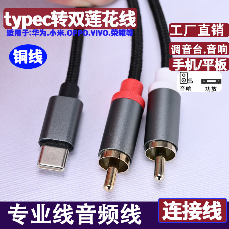 듀얼 로터스 케이블 1분2 분할은 화웨이, 샤오미 타입C 휴대폰을 앰프 스피커에 연결하는 데 적합하며, 고음질을 제공합니다.
