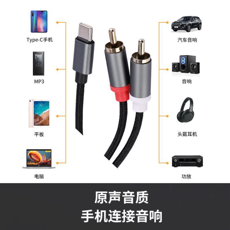듀얼 로터스 케이블 1분2 분할은 화웨이, 샤오미 타입C 휴대폰을 앰프 스피커에 연결하는 데 적합하며, 고음질을 제공합니다.스토어 가기