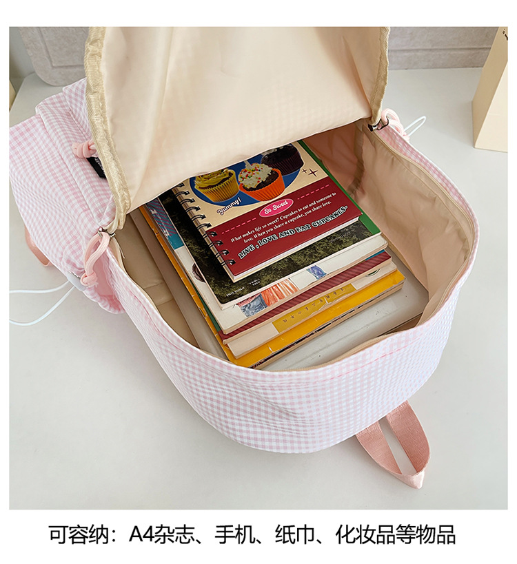 초등학생을위한 작은 신선한 책가방 한국어 버전 달콤한 격자 무늬 배낭 어린이 귀여운 목가적 인 스타일 여행 작은 배낭