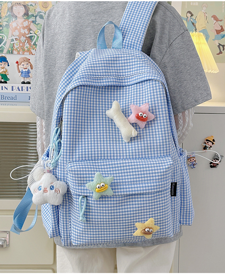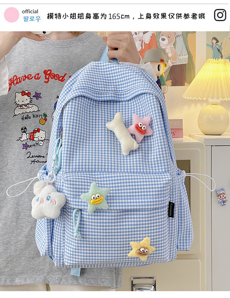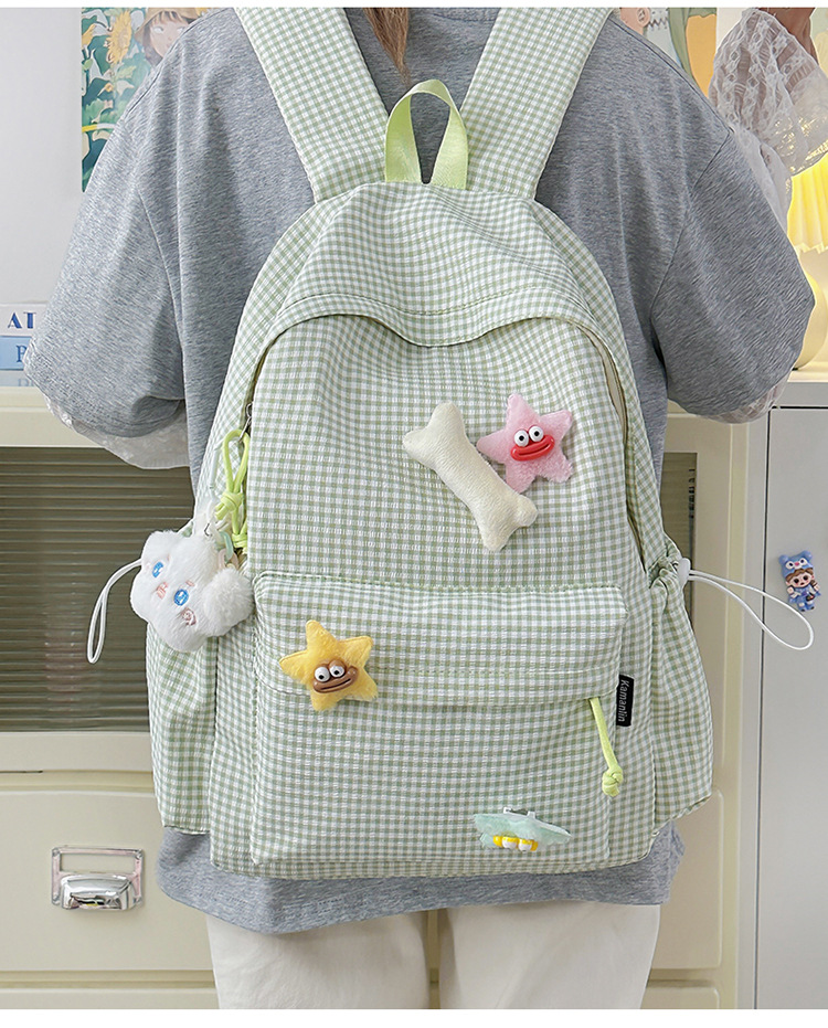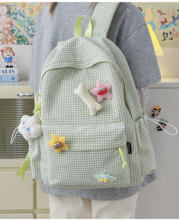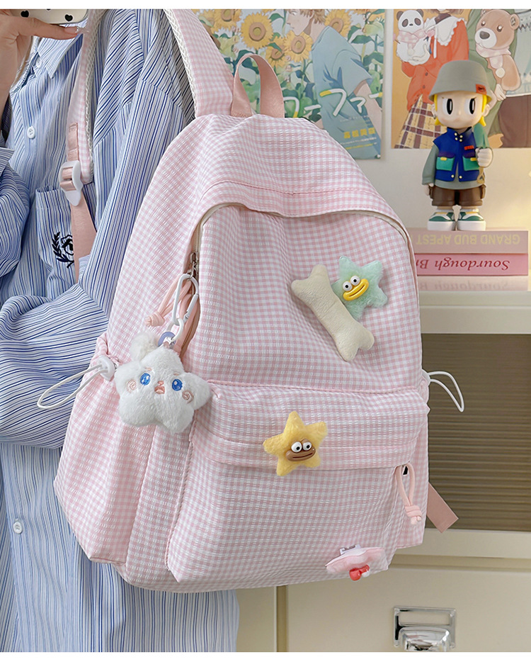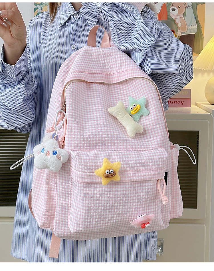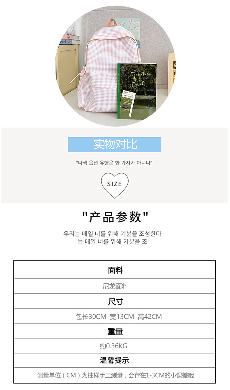 초등학생을위한 작은 신선한 책가방 한국어 버전 달콤한 격자 무늬 배낭 어린이 귀여운 목가적 인 스타일 여행 작은 배낭스토어 가기