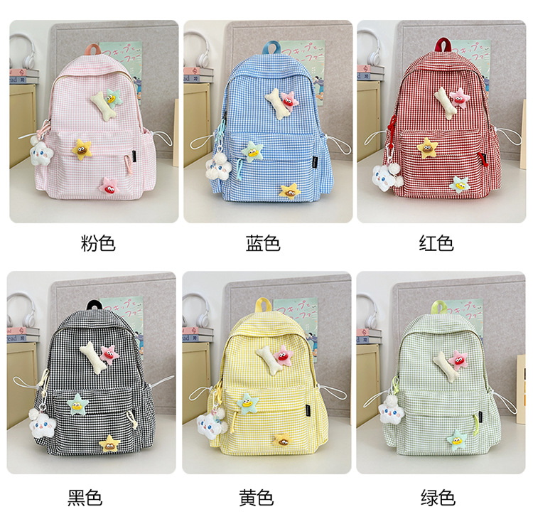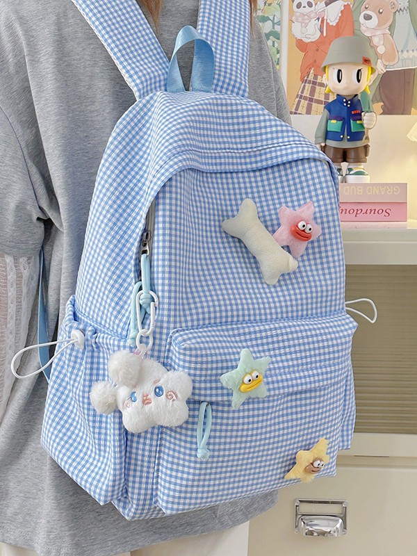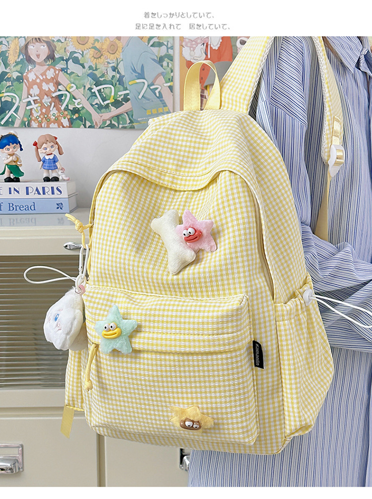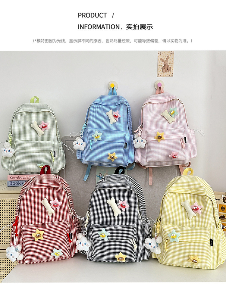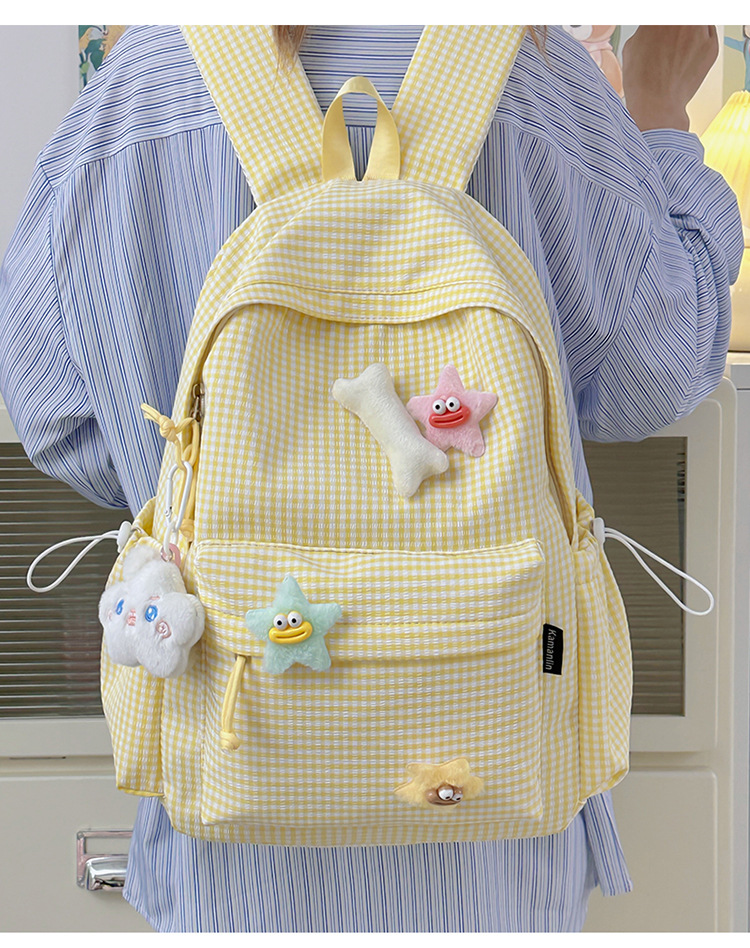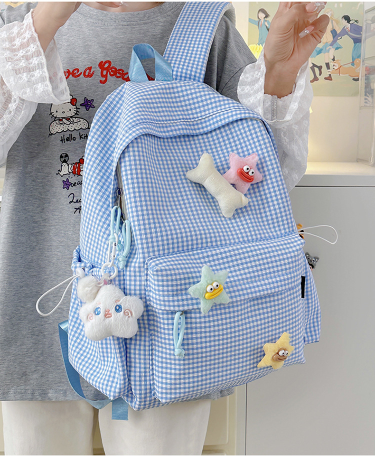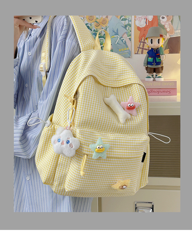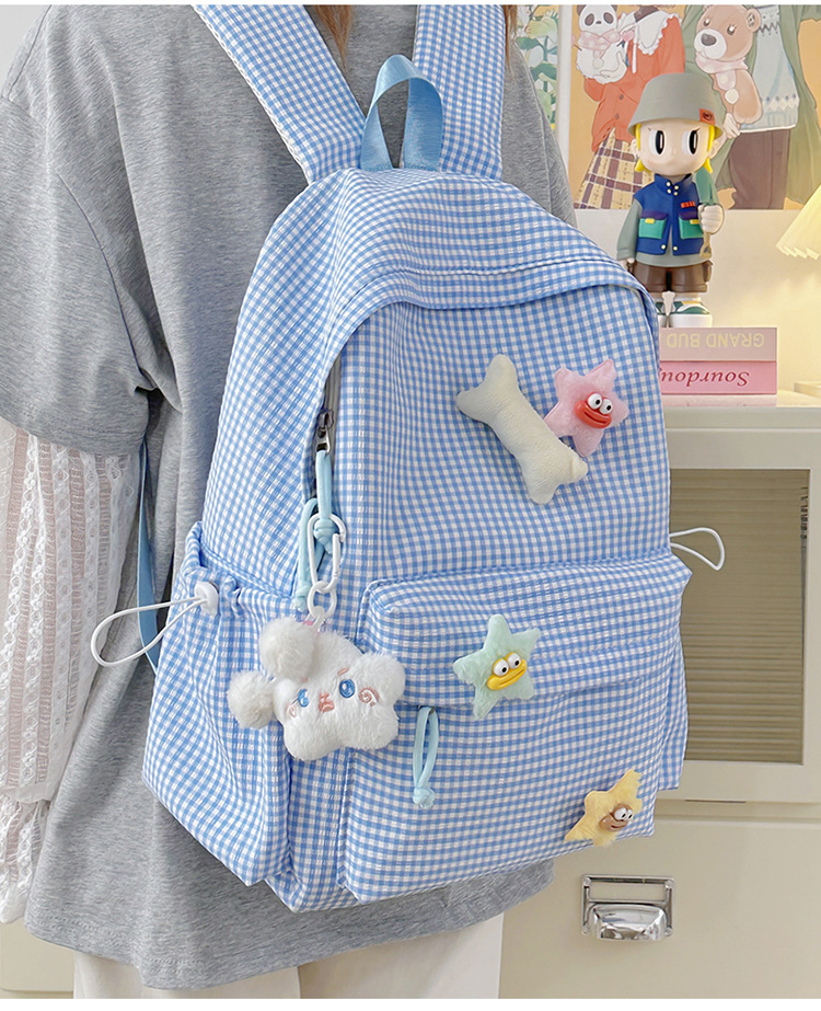 초등학생을위한 작은 신선한 책가방 한국어 버전 달콤한 격자 무늬 배낭 어린이 귀여운 목가적 인 스타일 여행 작은 배낭스토어 가기