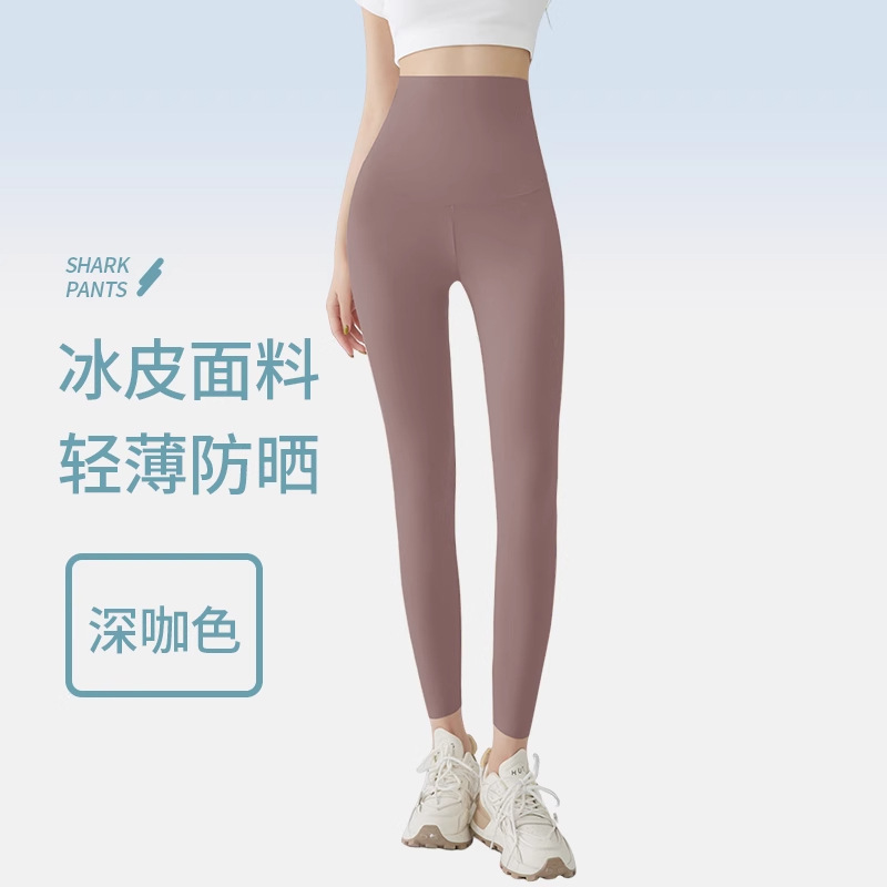 초박형 얼음 실크 자외선 차단제 상어 바지 2025 새로운 여성 겉옷 대형 하이 웨이스트 밀크 스킨 마스크 요가 레깅스 여름스토어 가기