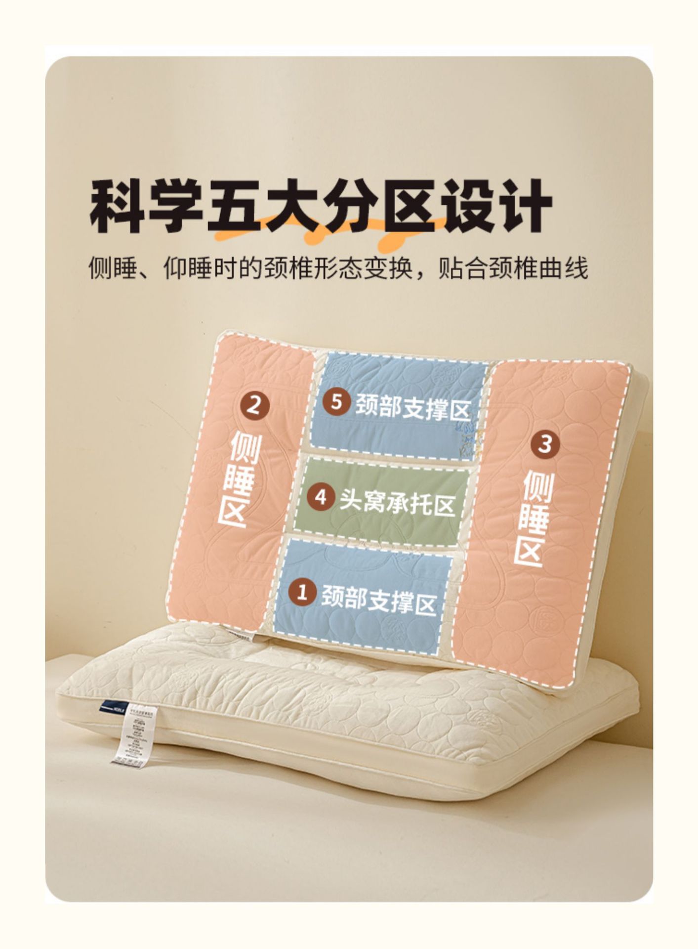 • Cai Yuan 롤링 파우더 - 칸막이 목 베개 [중간 베개]★단일 팩]
