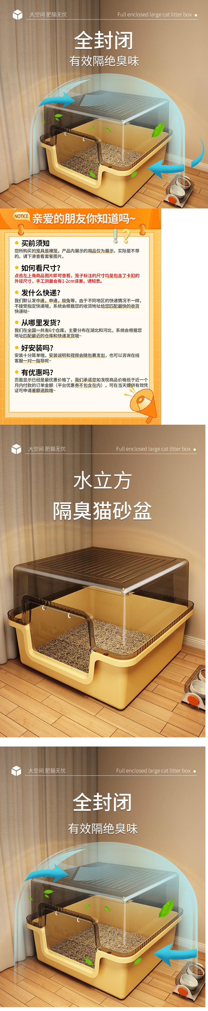 고양이 화장실, 초대형, 물 튀김 방지, 완전 밀폐형, 냄새 방지 고양이 화장실, 어린 고양이, 낮은 발 고양이, 새로운 중국식 고양이 화장실스토어 가기