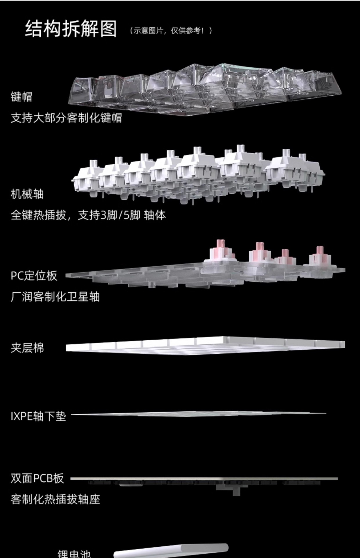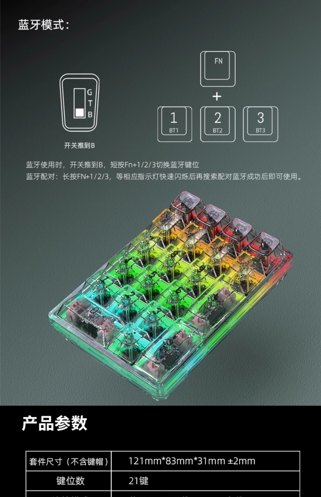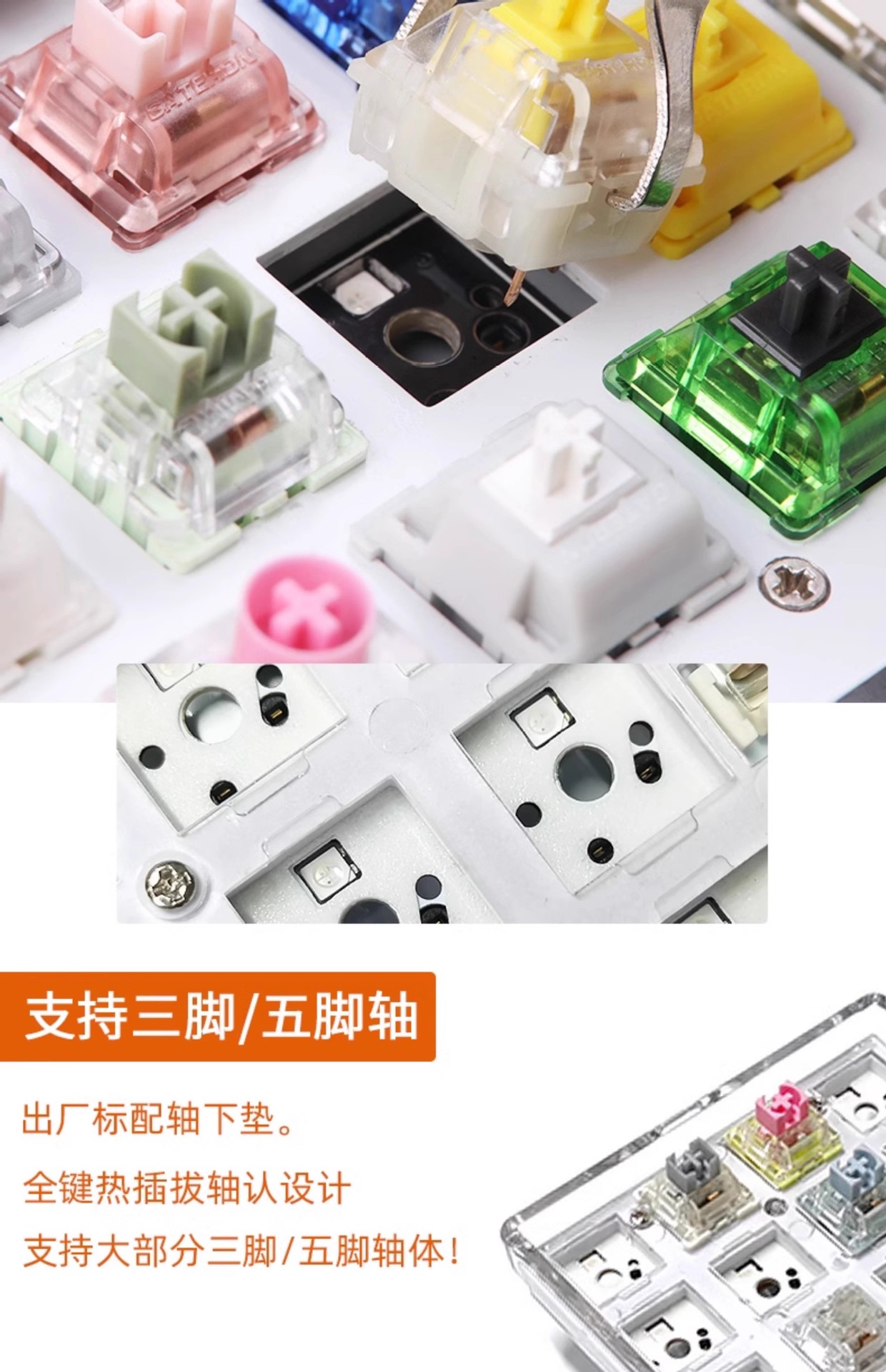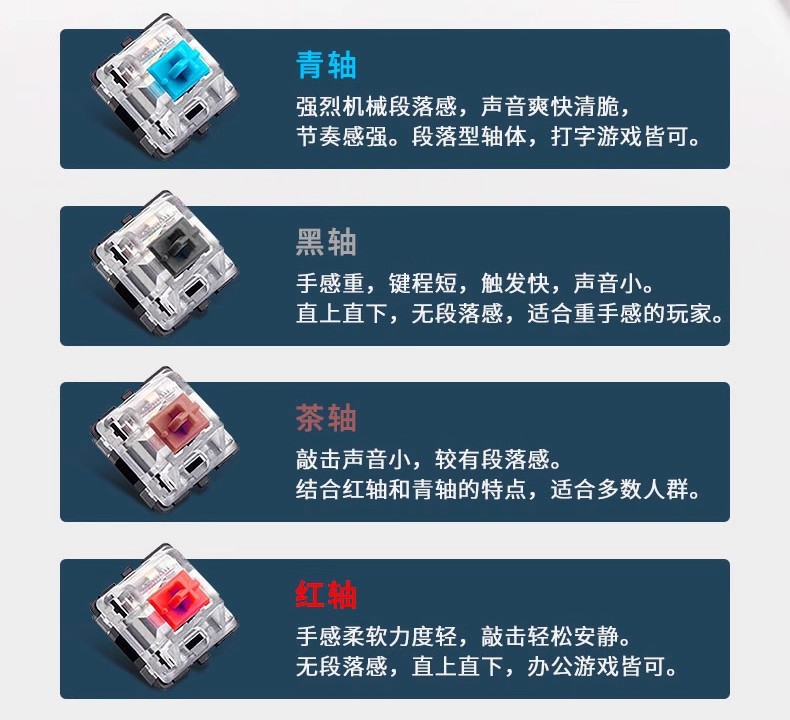 除了无轴无键帽的套件以外,其它几款三模产品是带键帽带轴(青轴、茶轴、红轴, 三选一),如需更换为本店其它品牌轴体,请联系客服补差价即可。