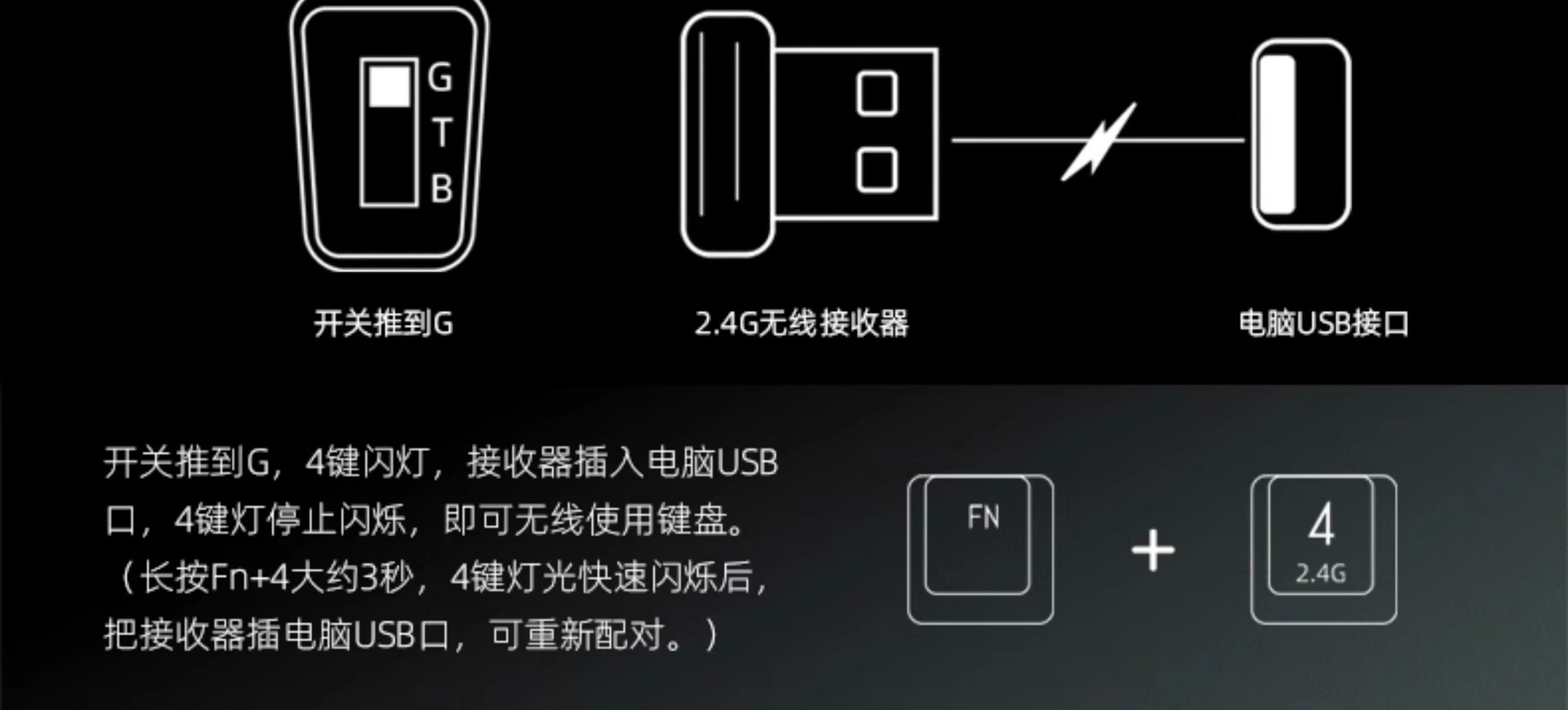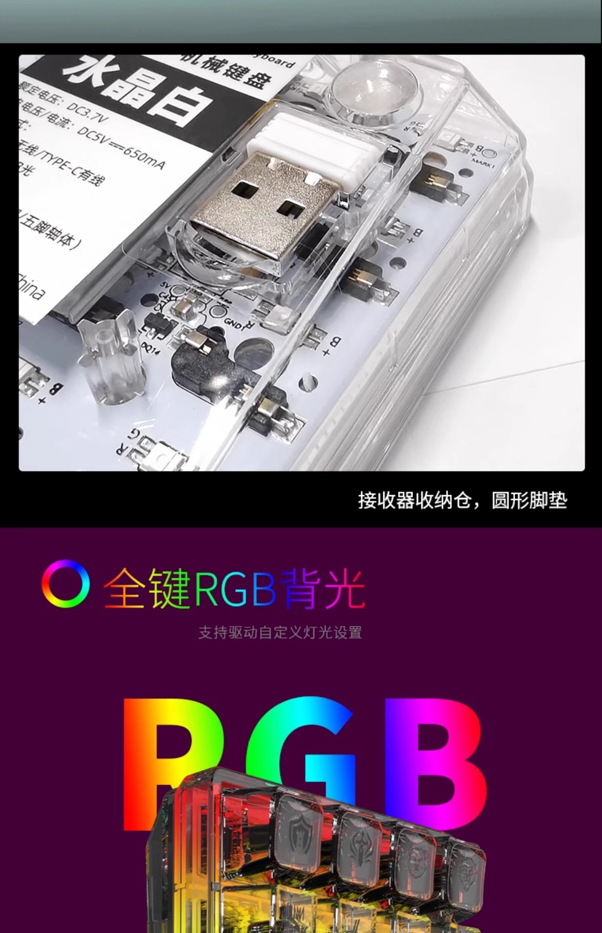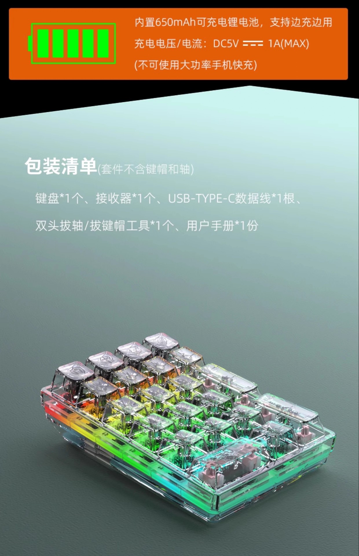 温馨提示:请只用键盘原配充电线连接电脑充电,勿连接手机充电器、充电宝或是其它快充设备充电,以免损坏键盘!此操作不在保修范围内。