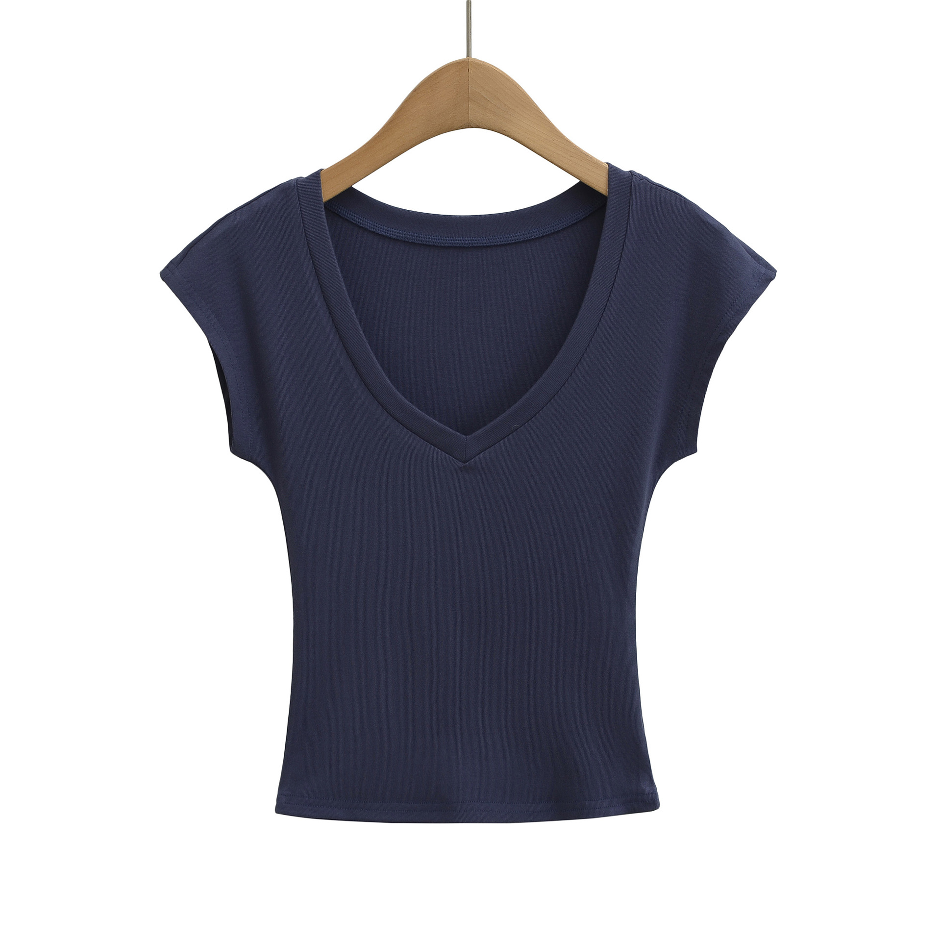 Pure Desire 얇은 하트 넥 솔리드 컬러 반팔 티셔츠 여성 2025 여름 새 스타일 핫 소녀 짧은 슬림 피팅 플라잉 슬리브 탑스토어 가기