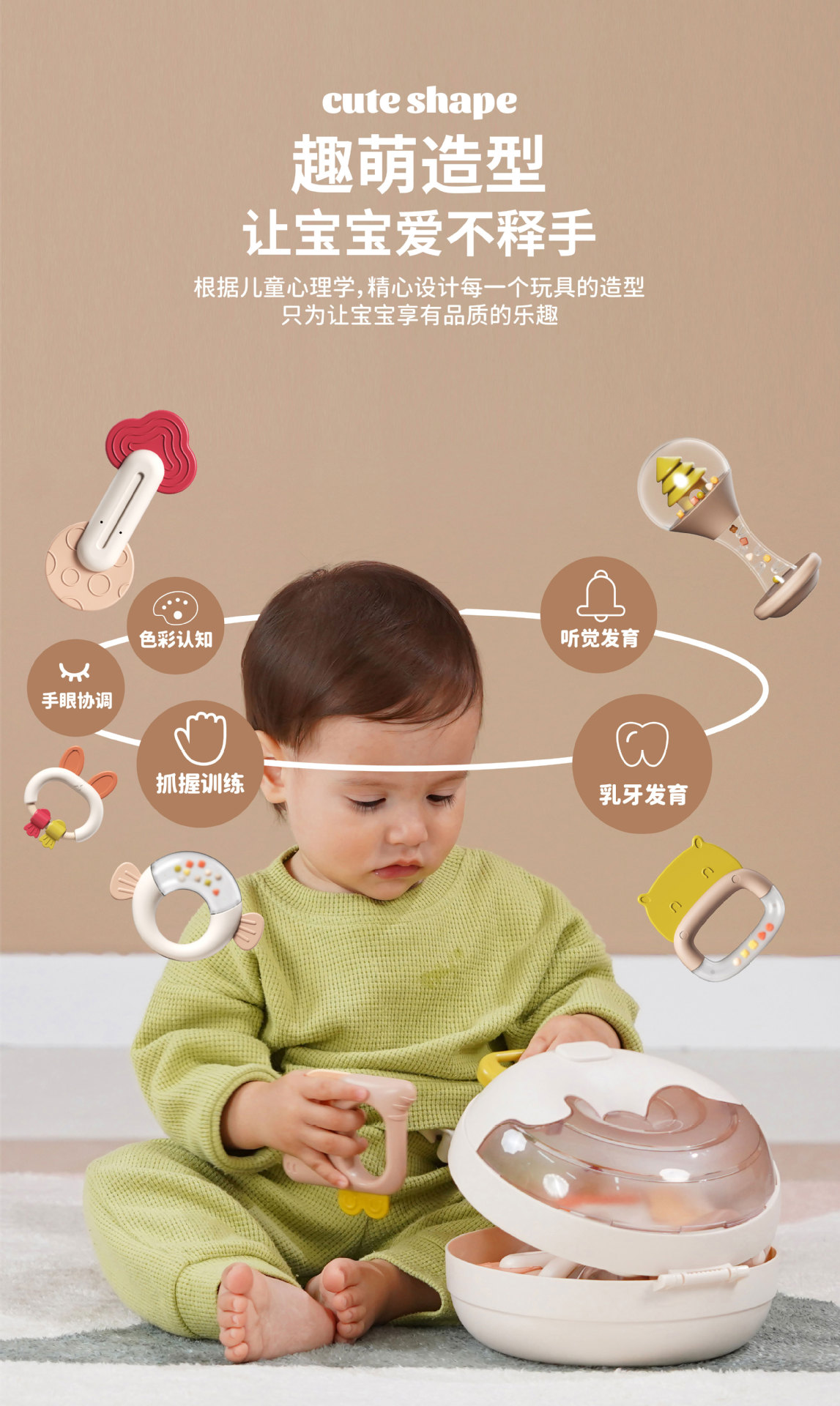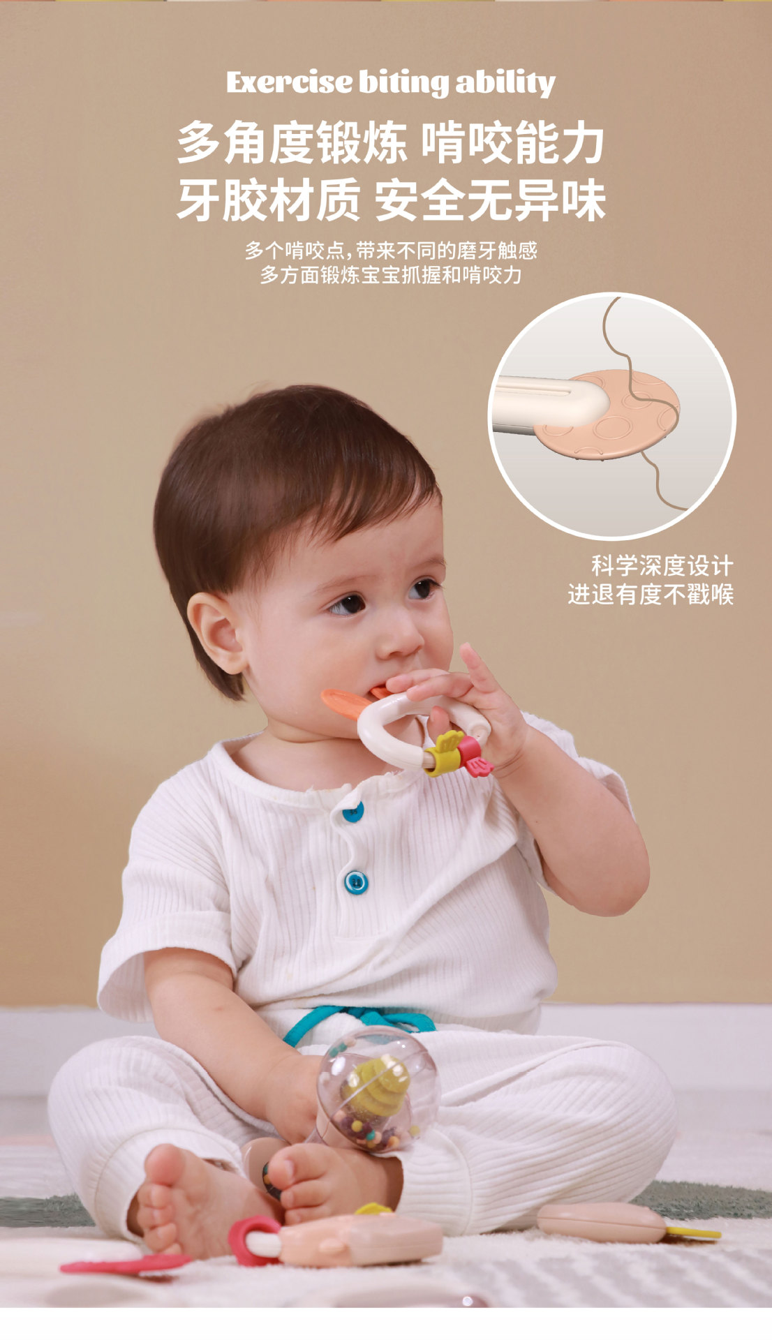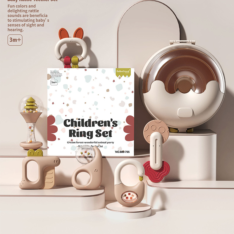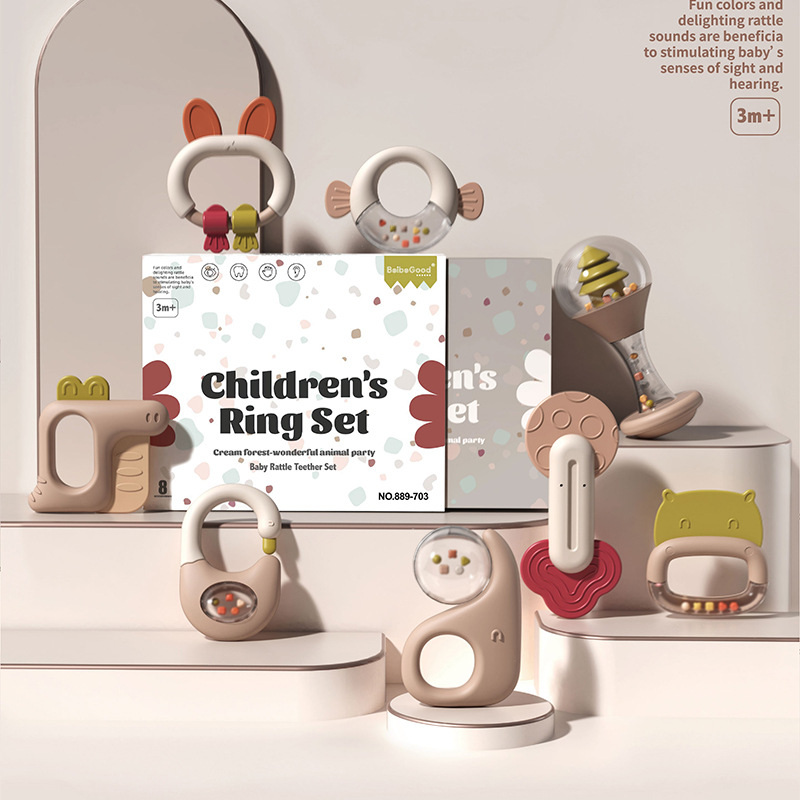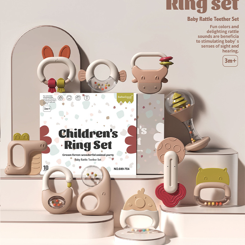 신생아가 물에 담근 치아발육기와 딸랑이 세트를 씹을 수 있는 수출용, 유아를 위한 조기교육용 손 딸랑이, 진정 장난감스토어 가기