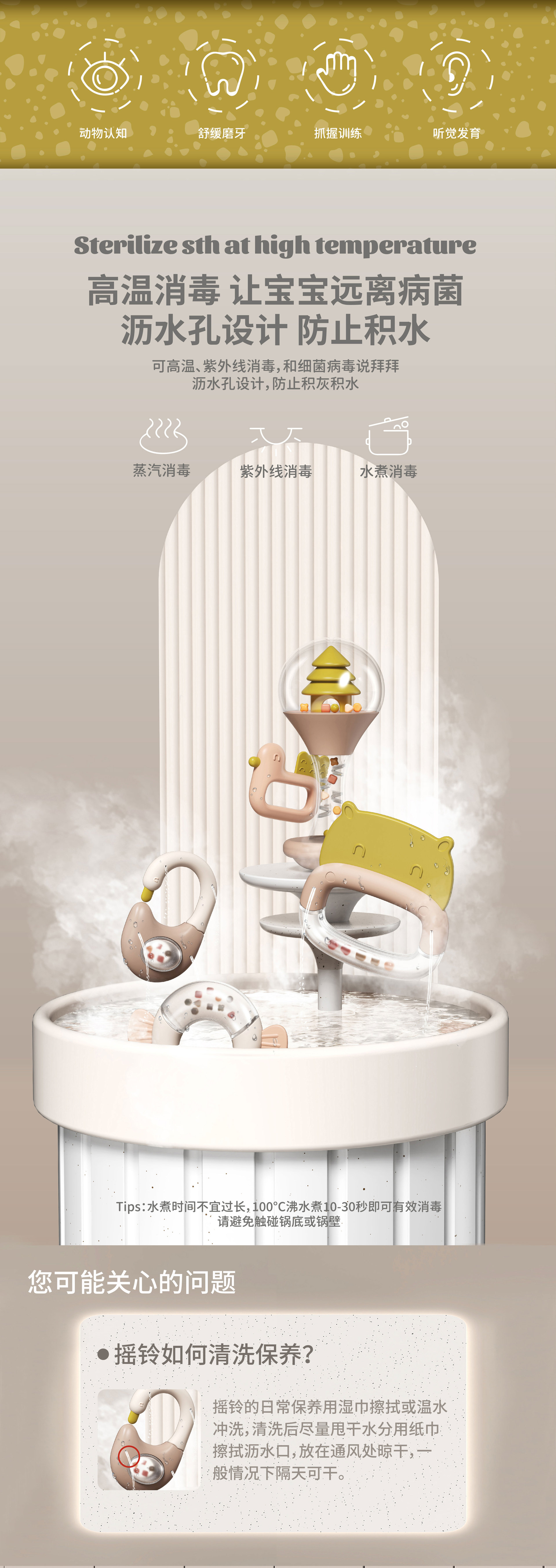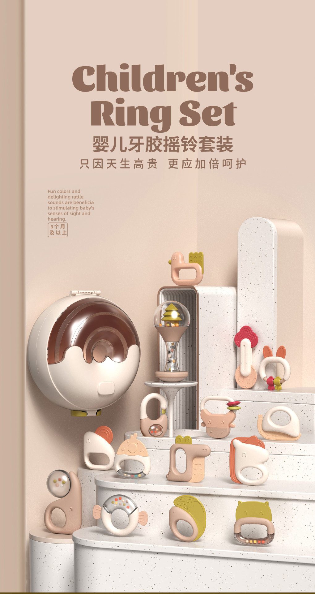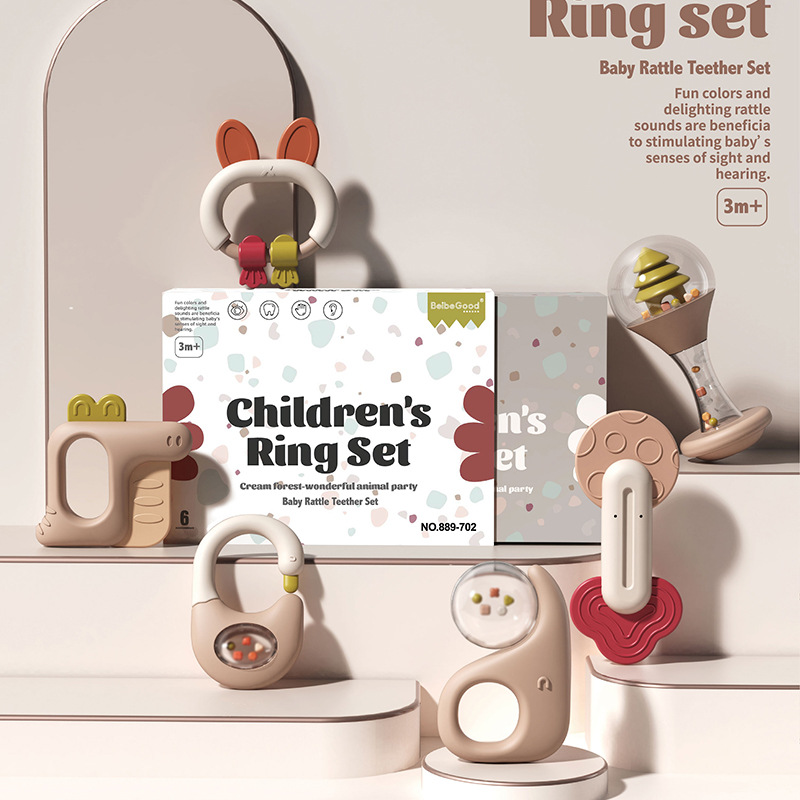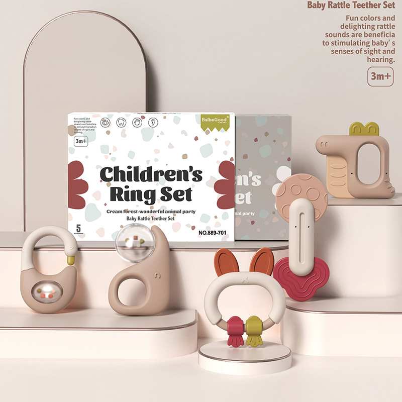 신생아가 물에 담근 치아발육기와 딸랑이 세트를 씹을 수 있는 수출용, 유아를 위한 조기교육용 손 딸랑이, 진정 장난감