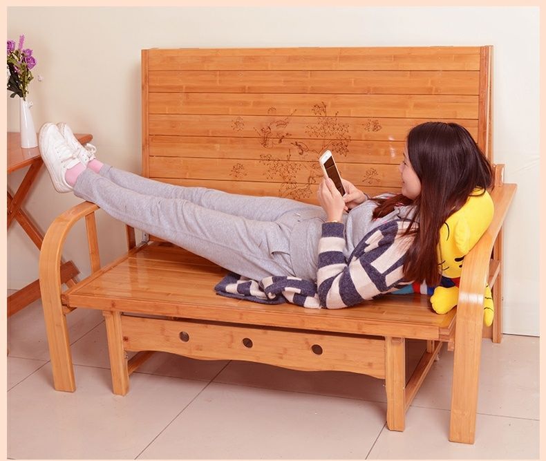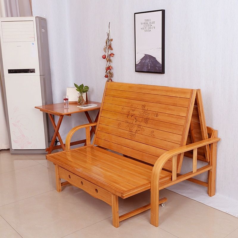 접이식 소파 베드 이중 목적 더블 홈 다기능 단단한 나무 점심 휴식 침대 사무실 싱글 간단한 대나무 침대 의자