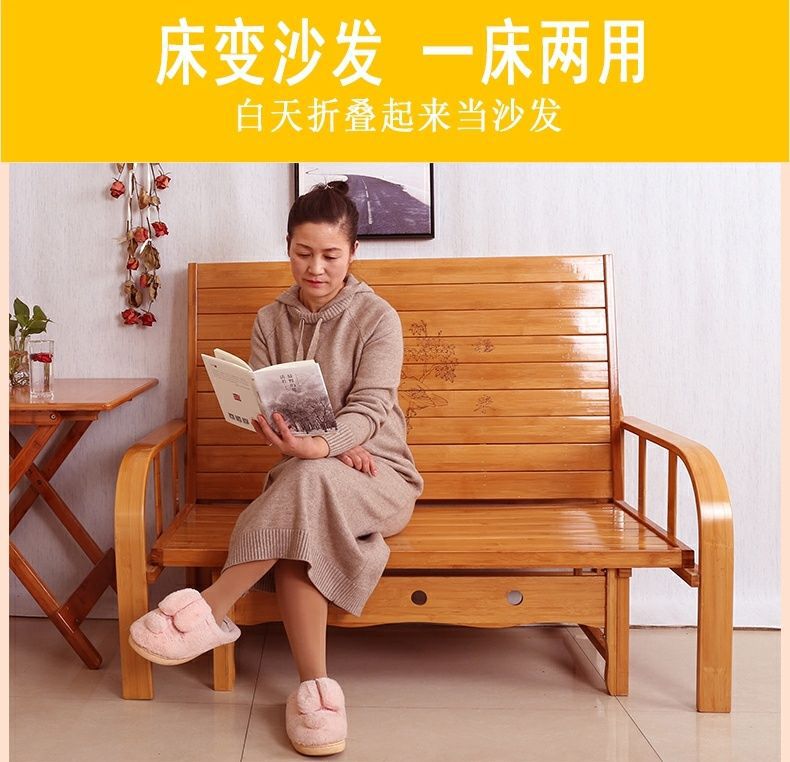 접이식 소파 베드 이중 목적 더블 홈 다기능 단단한 나무 점심 휴식 침대 사무실 싱글 간단한 대나무 침대 의자스토어 가기