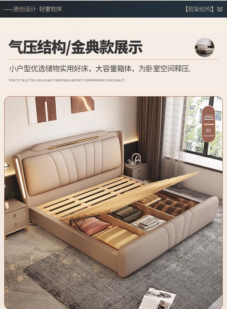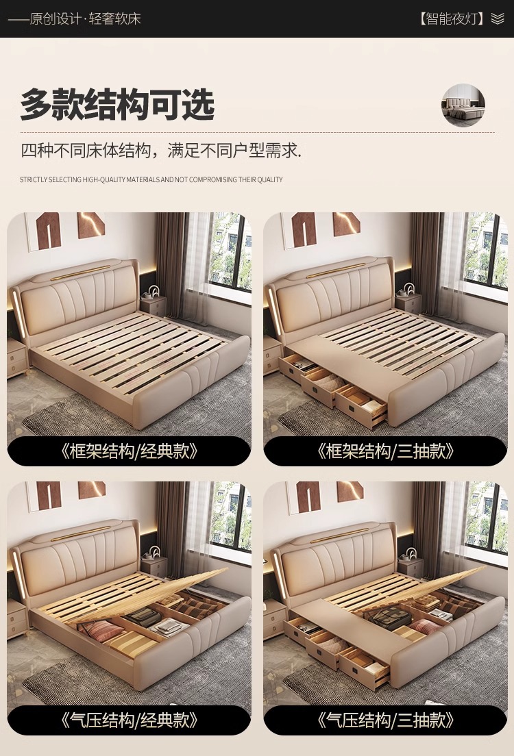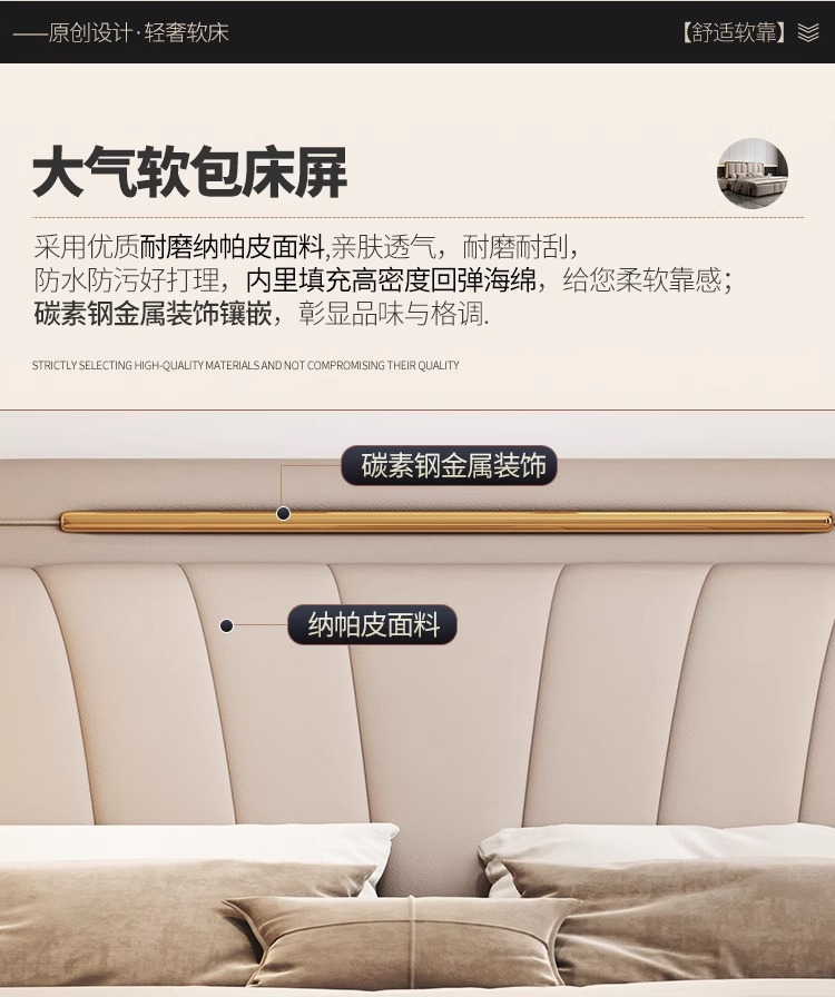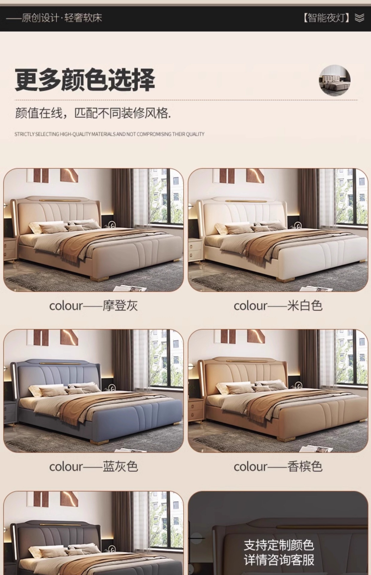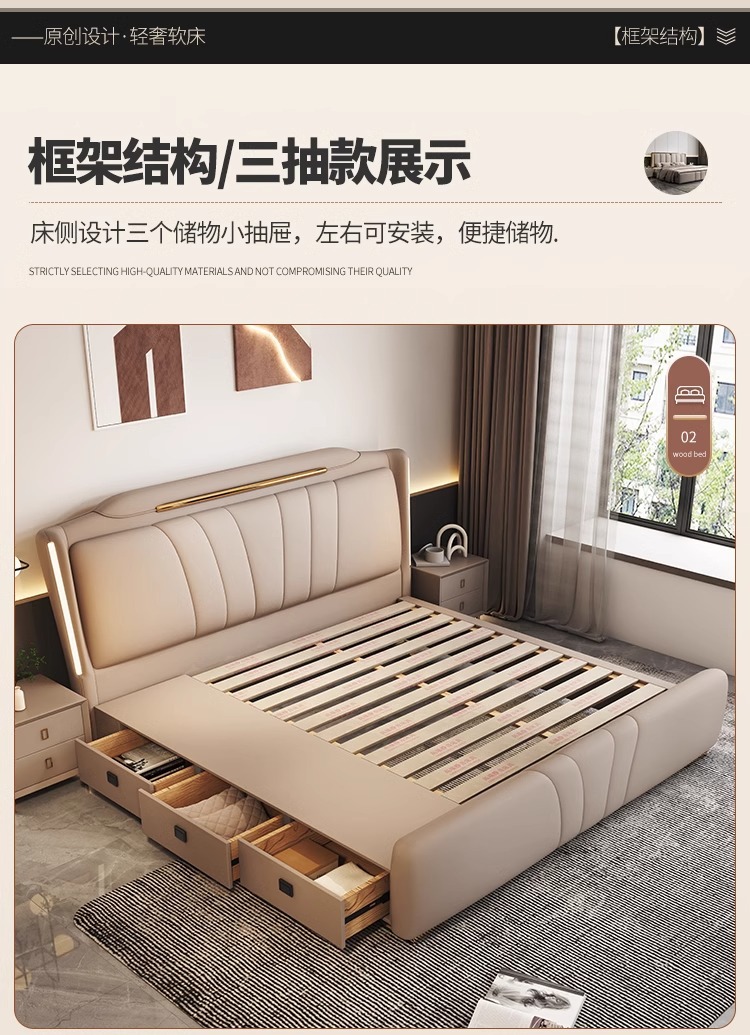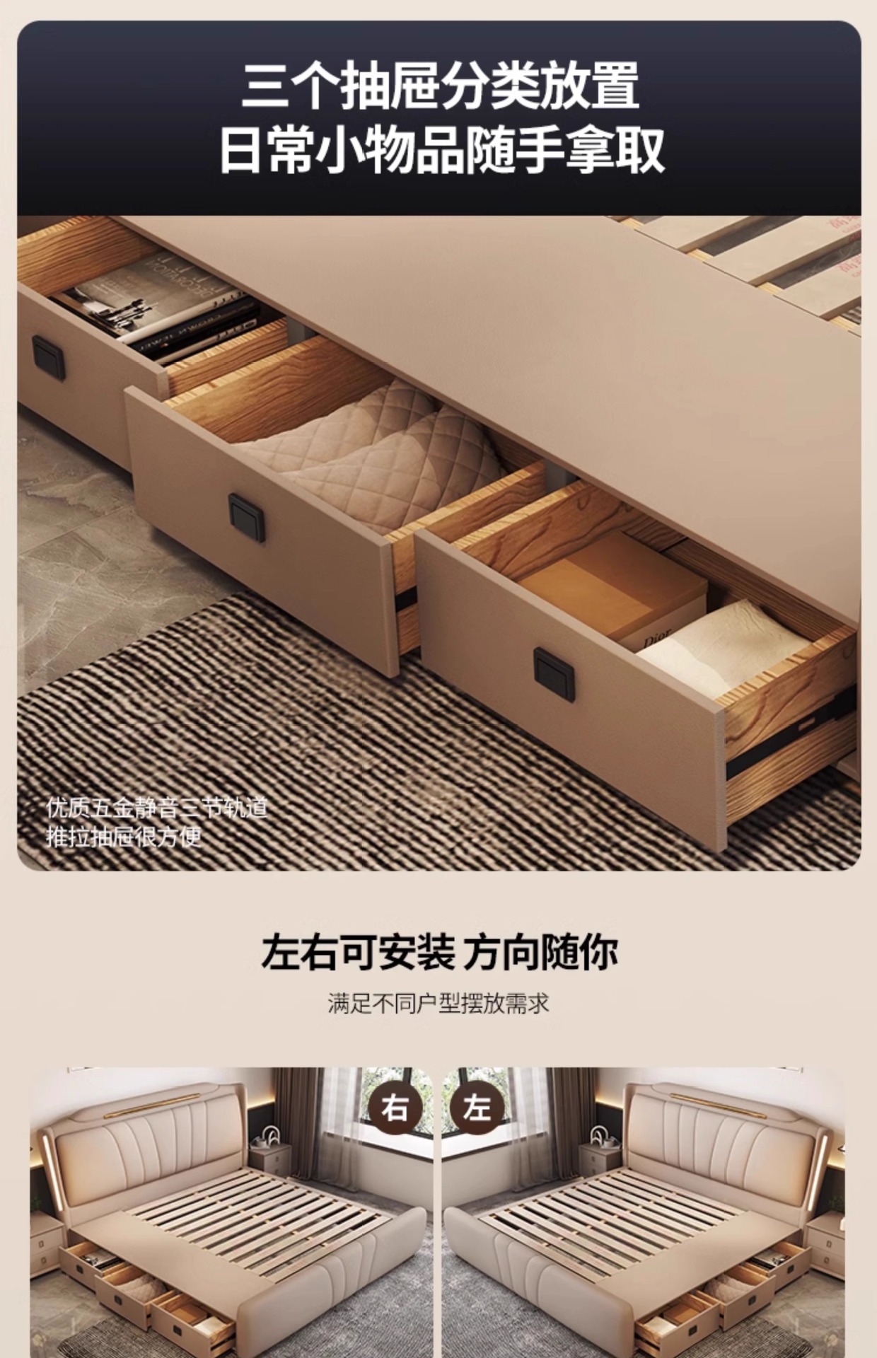 현대적인 고급 소프트 침대, 심플하고 패셔너블한 마스터 침실 더블 침대, 다기능 수납 1.8m 가죽 침대 서랍 웨딩