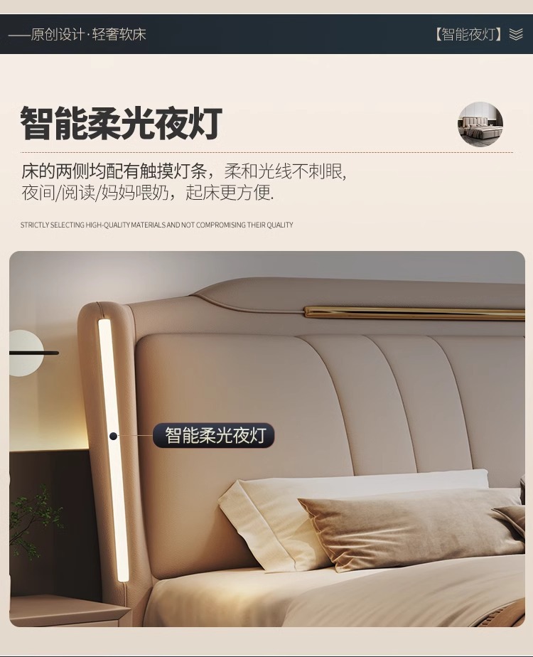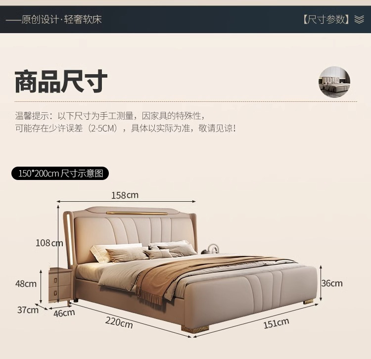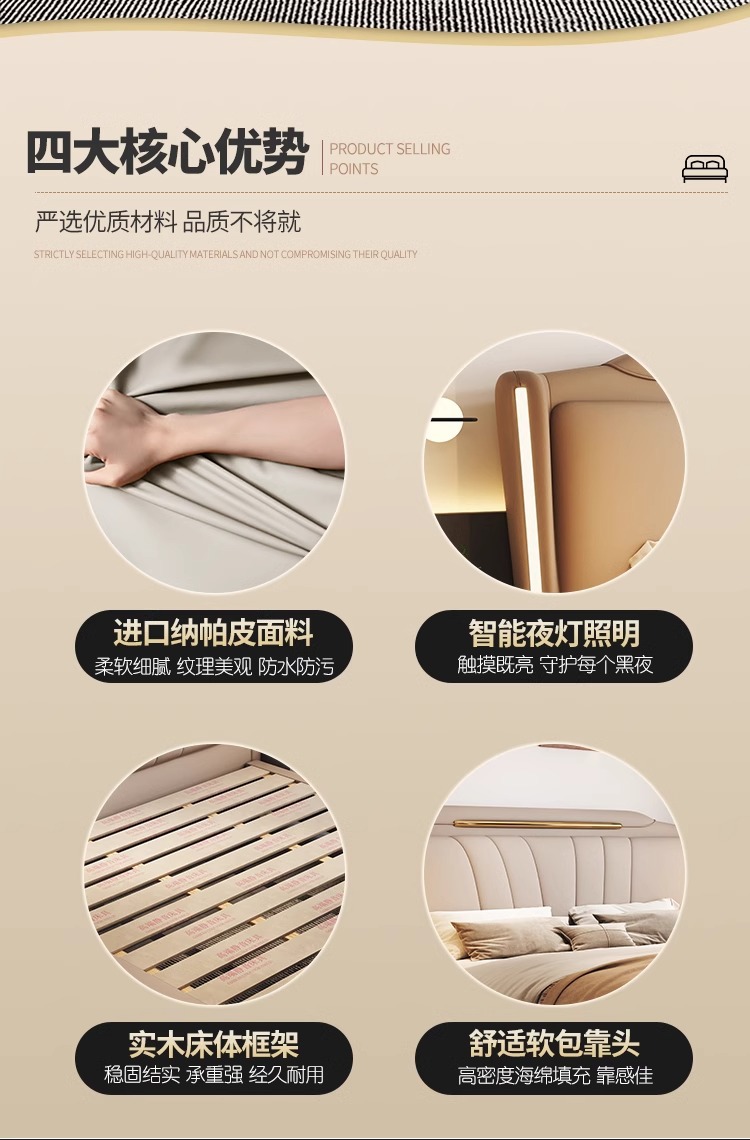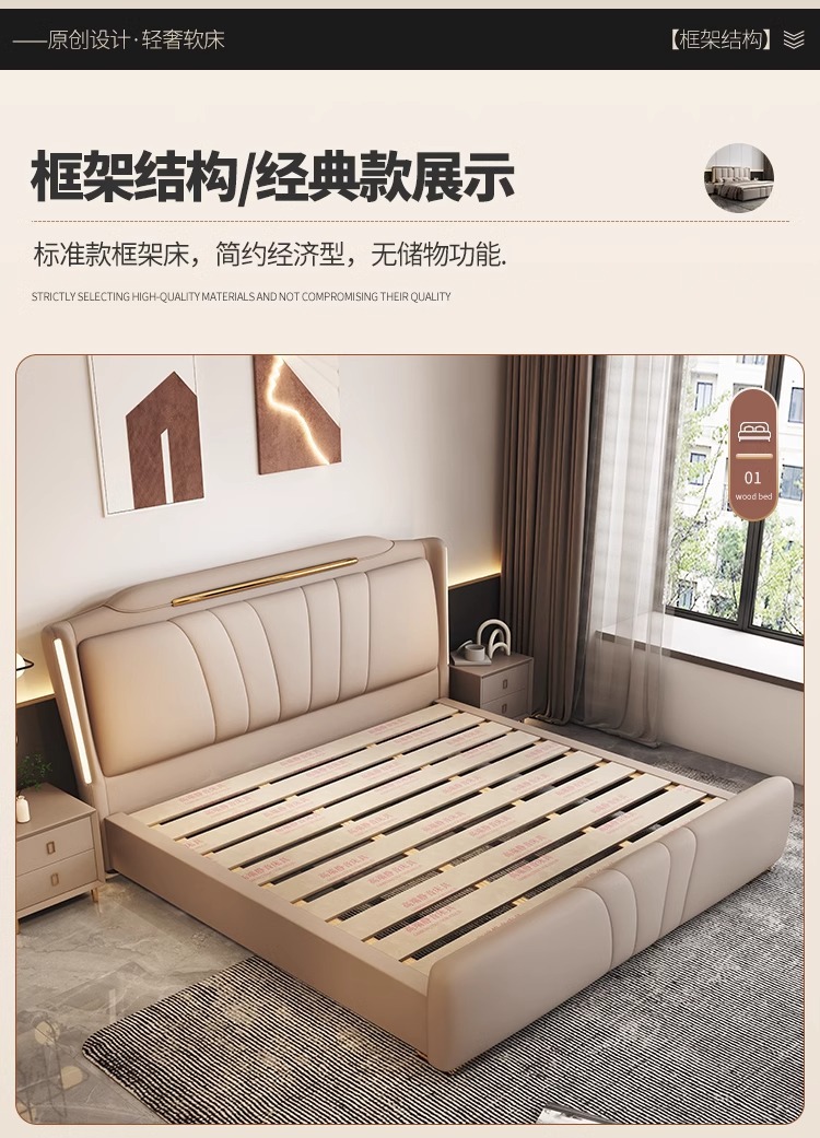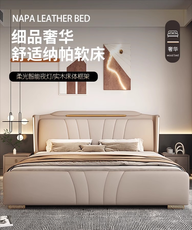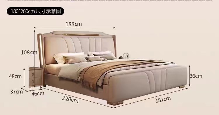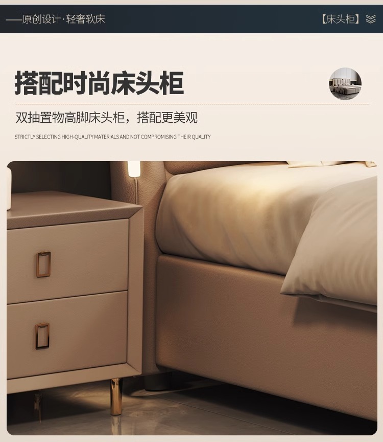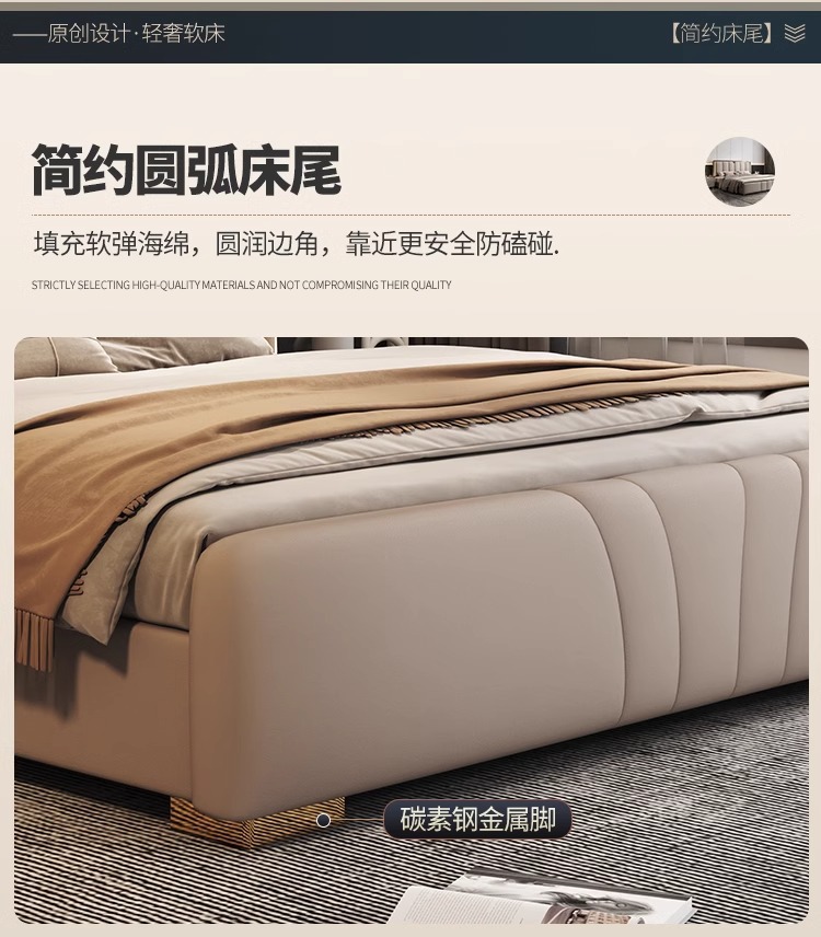 현대적인 고급 소프트 침대, 심플하고 패셔너블한 마스터 침실 더블 침대, 다기능 수납 1.8m 가죽 침대 서랍 웨딩