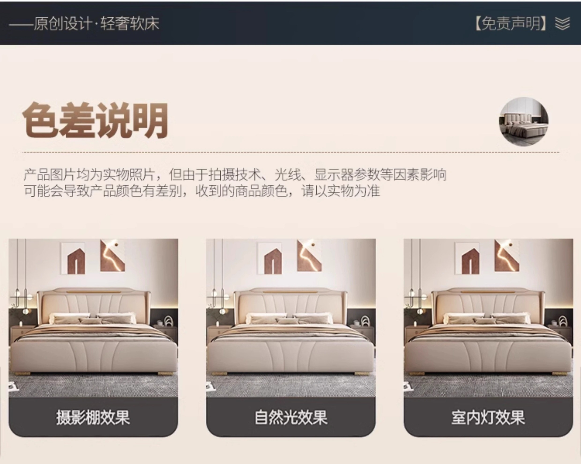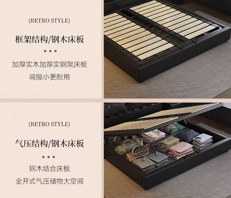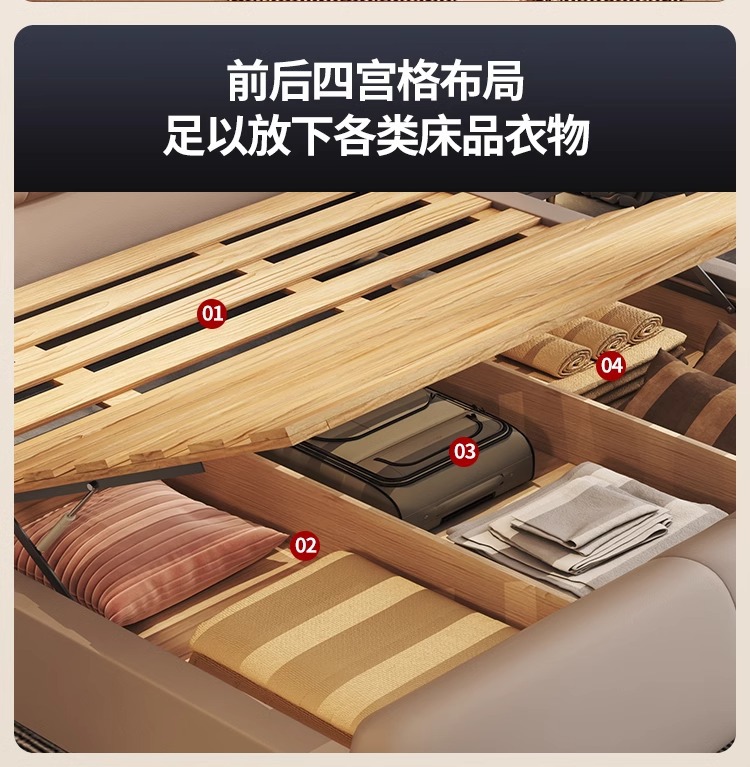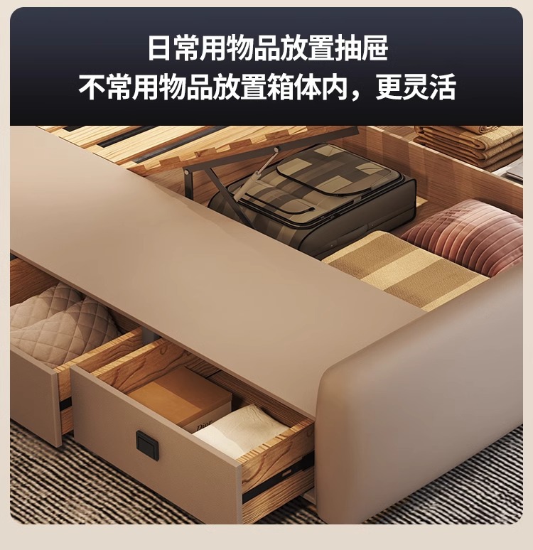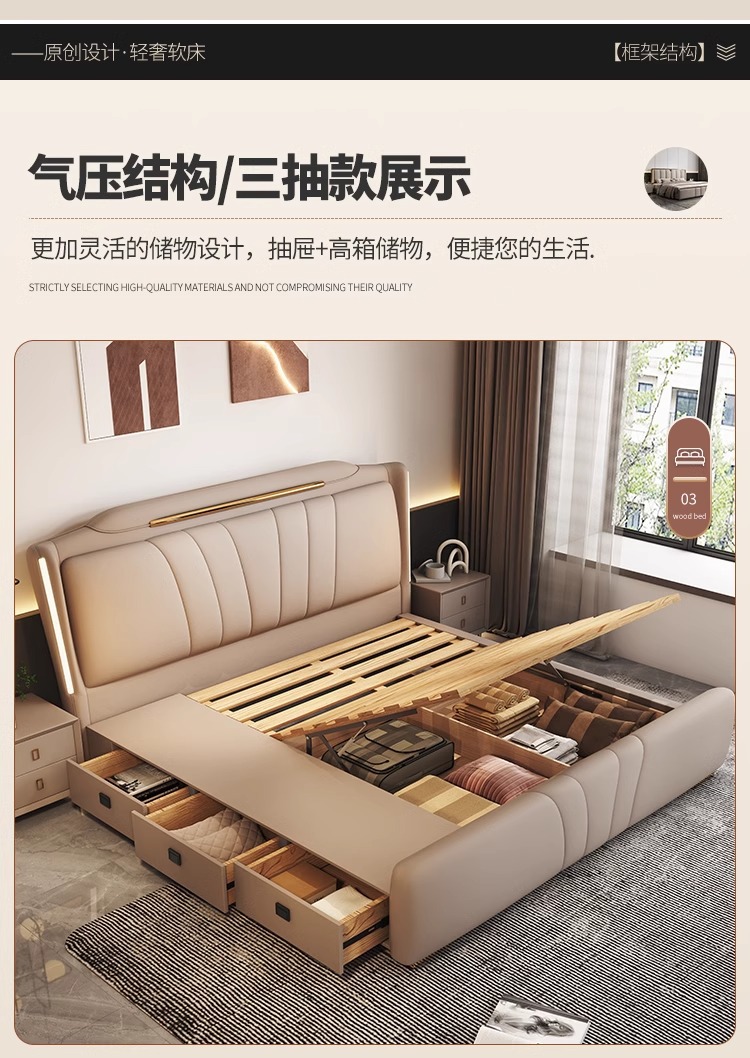 현대적인 고급 소프트 침대, 심플하고 패셔너블한 마스터 침실 더블 침대, 다기능 수납 1.8m 가죽 침대 서랍 웨딩스토어 가기